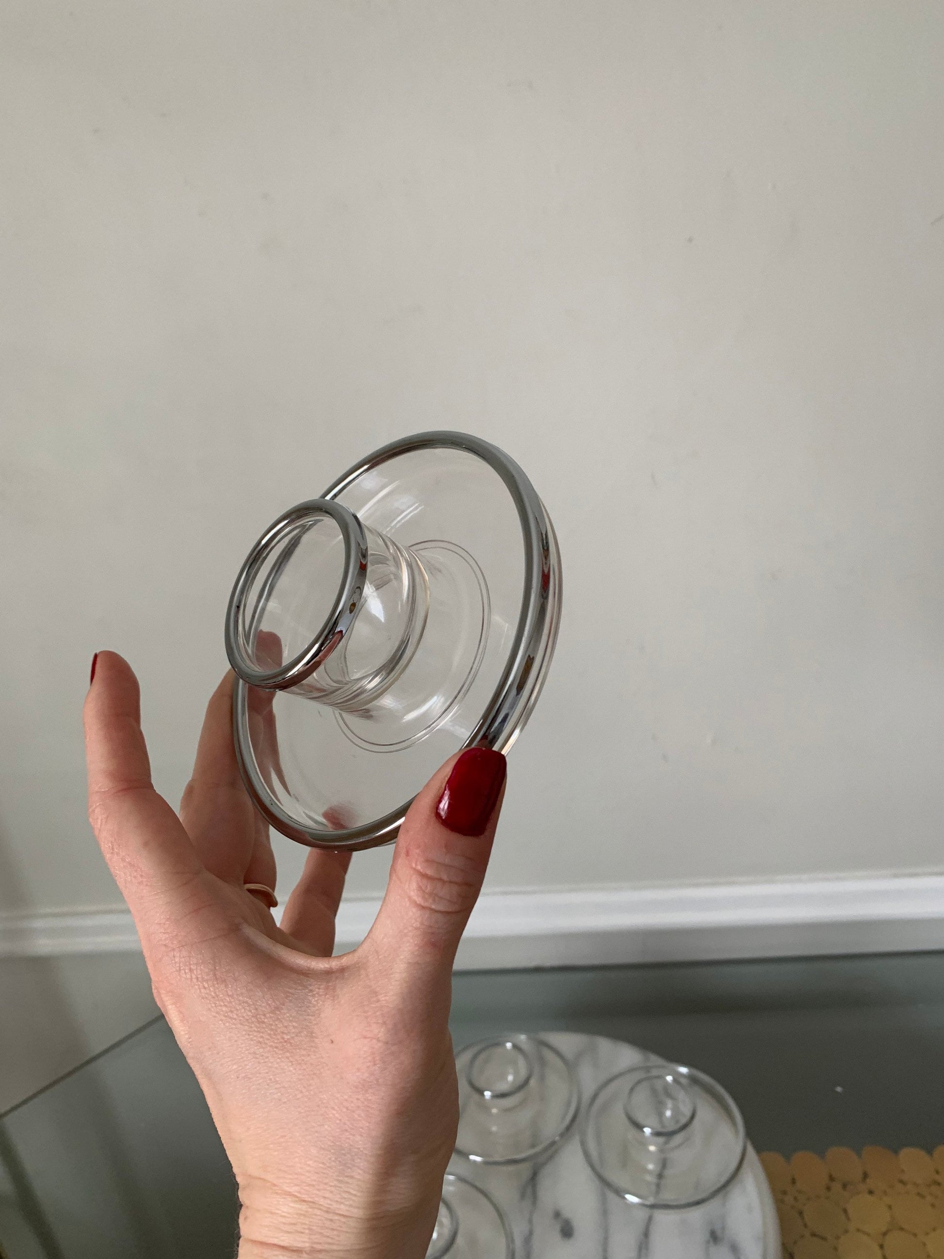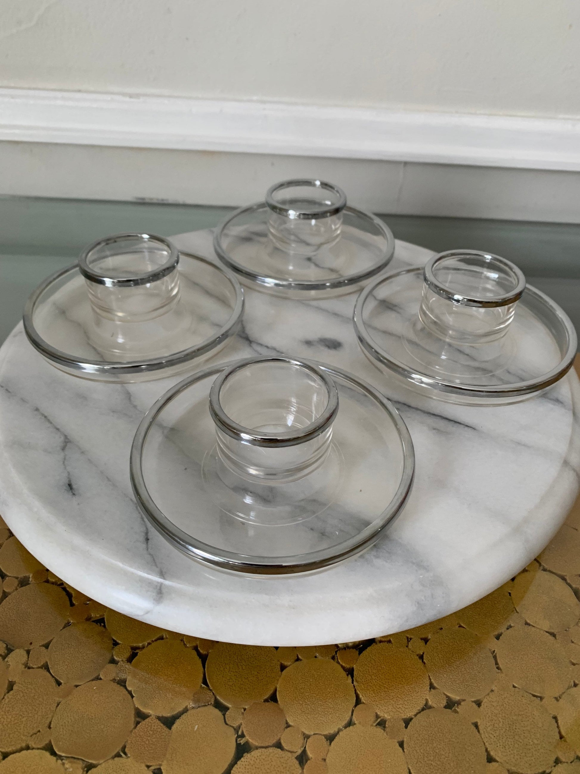 4 Vintage Acrylic Egg Cups with Silver Rims