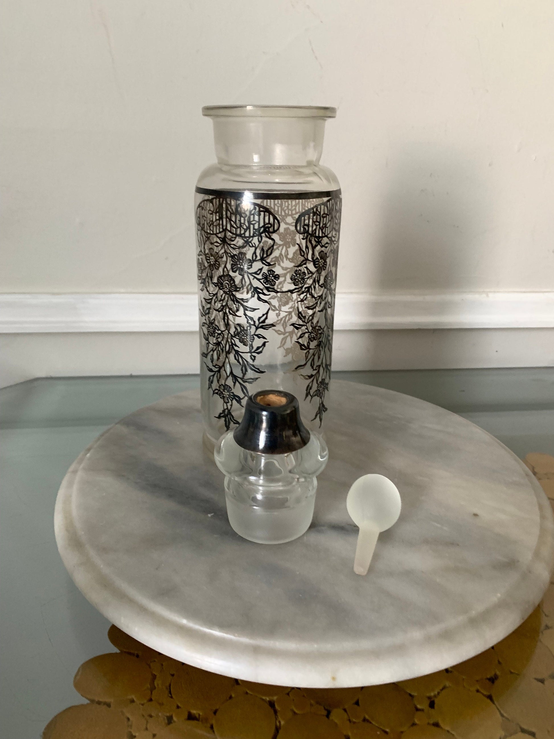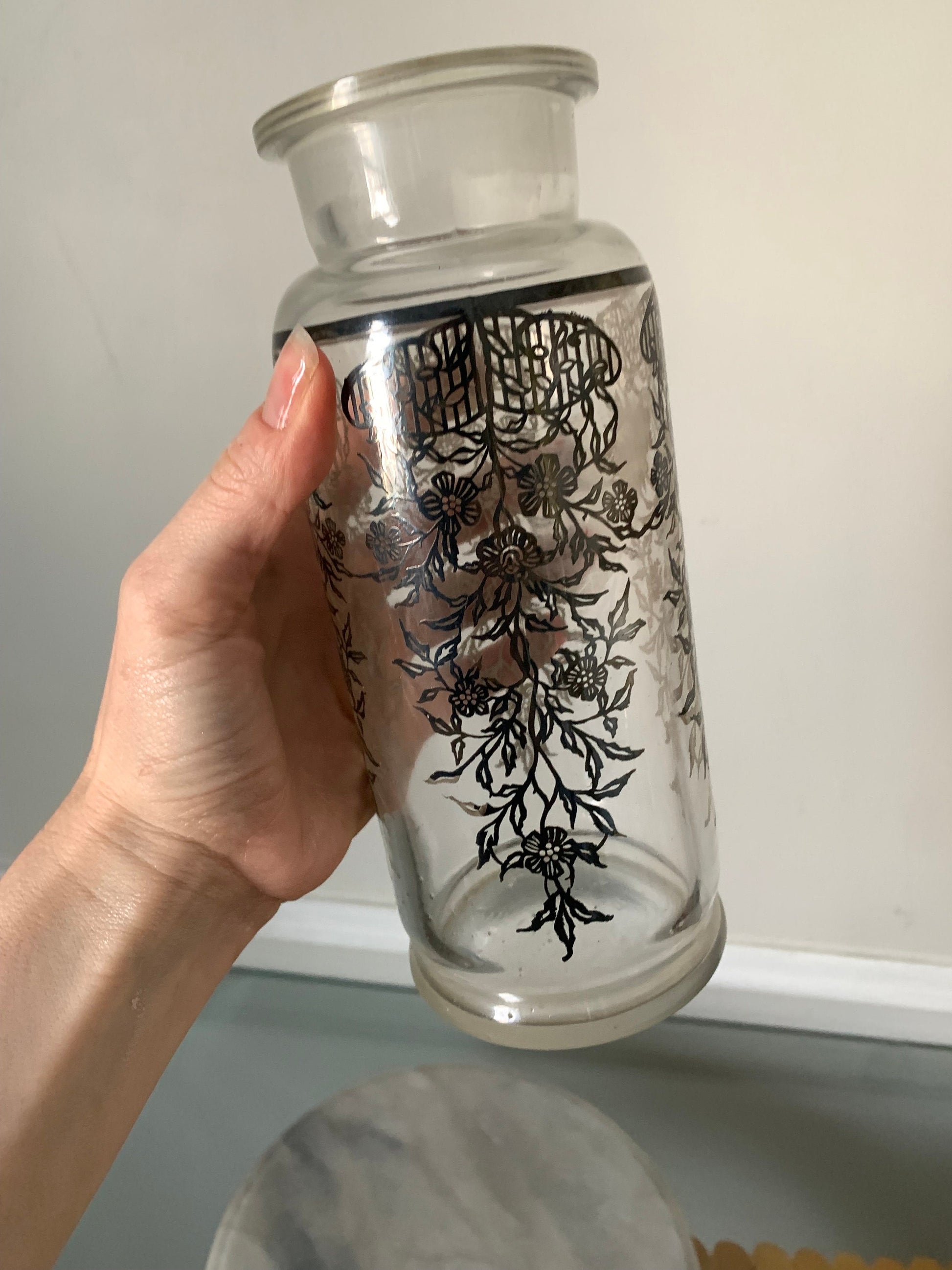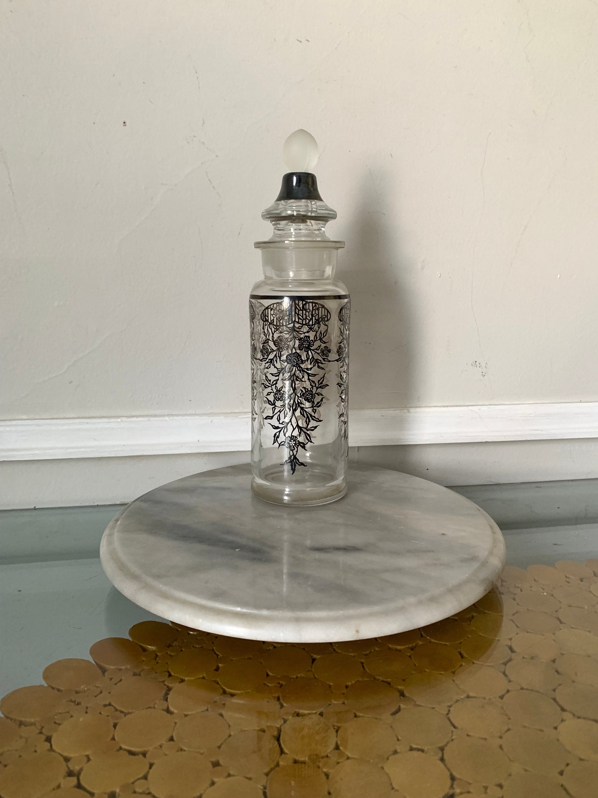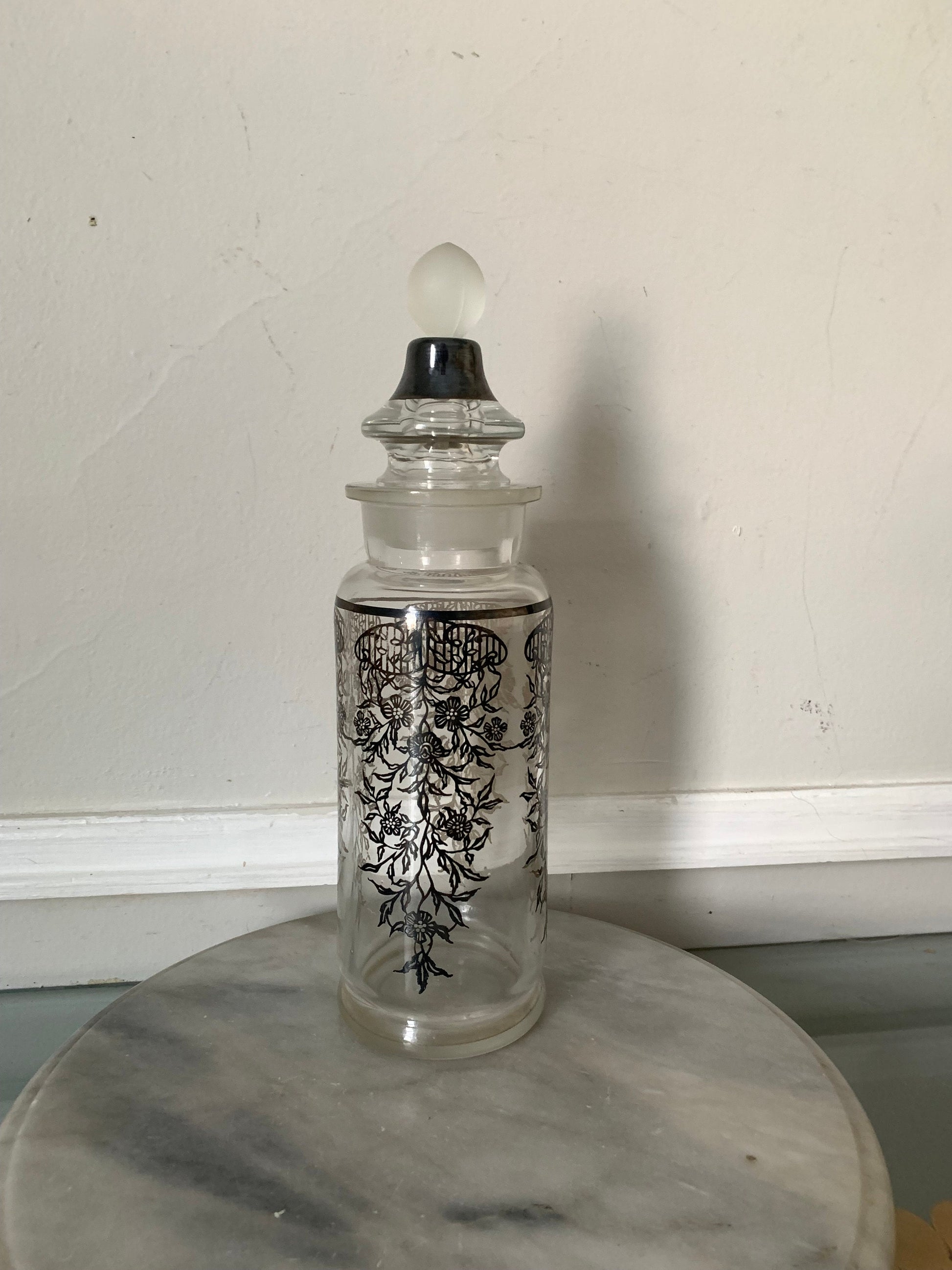 Antique 3 Piece Pressed Glass Jar with Silver Overlay