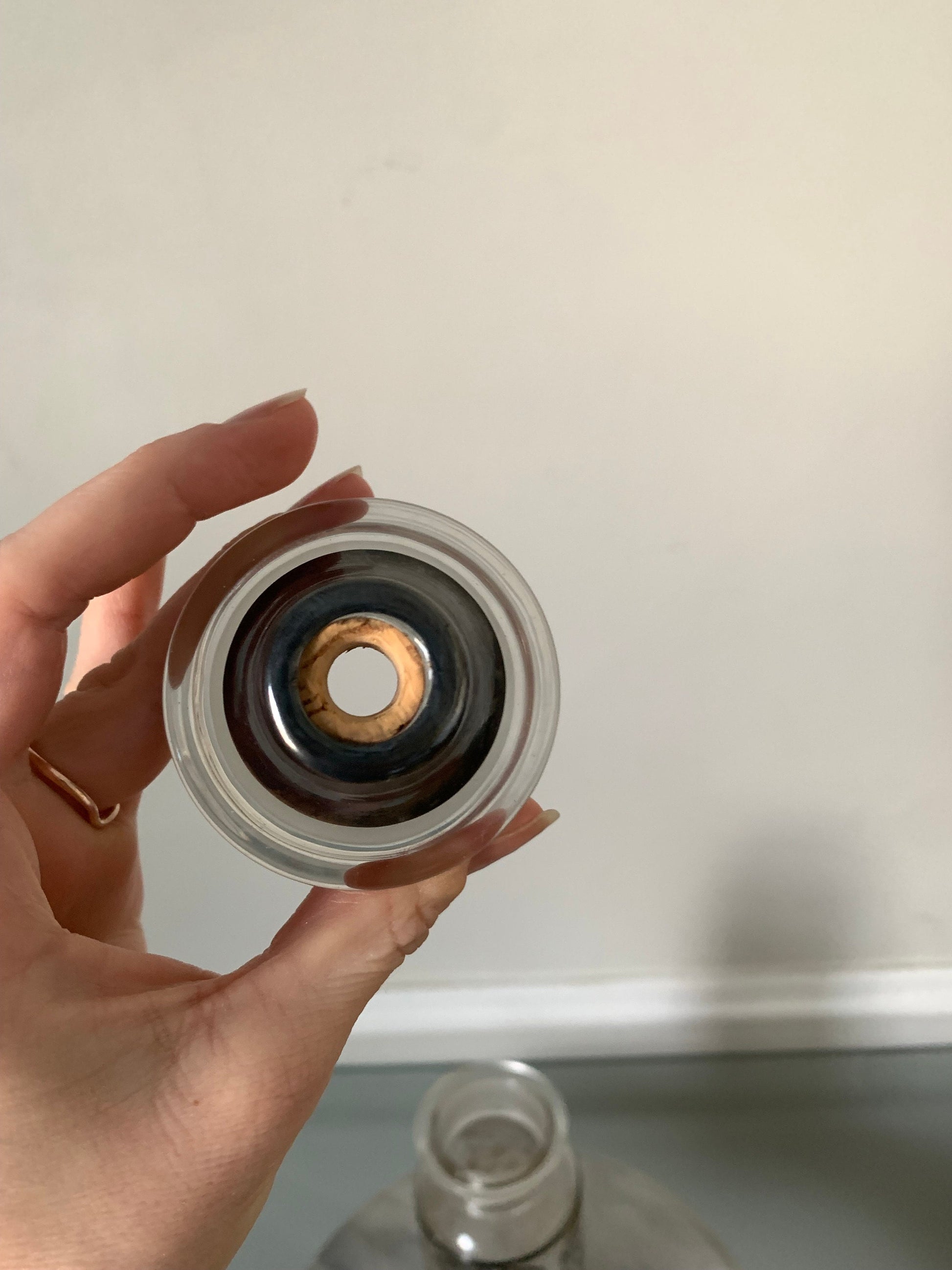 This bottle is a total mystery to me. Why that little frosted top? Why the cork? Is that actually silver overtop?
