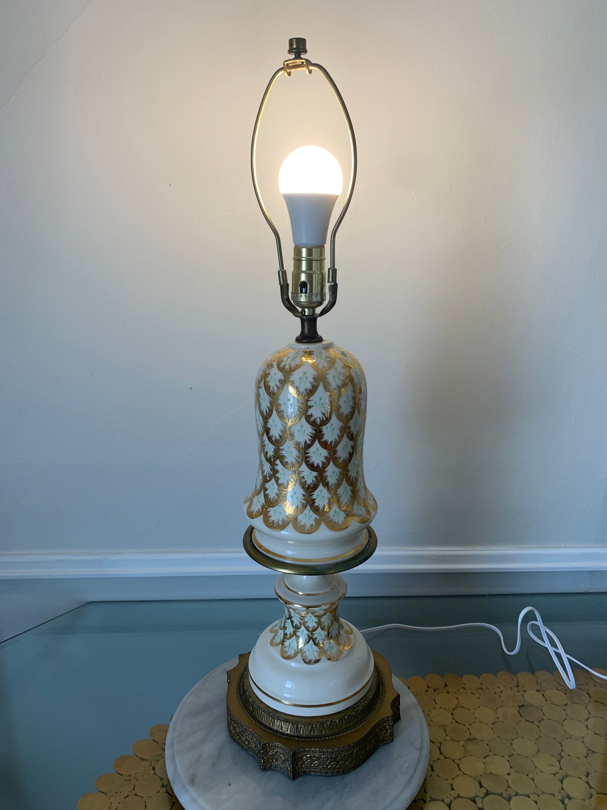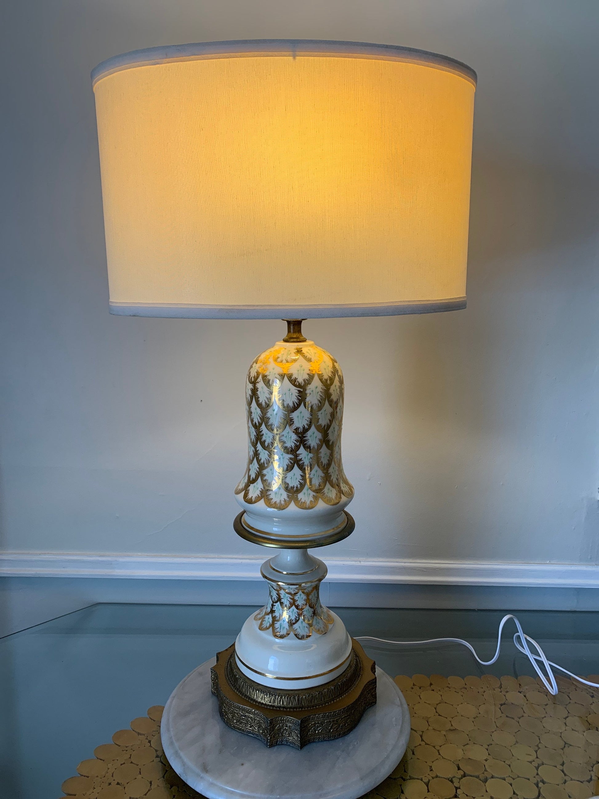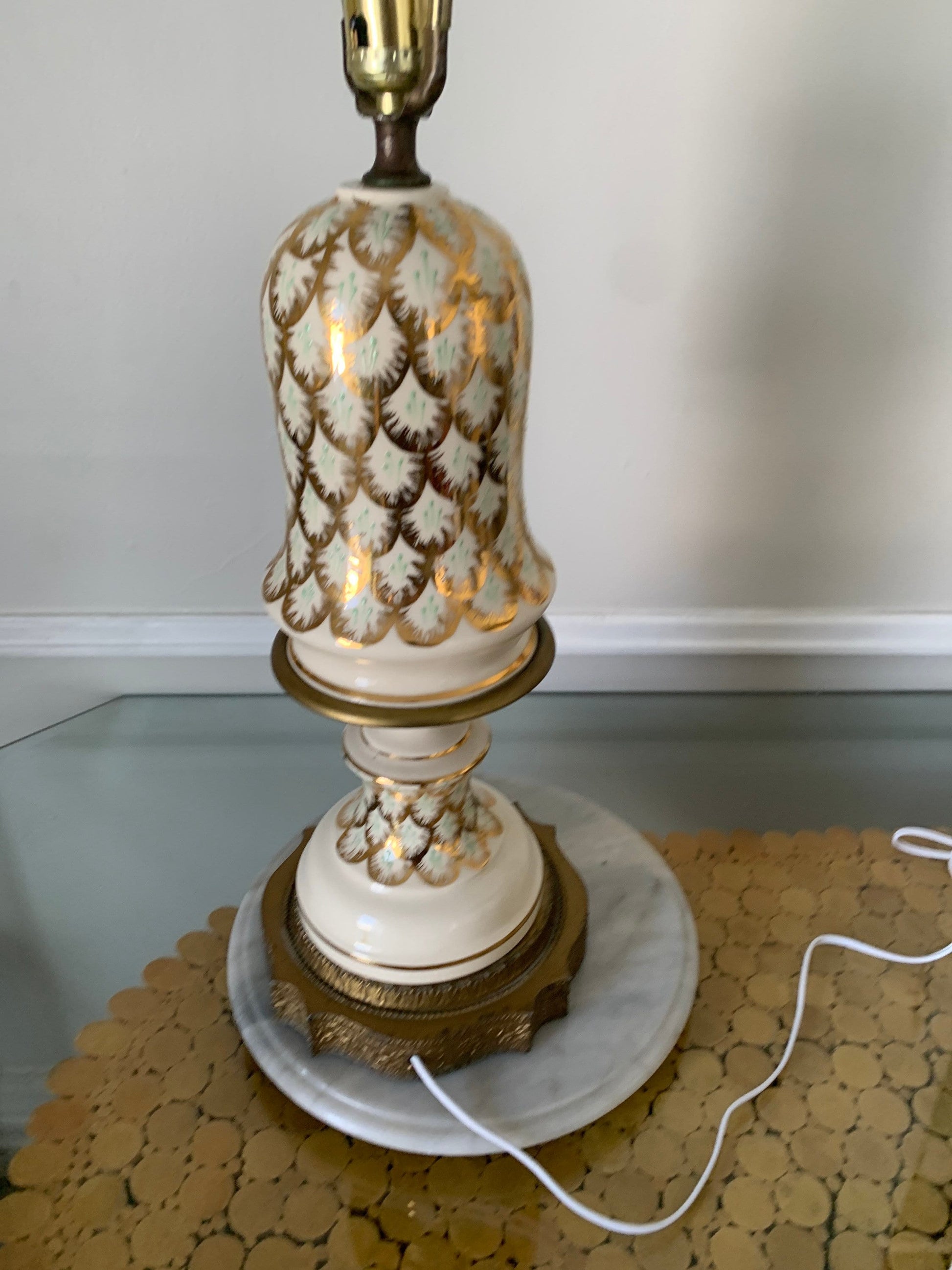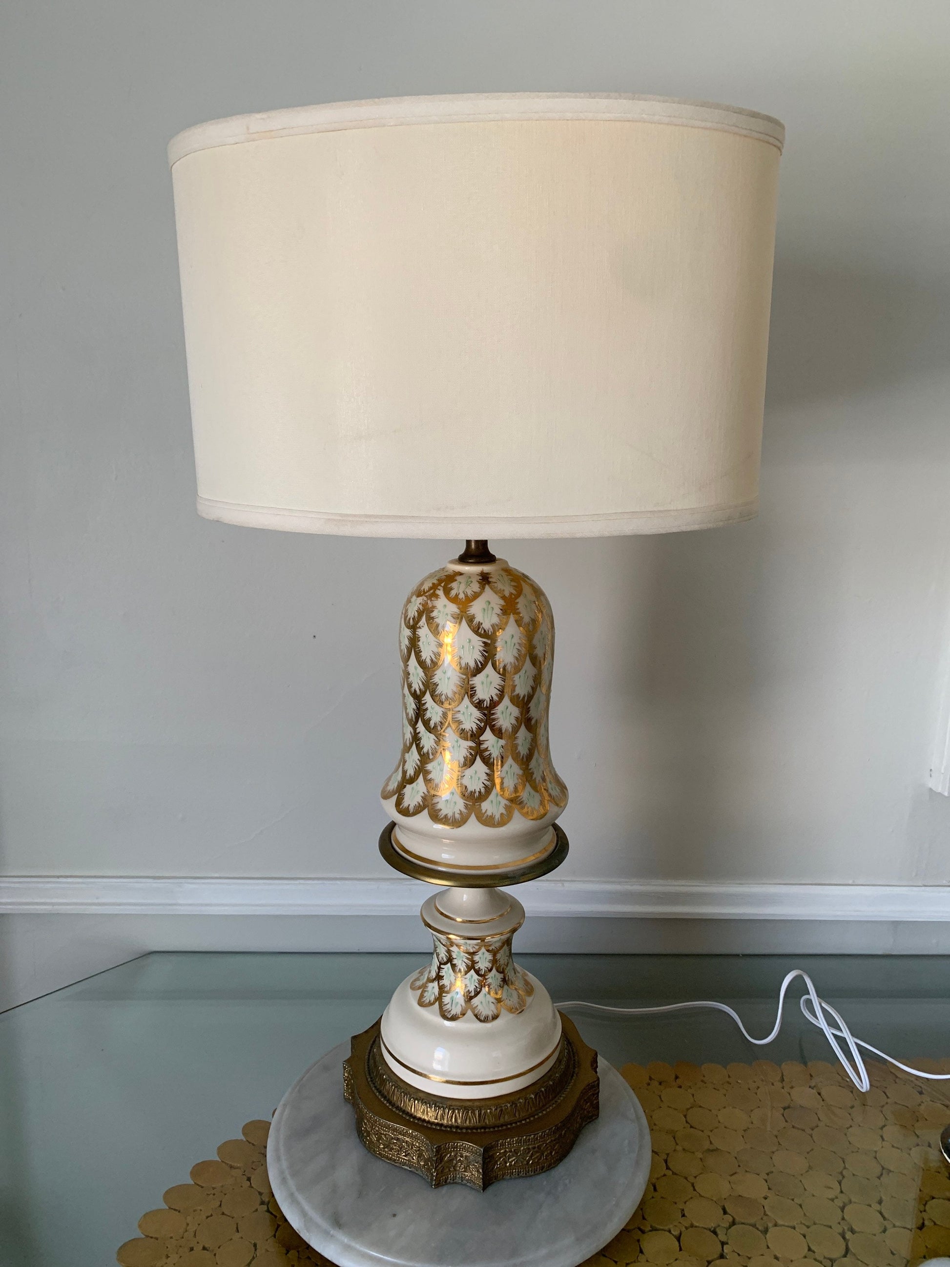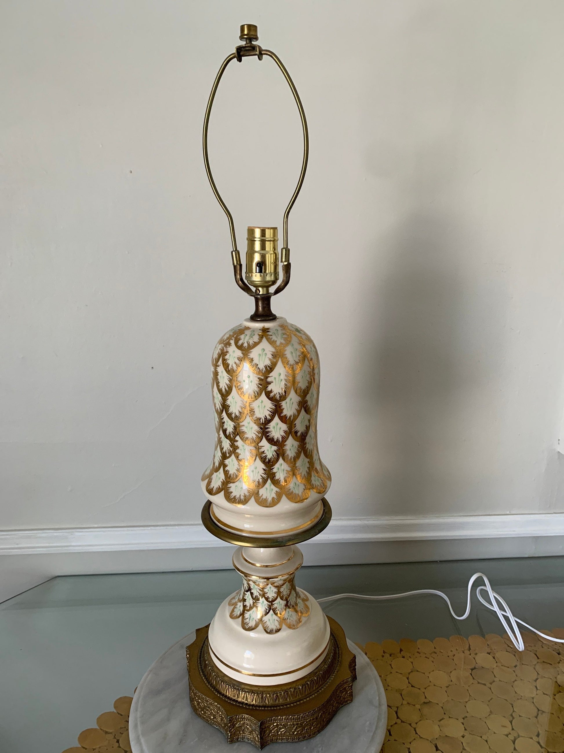 Antique Cream and Gold Tall Ceramic Lamp with Brass Base