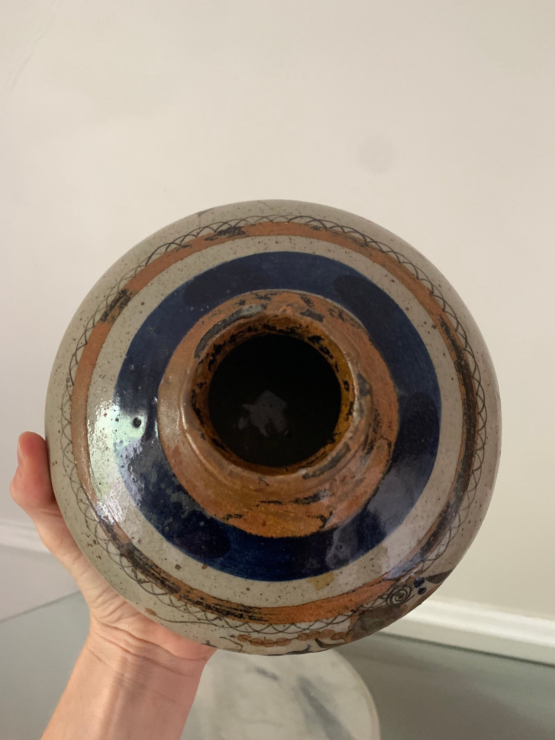 Beautiful Medium Vintage Hand Painted Round Vase