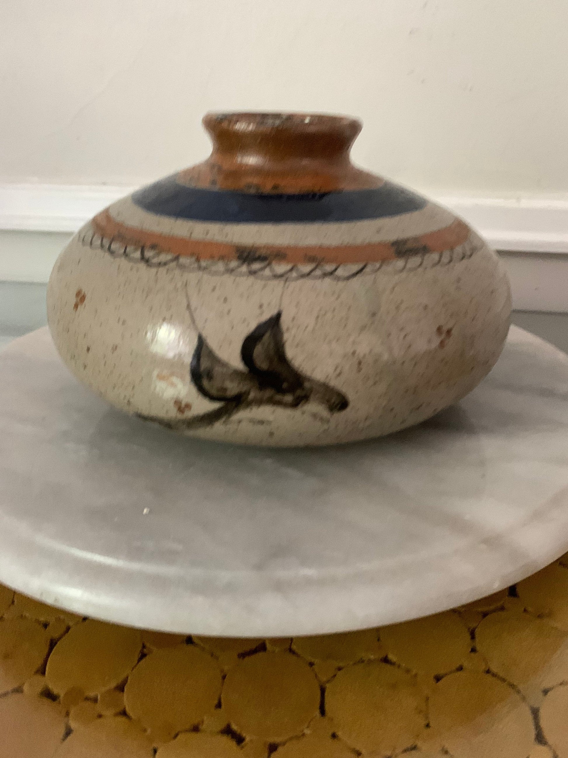 This doesn't say "Tonala Mexico" on the bottom, but it sure likes like Tonala to me! I think those are little birds on the bottom!