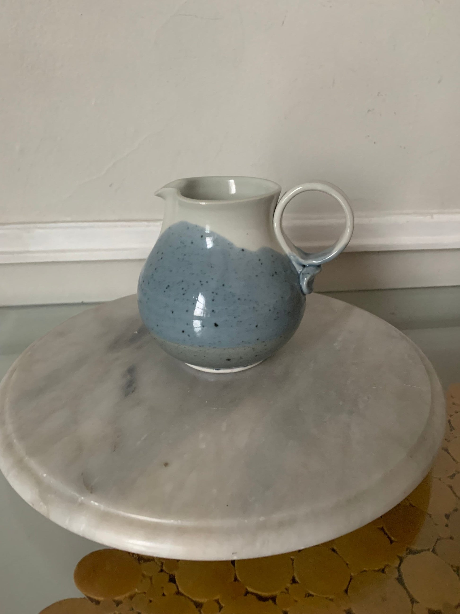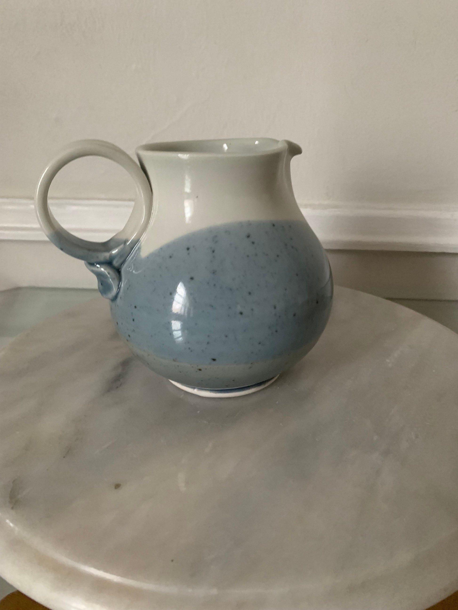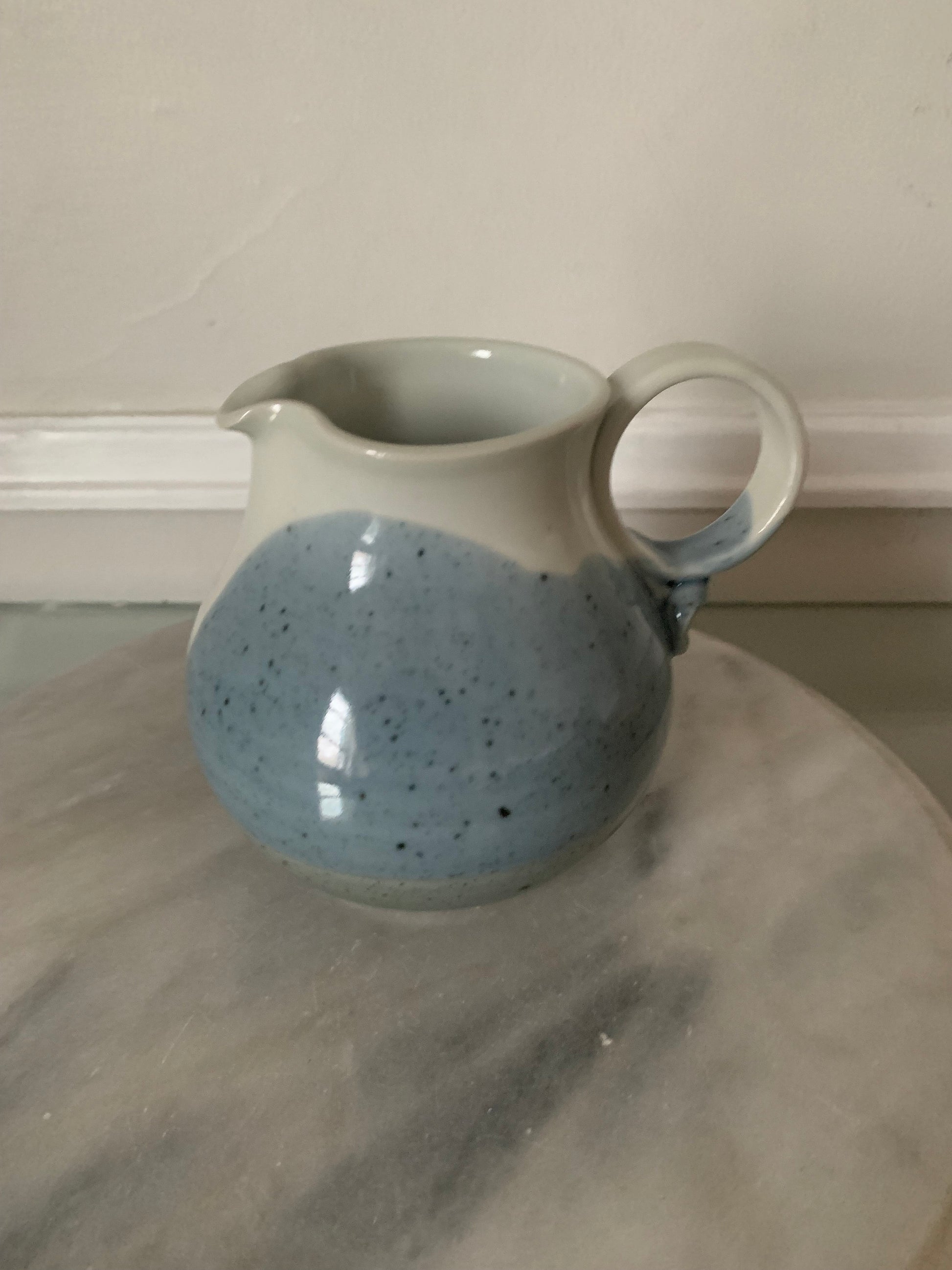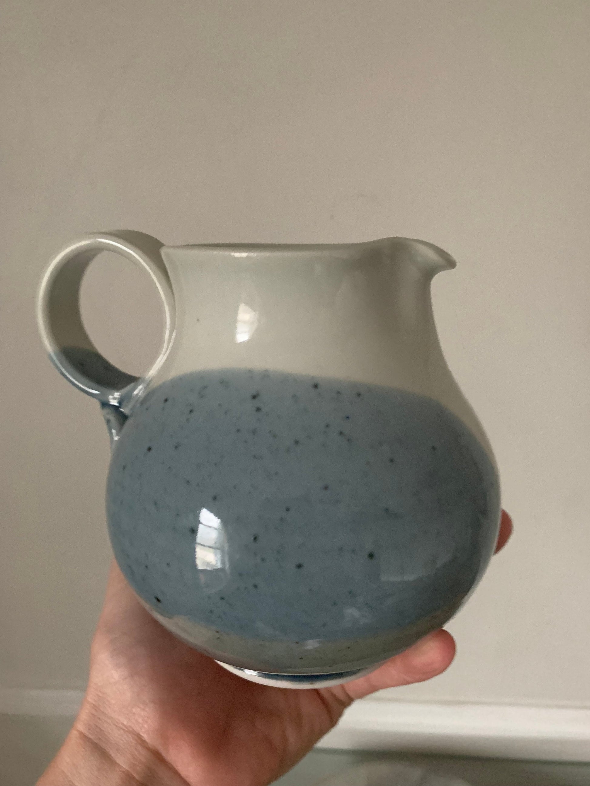 Beautiful colours and delightfully chubby, this little jug is sure to elevate your breakfast table. I love that round handle!!!