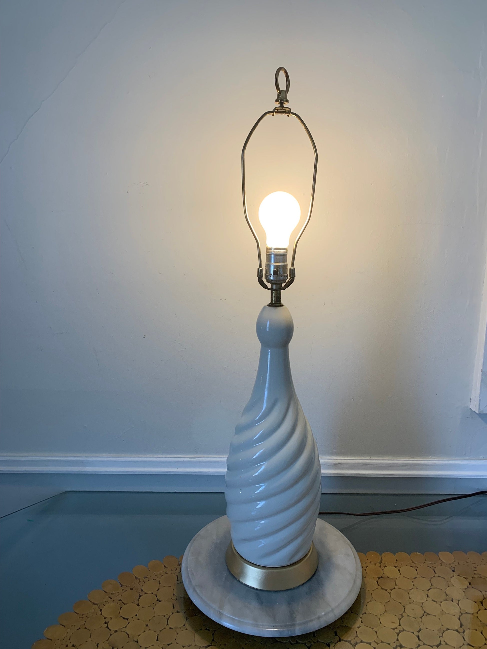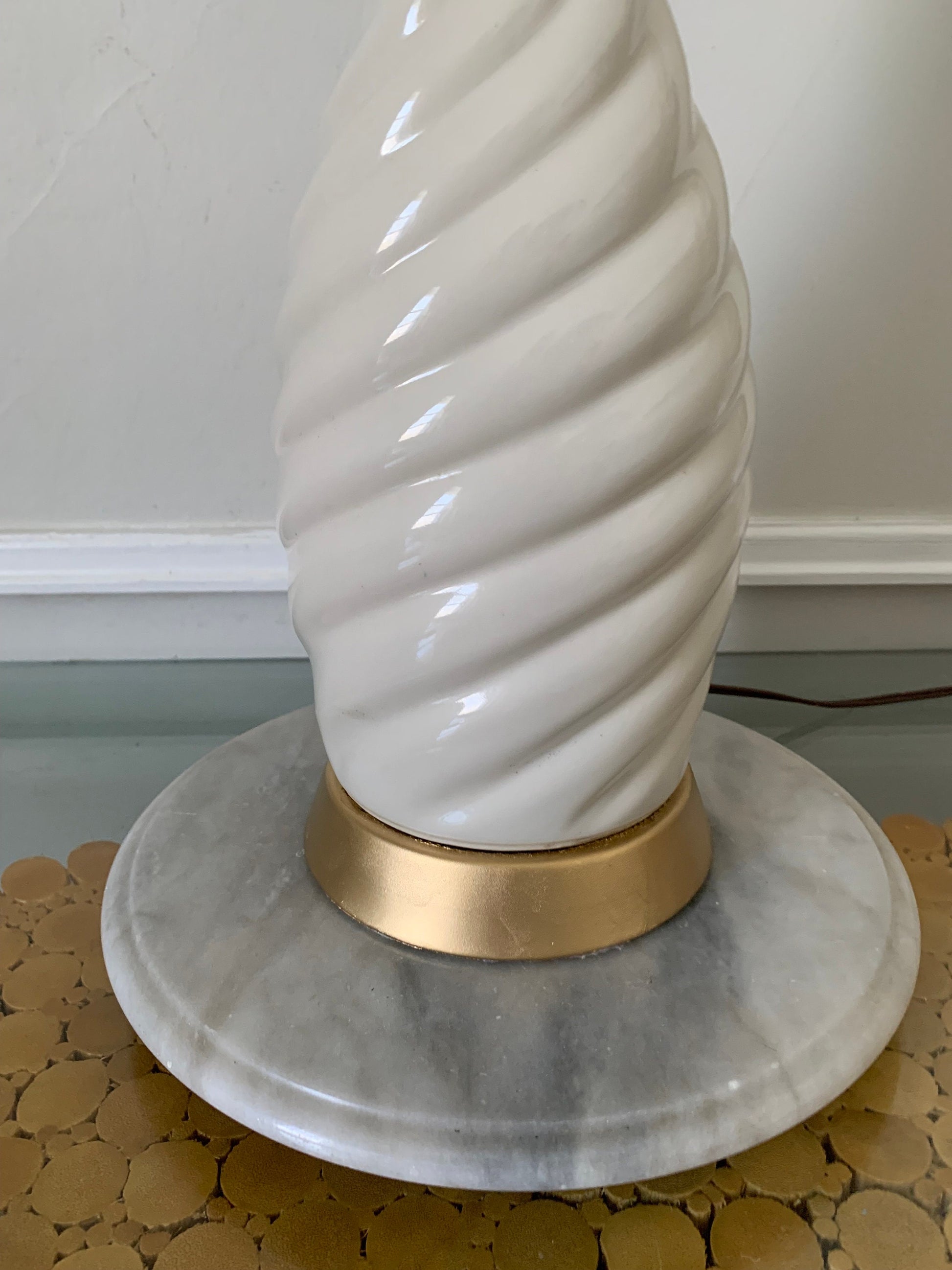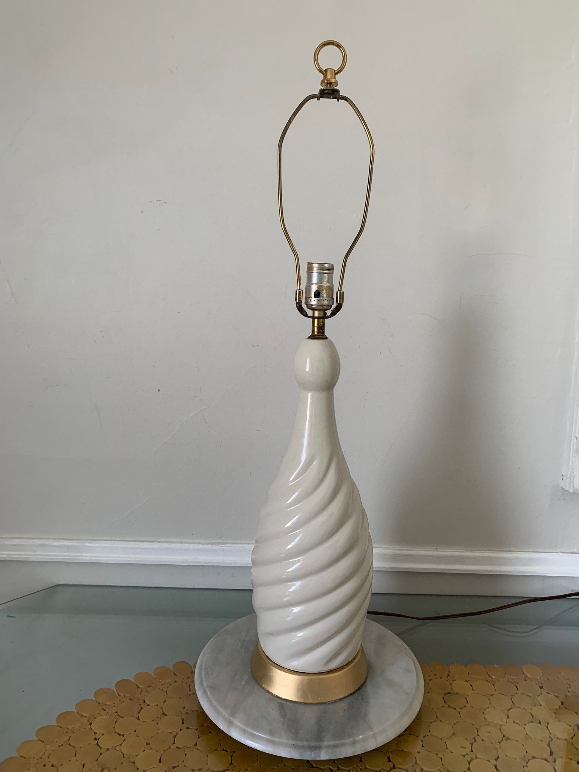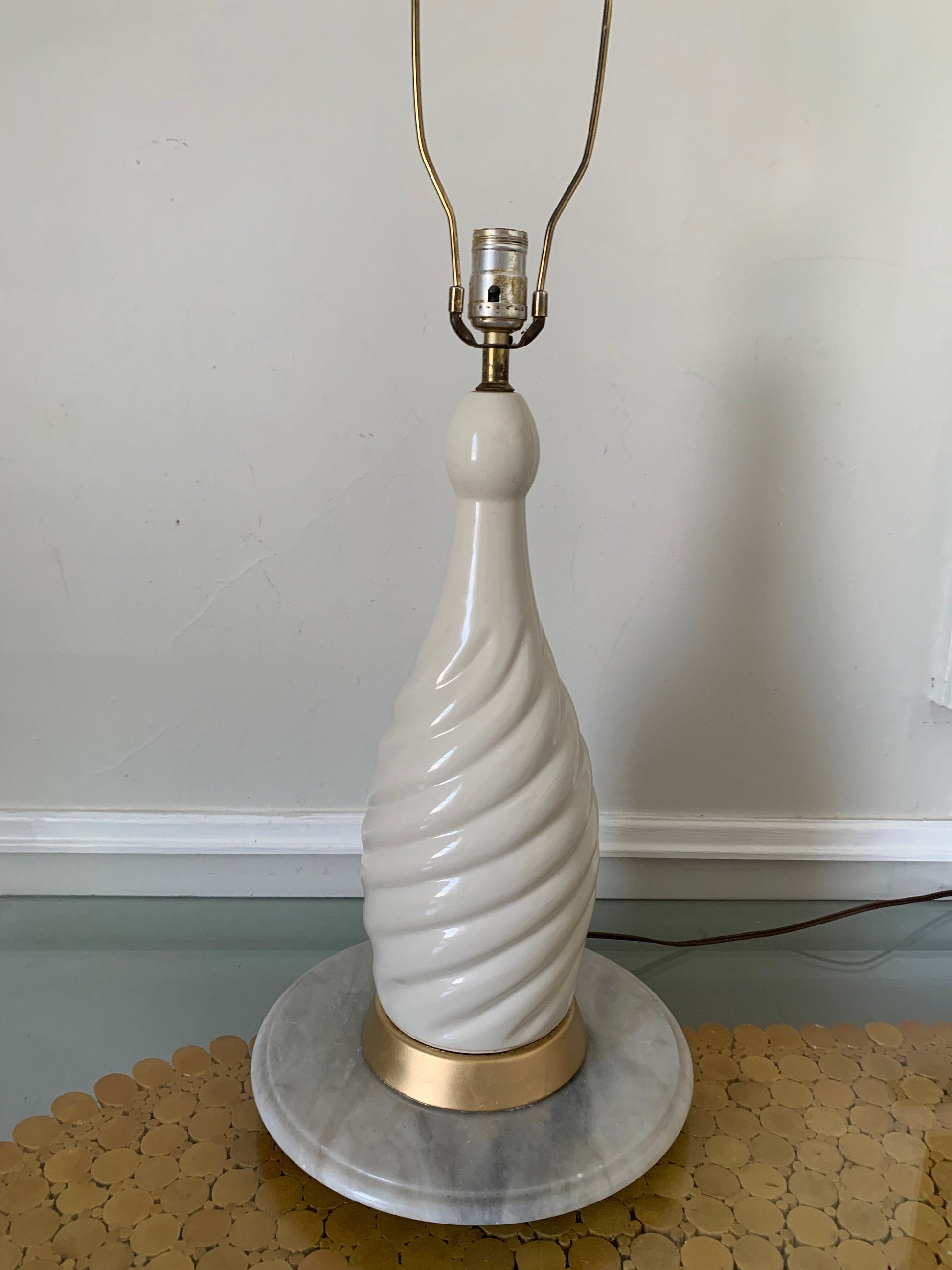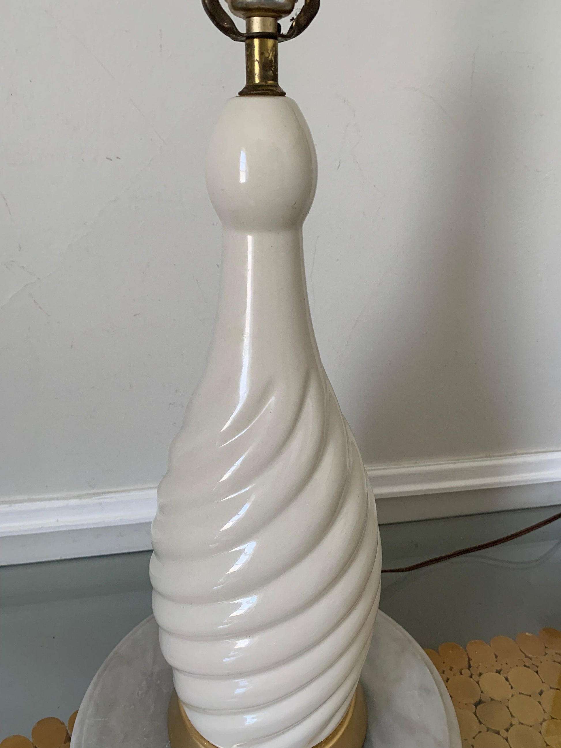Large MCM Cream Ceramic Twist Table Lamp Shade Not Included