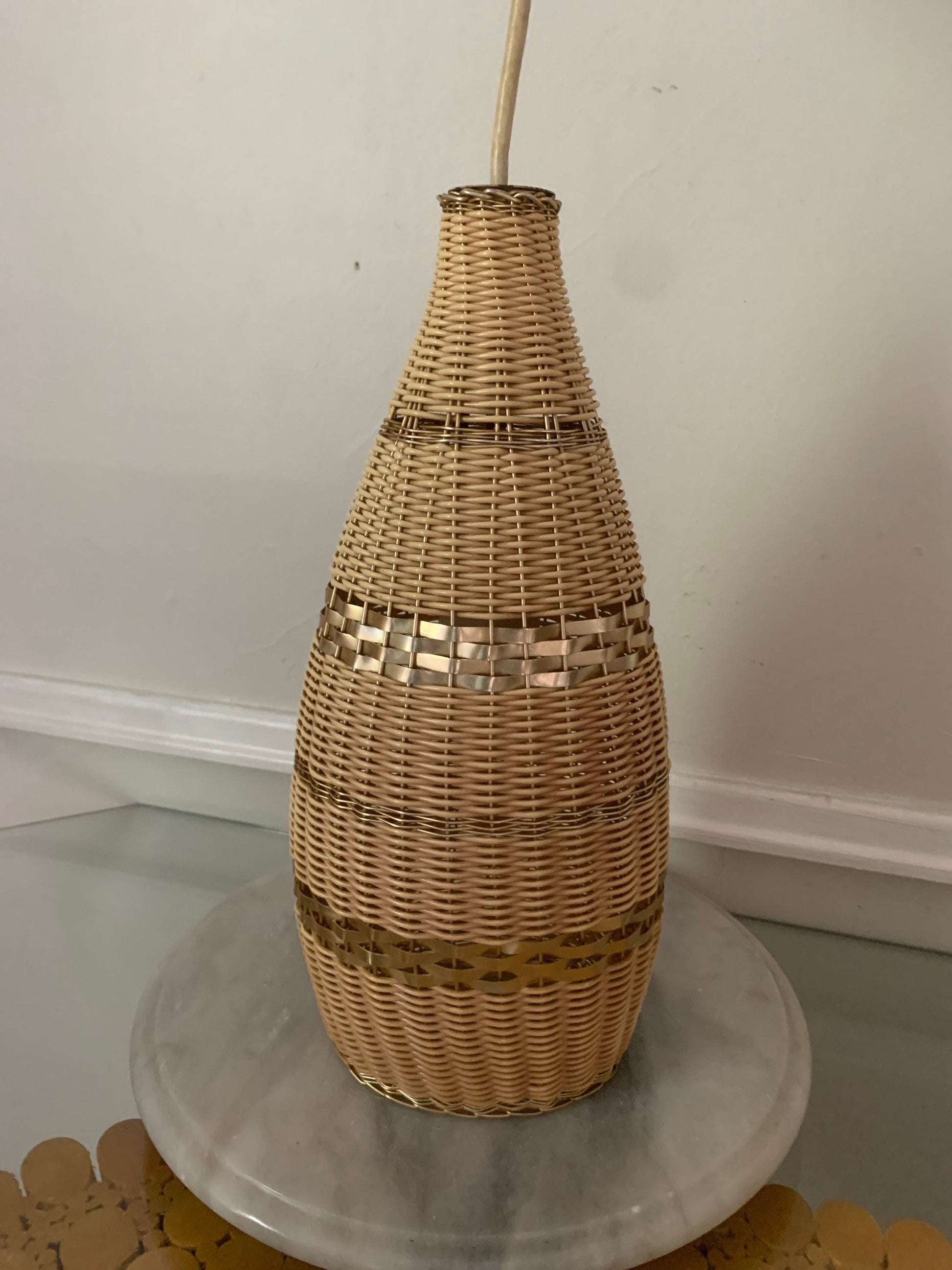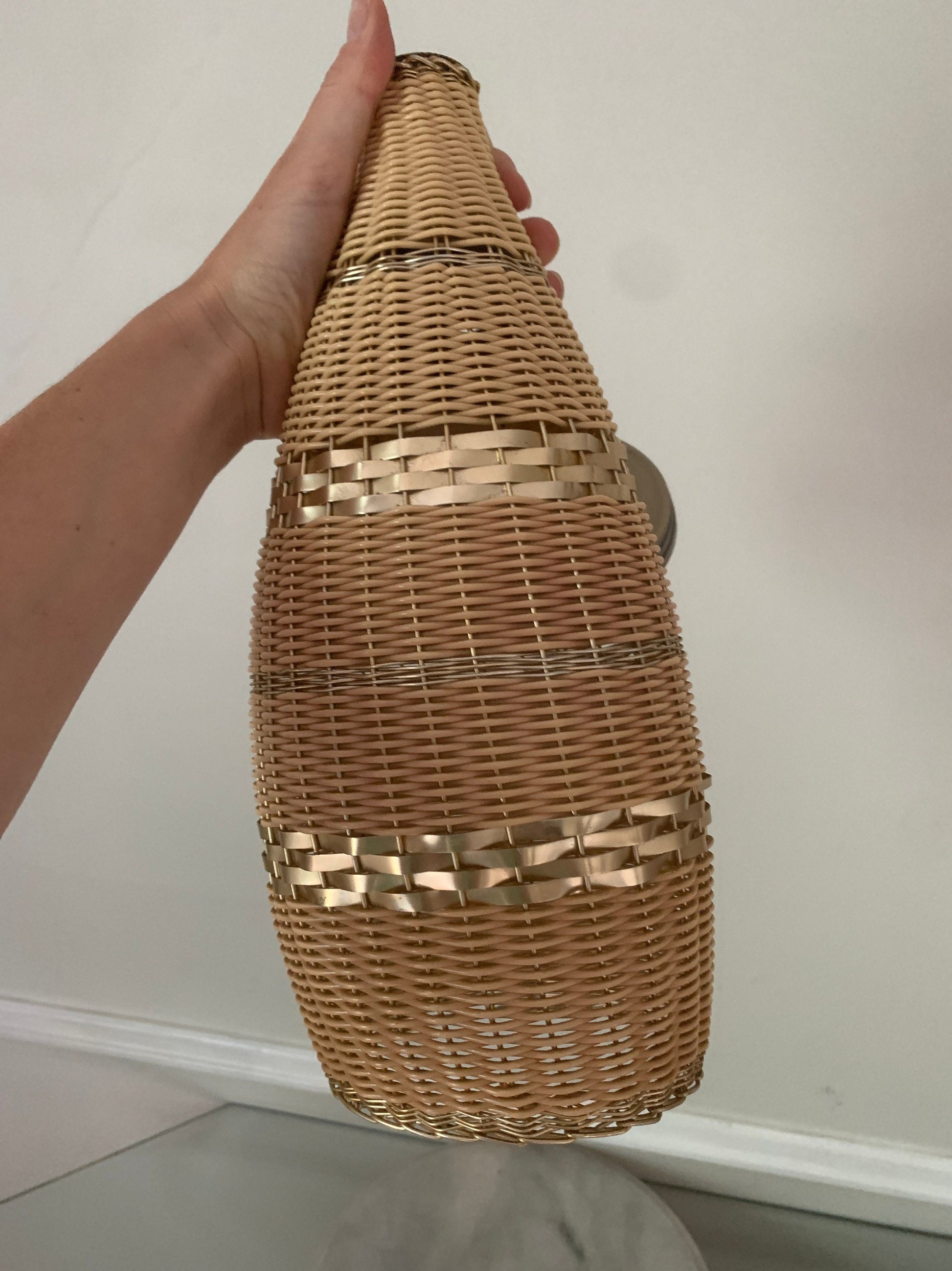 I thought this was tan. Then I gave it a good clean and realized, it's cream. Cream and soft gold - a beautiful combination. I believe that weave is plastic.