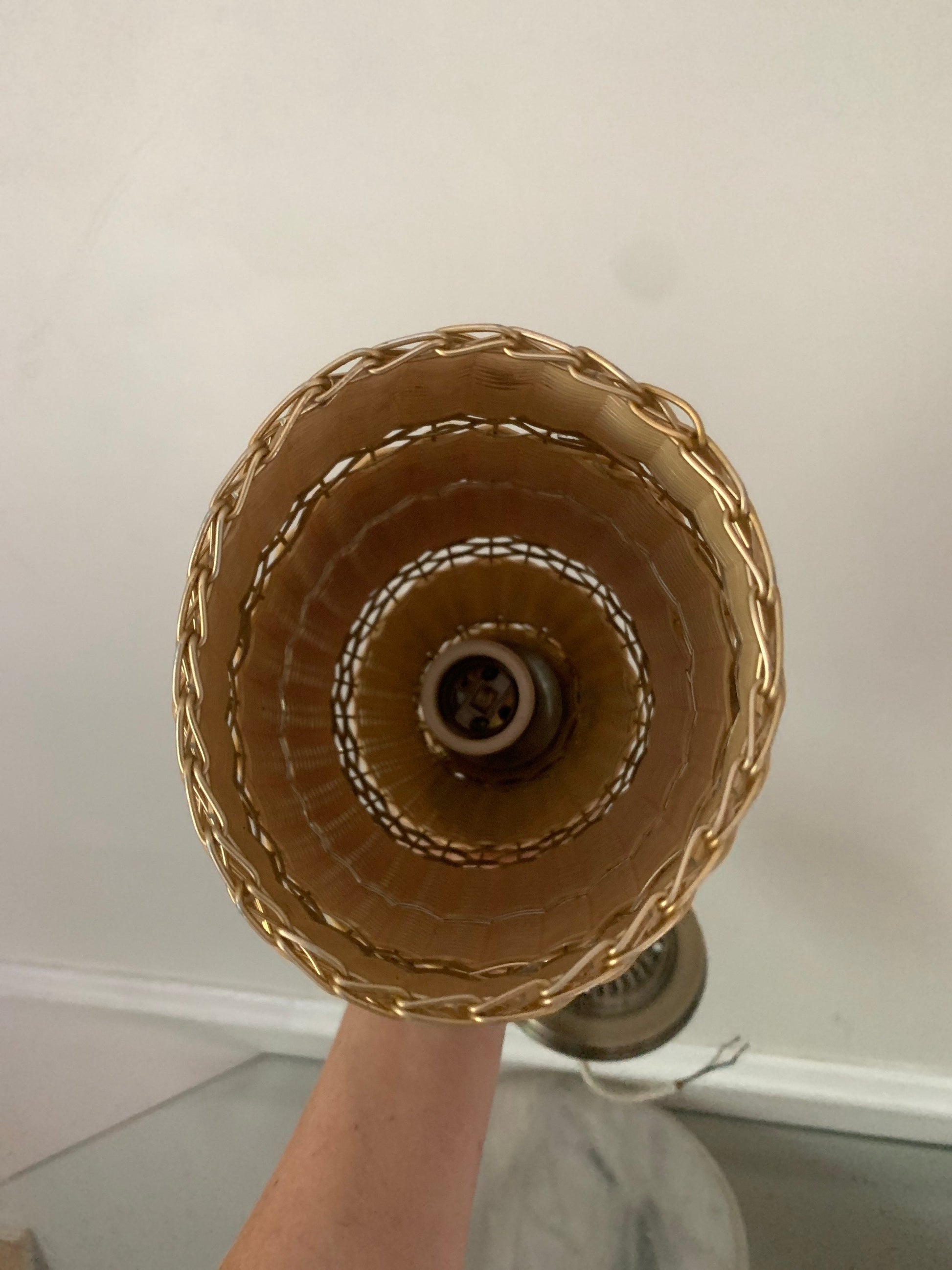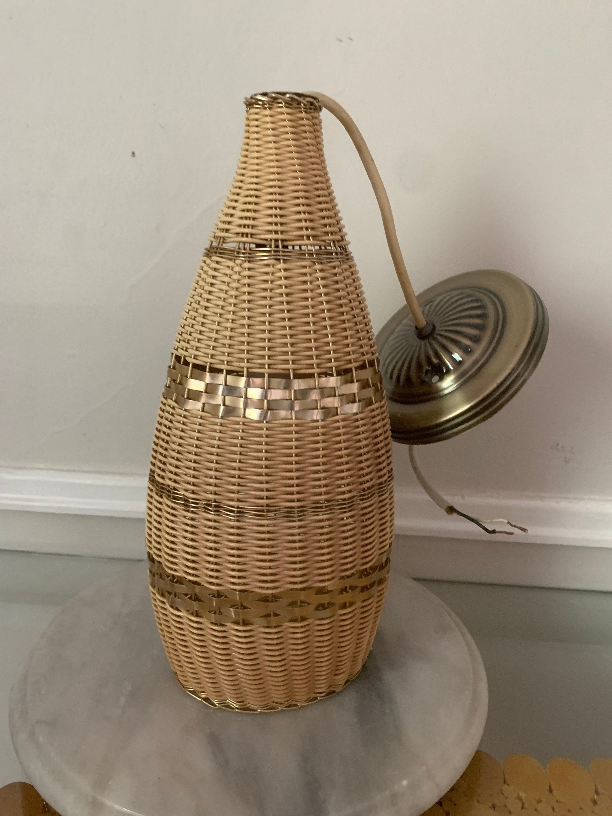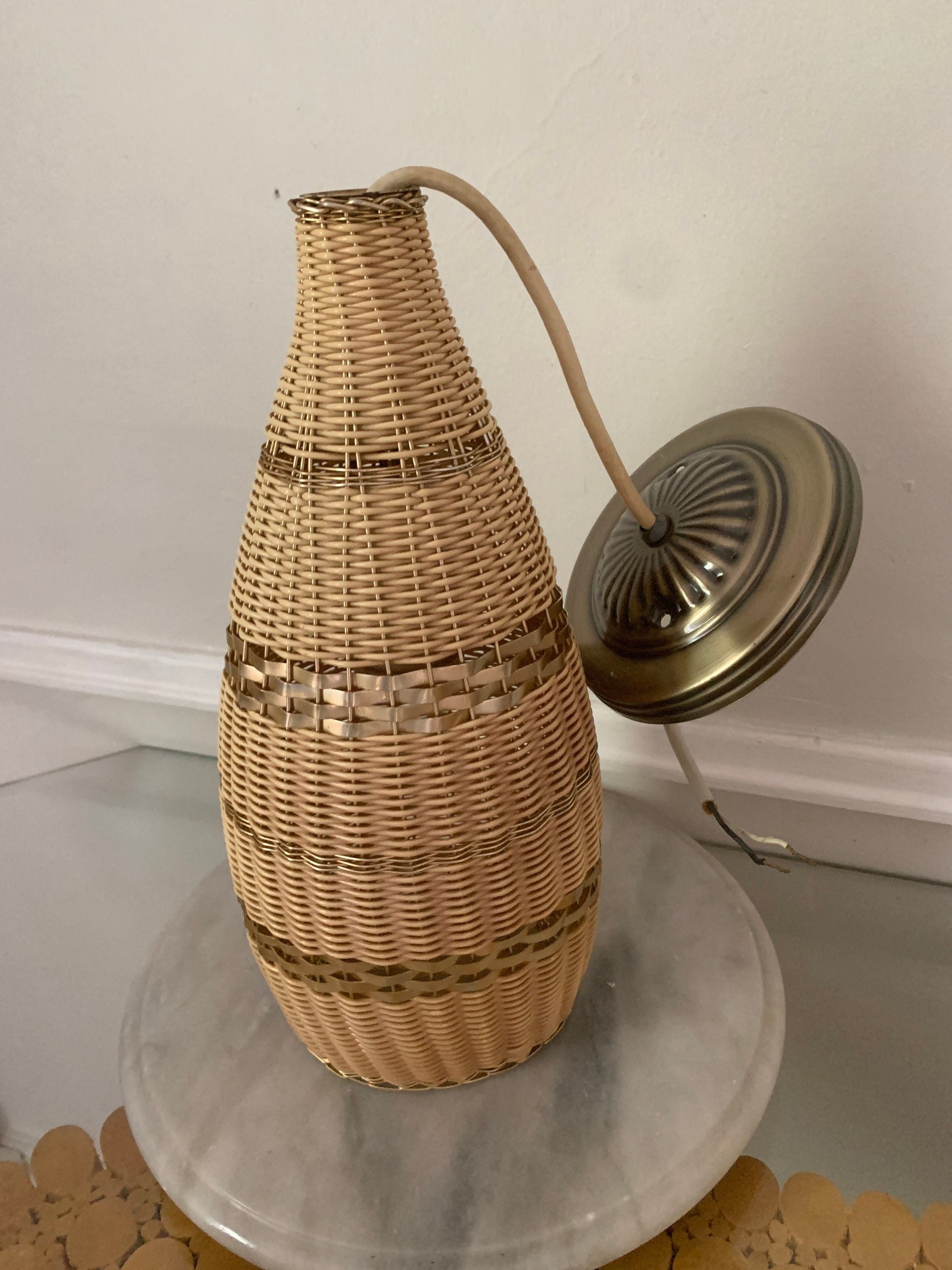 MCM Cream Woven Ceiling Lamp with Soft Gold Metal