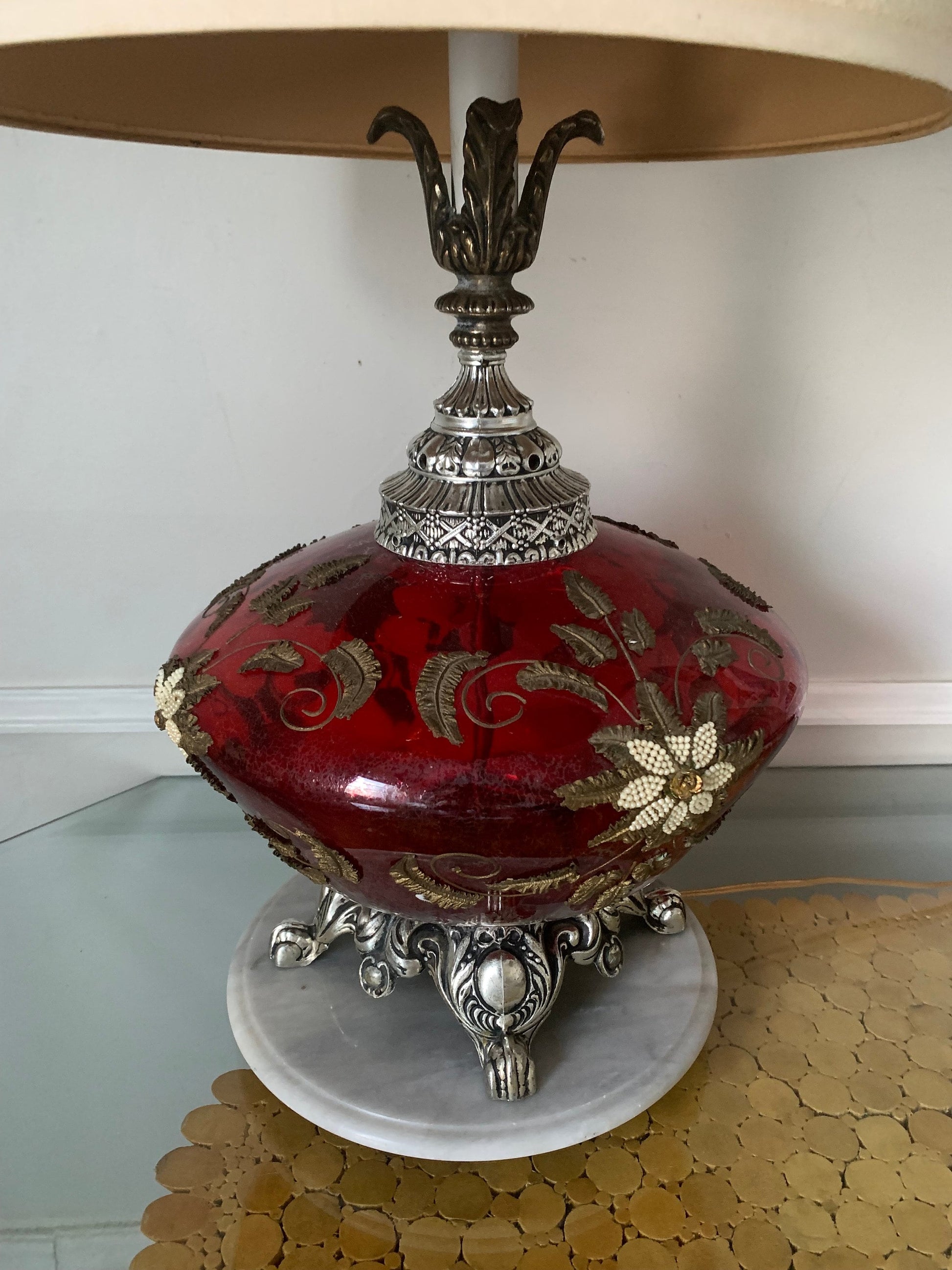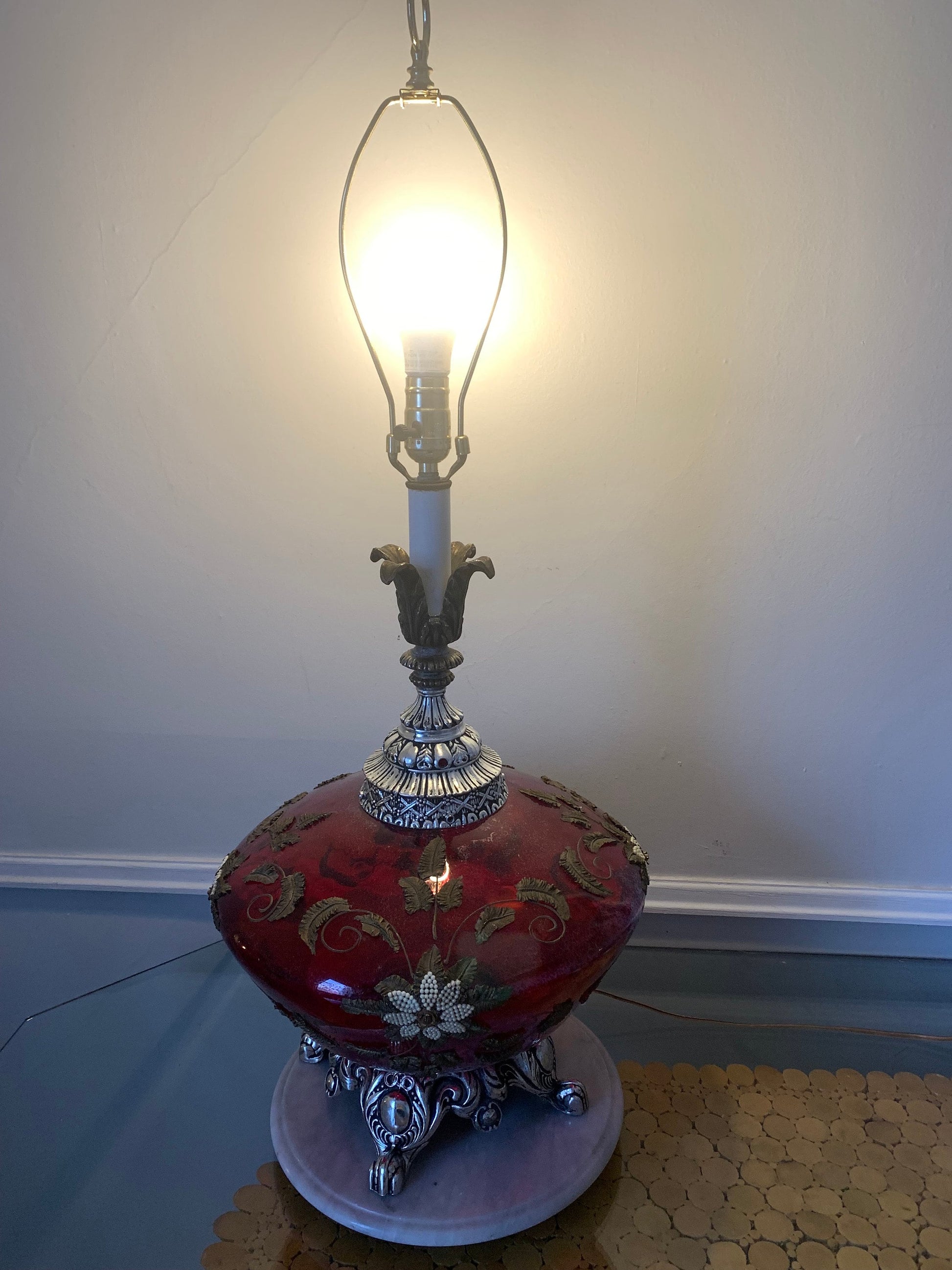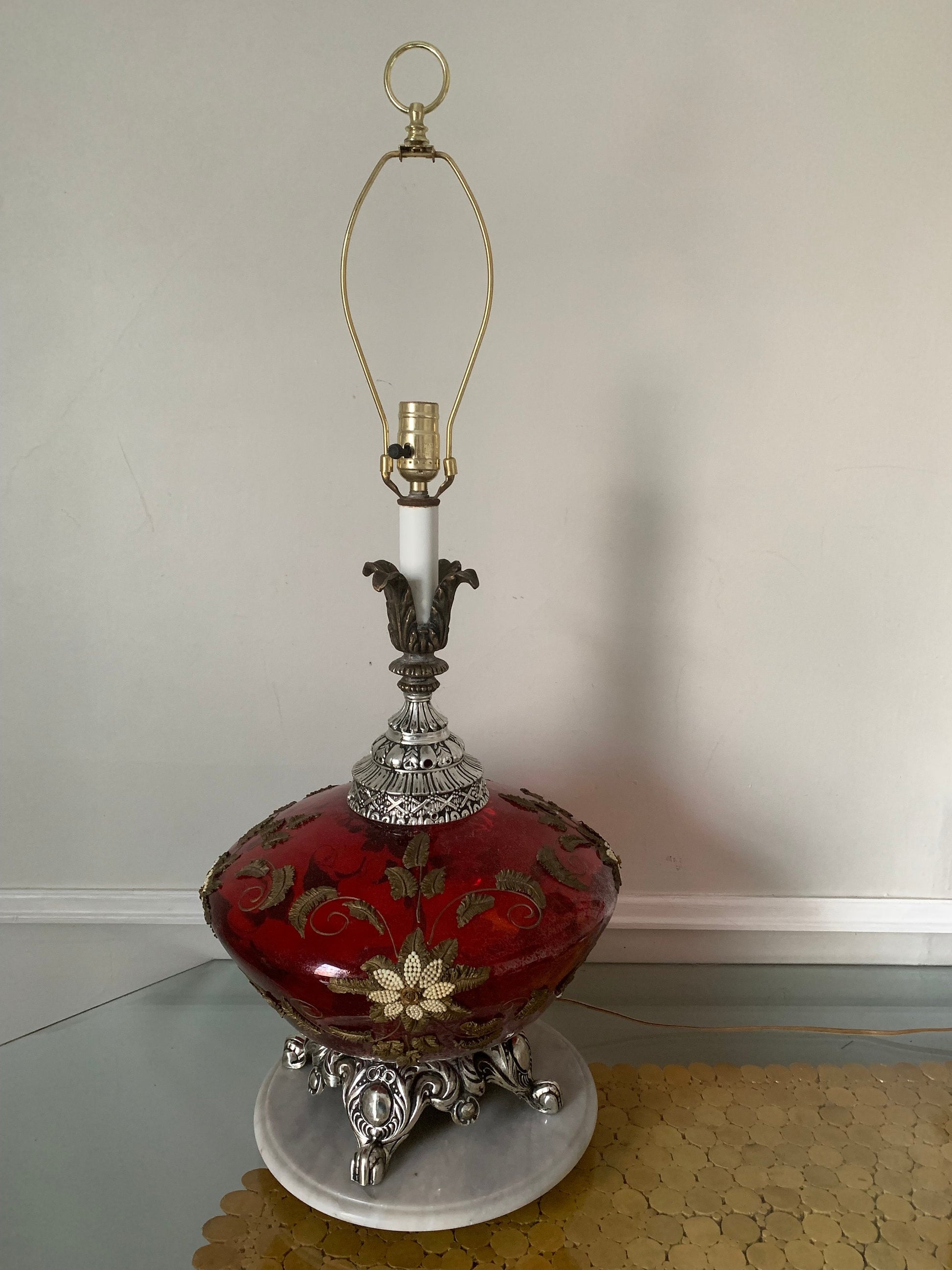 MCM Large Red Glass Globe Lamp No Shade