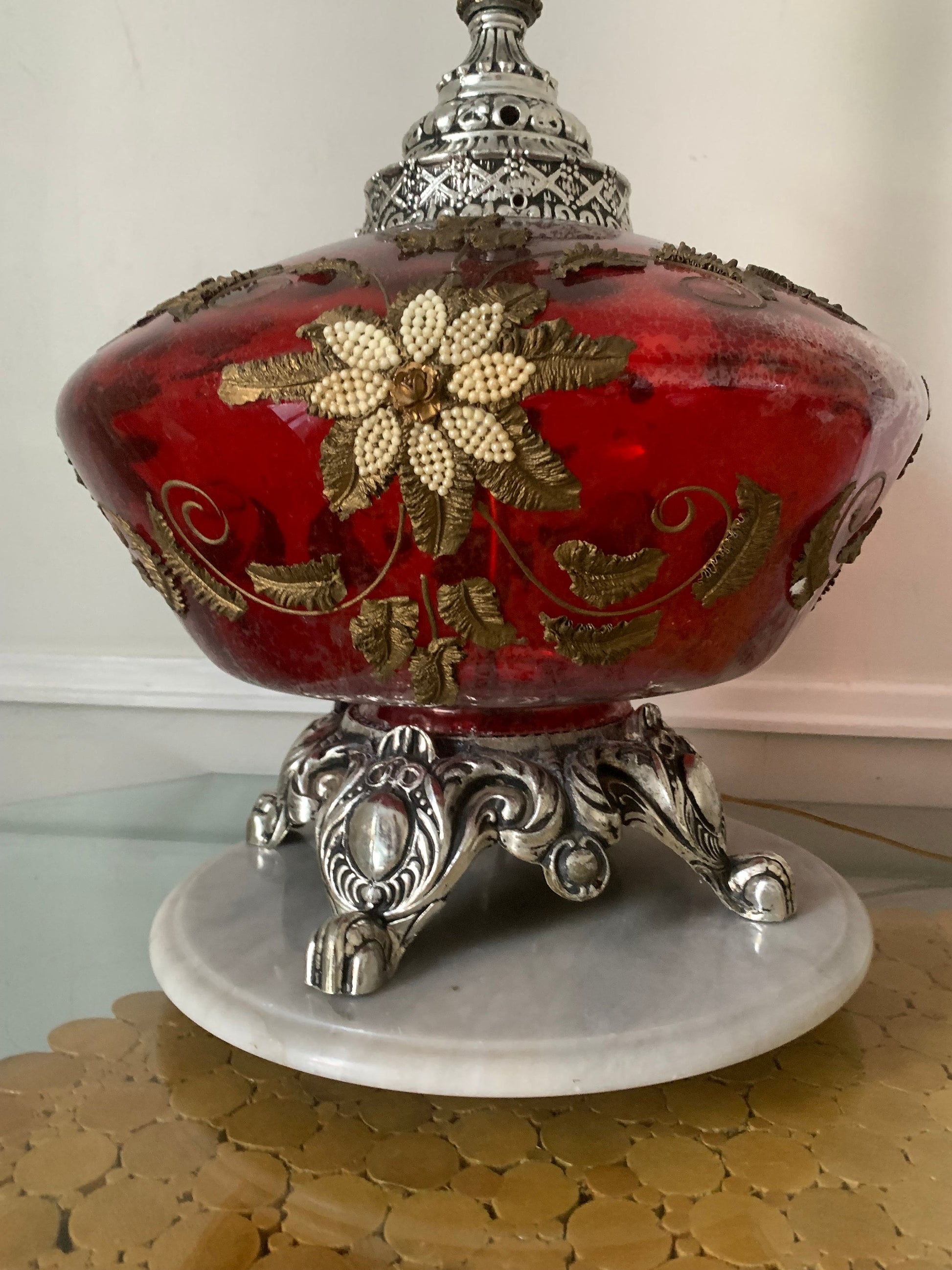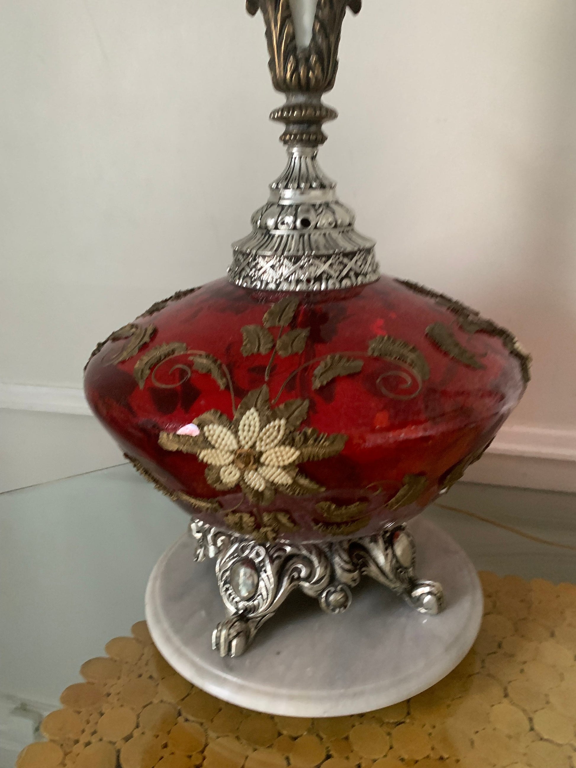 This red glass globe is HUGE! So much fun detail all over.