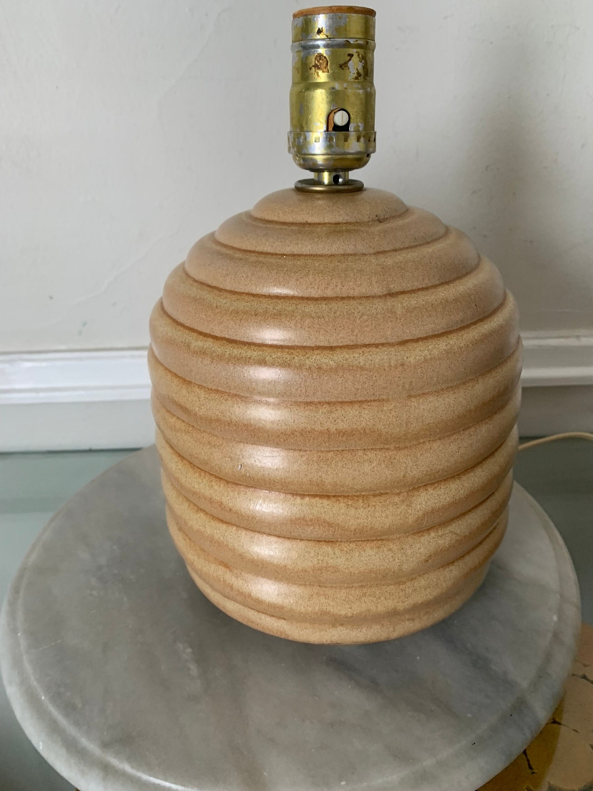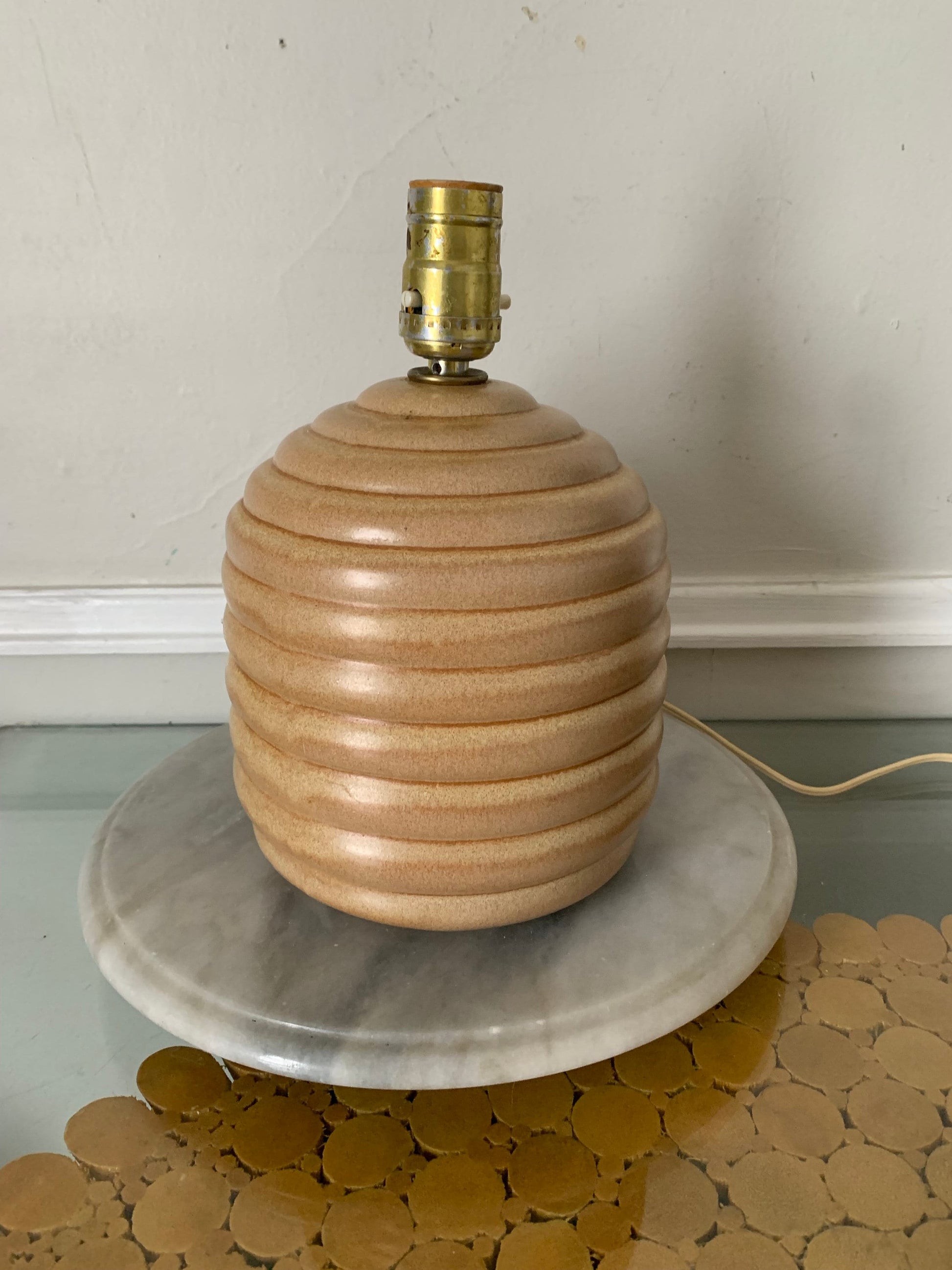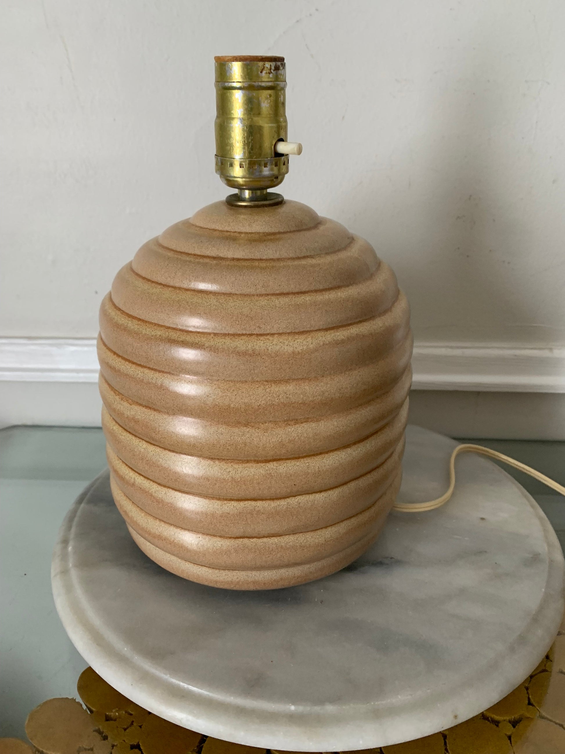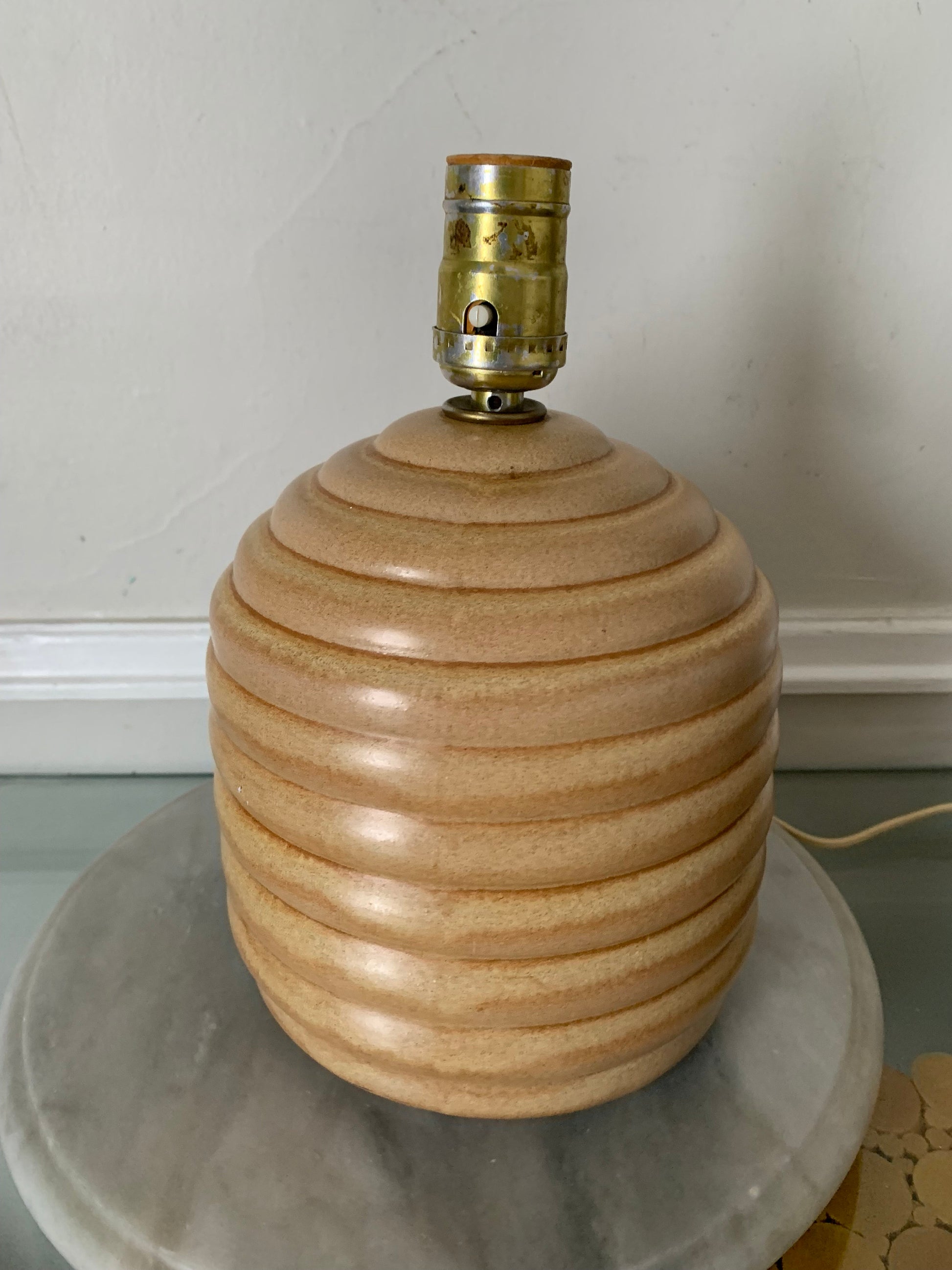 MCM Small Beehive Brown Pottery Table Lamp No Shade
