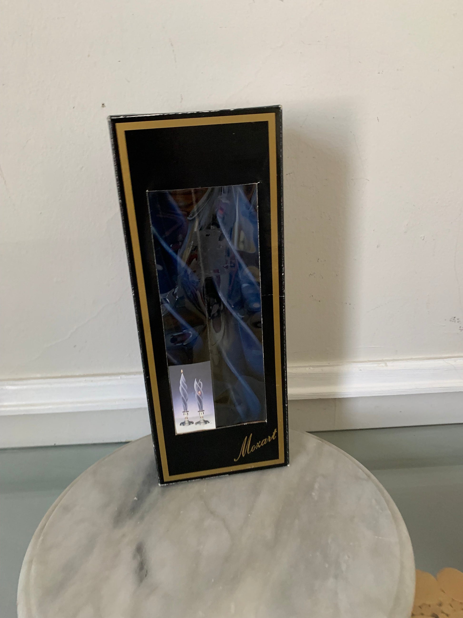 Reads on the back of the box: "The unique and sophisticated Mozart is individually shaped by hand to form its stately character. By burning gently through its core the Mozart reveals its final beauty and leaves an intriguing sculpture which embraces the enchantment of your special occasion."