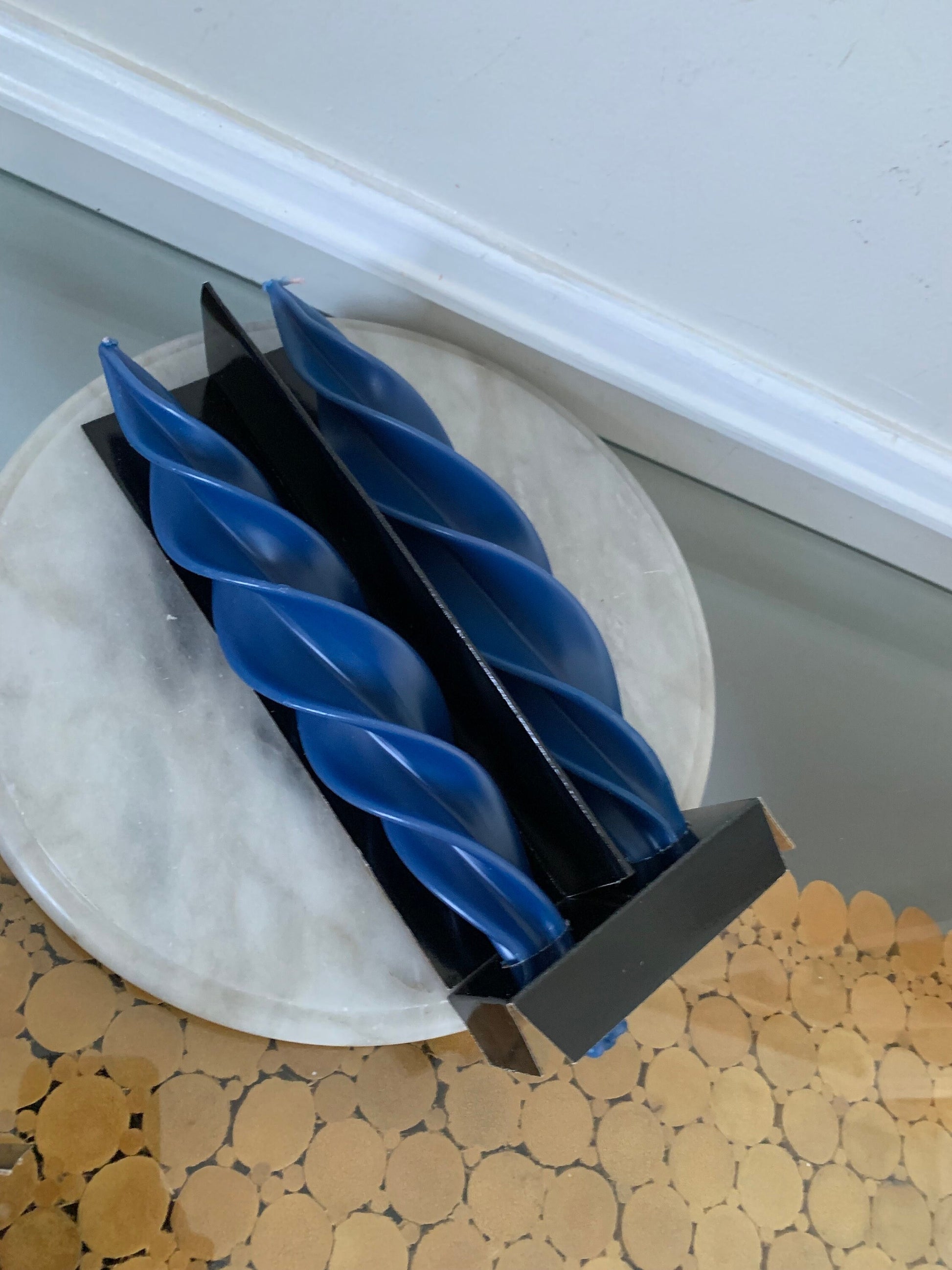Pair of Large Blue Retro Handmade Mozart Swirl Candles by Montanna in Original Box