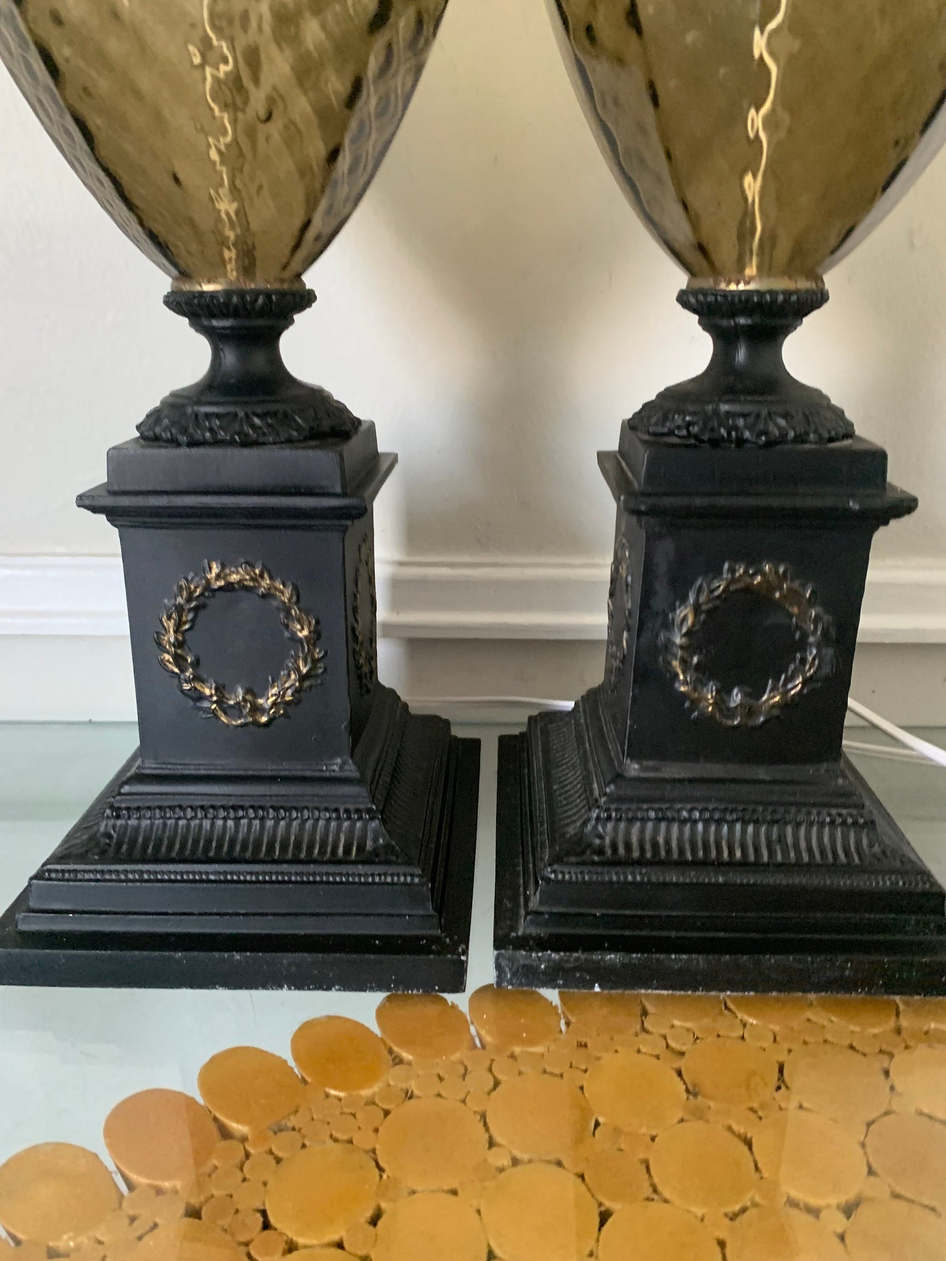 I love this smokey brown coloured glass against the dark metal column base.
