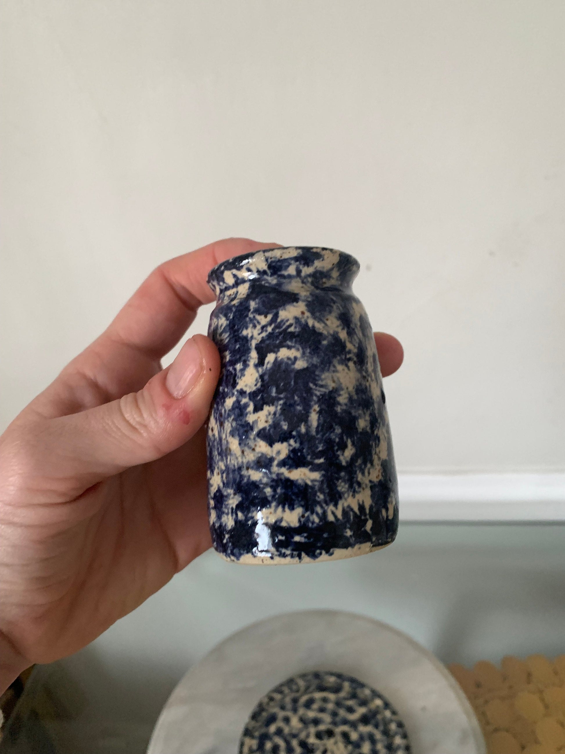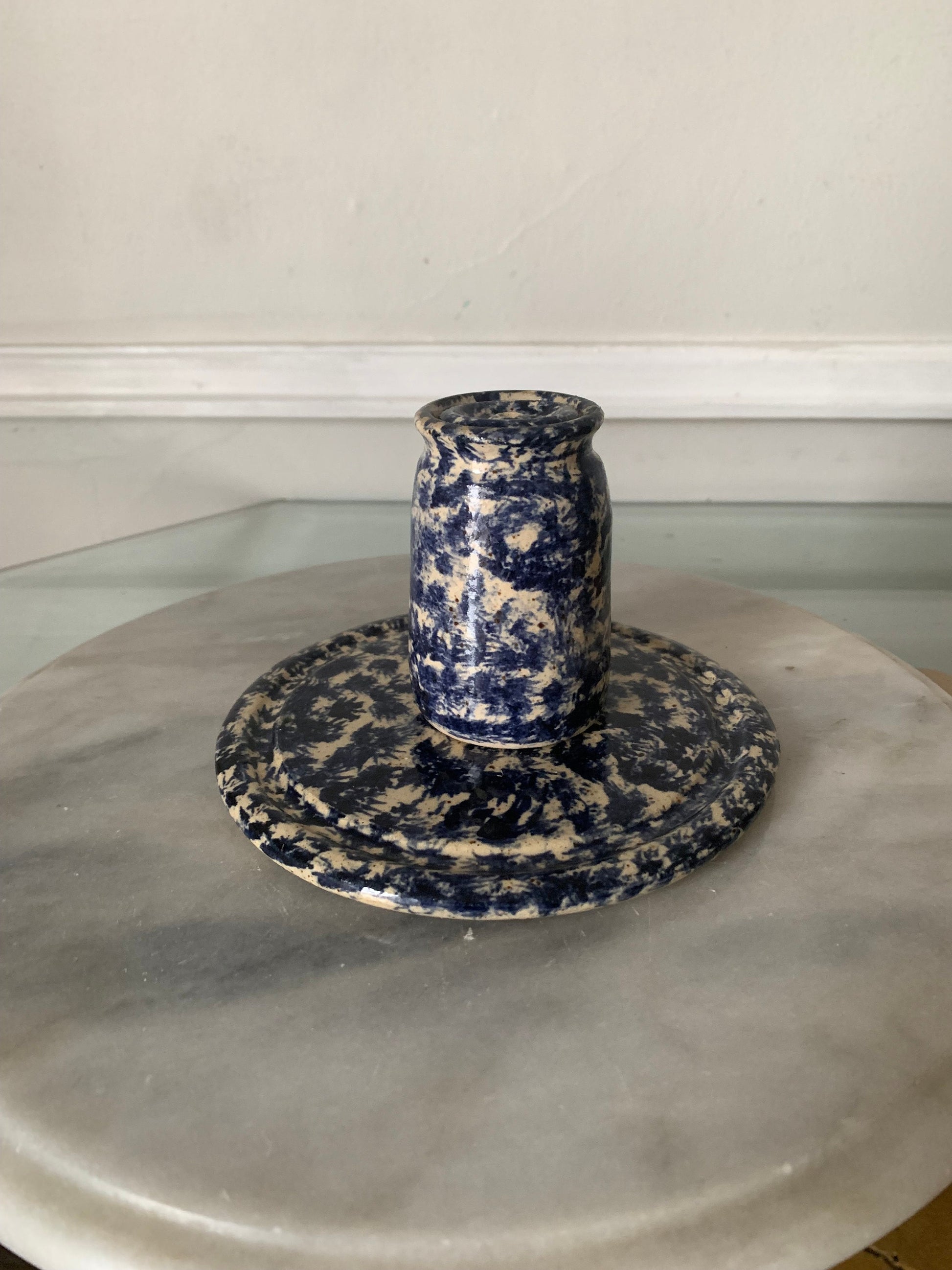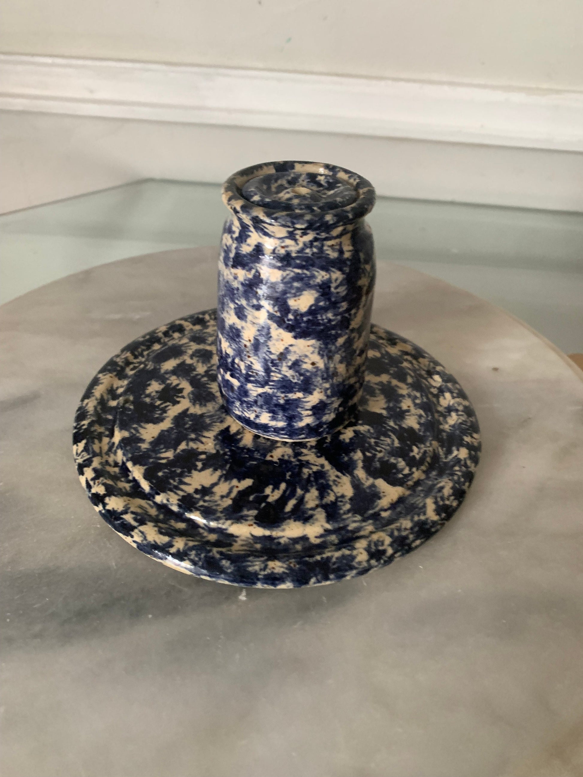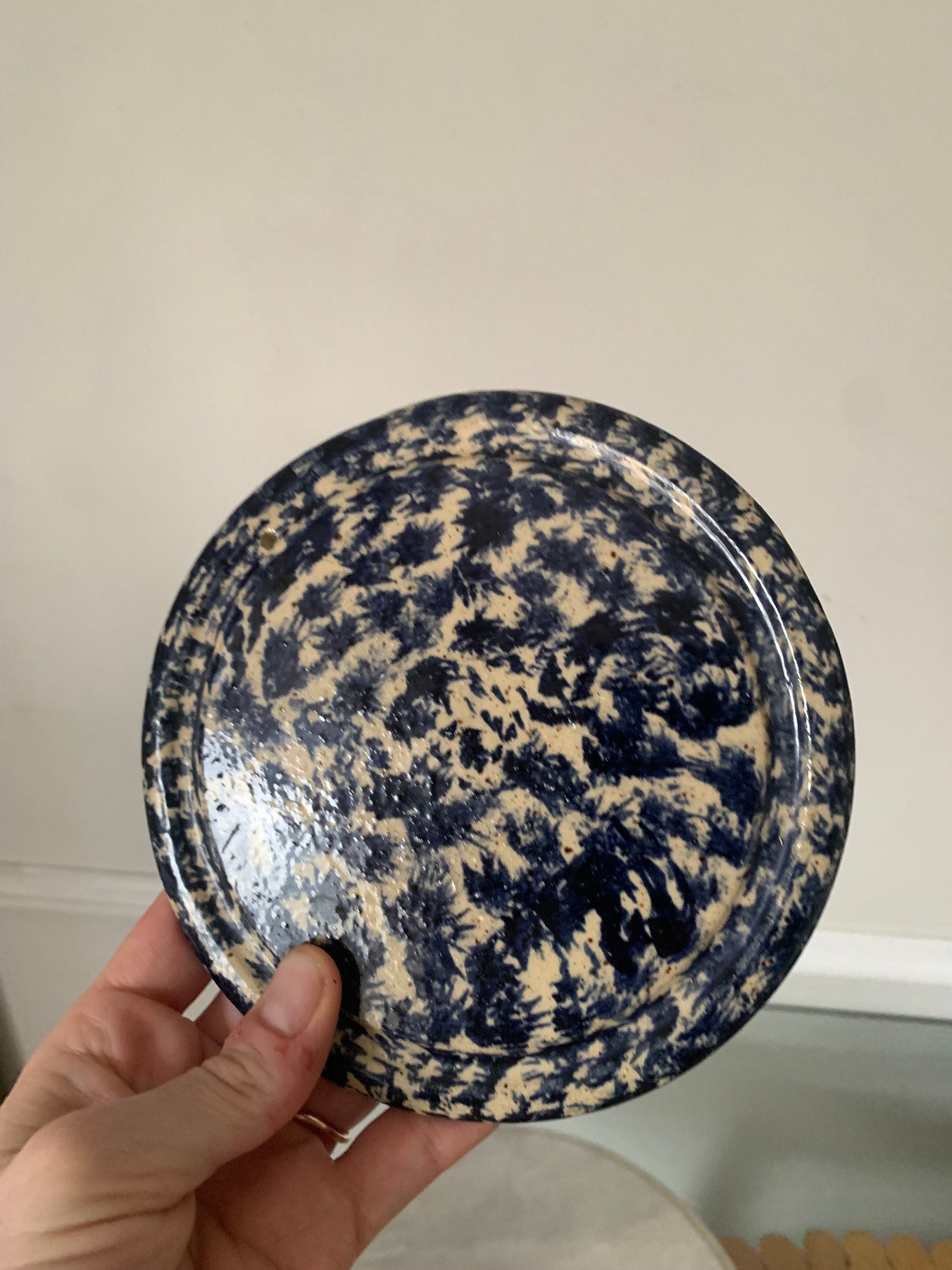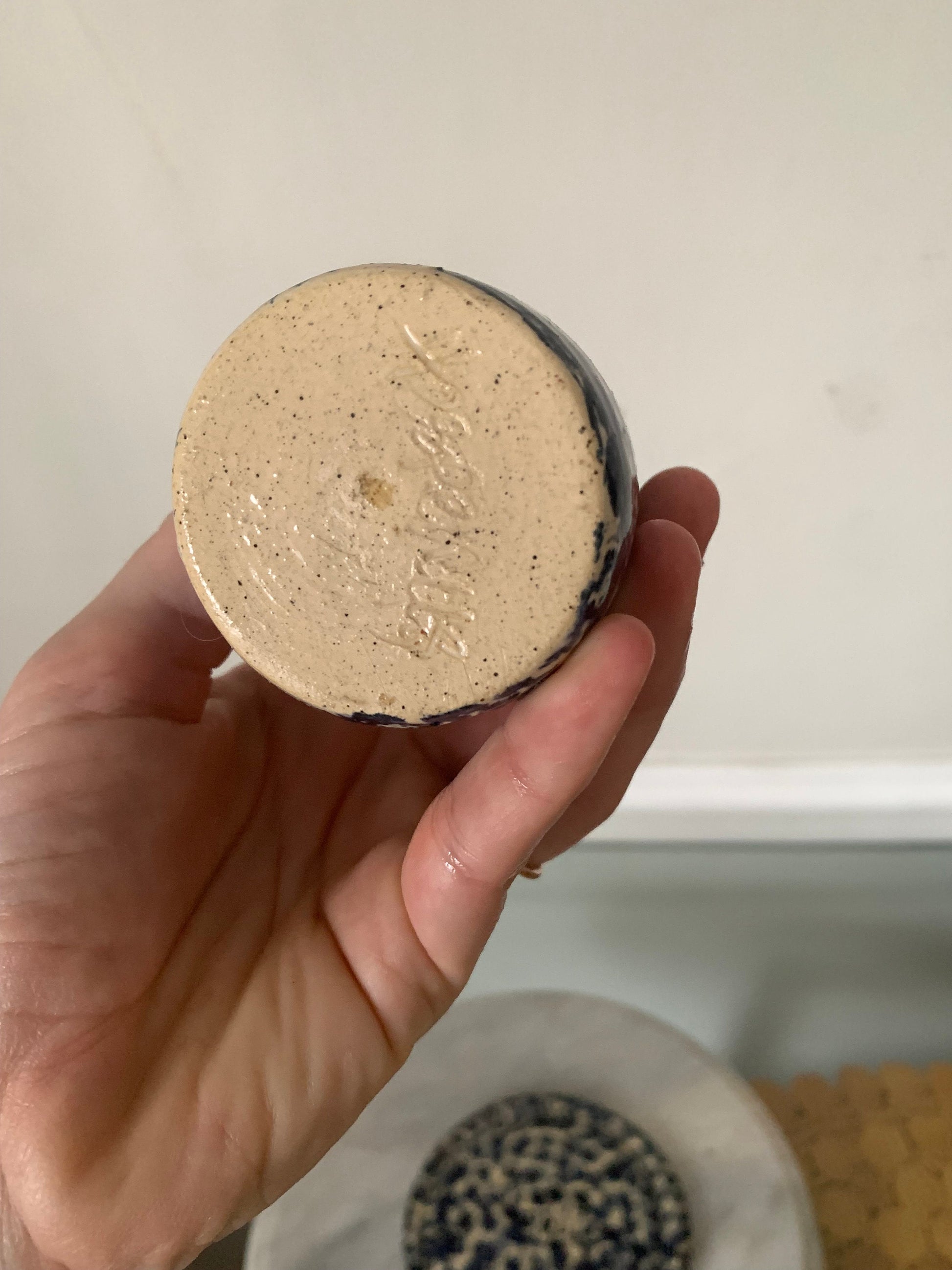 Retro Handmade Blue and White Pottery Bread Basket Warmer Made in Canada