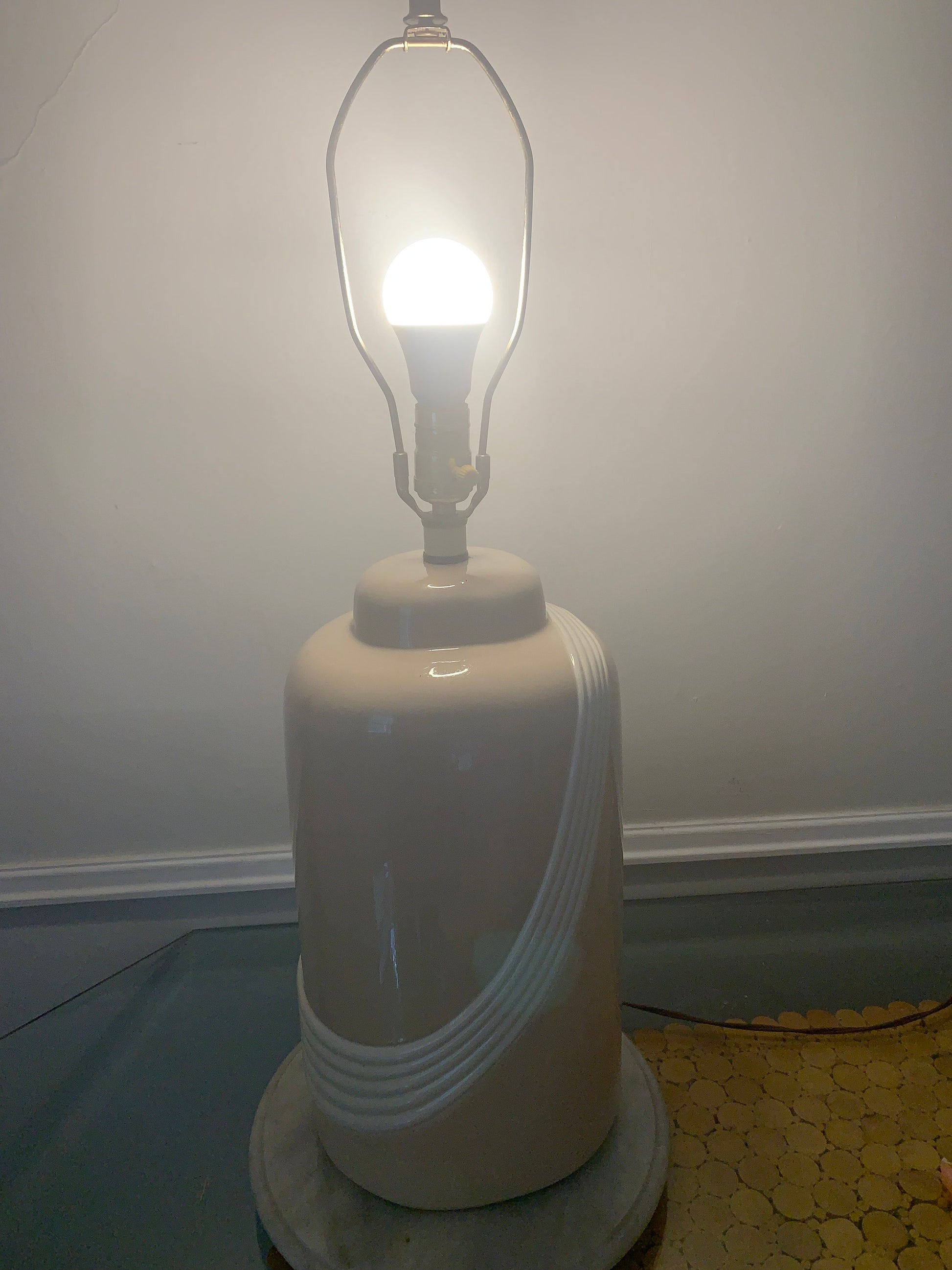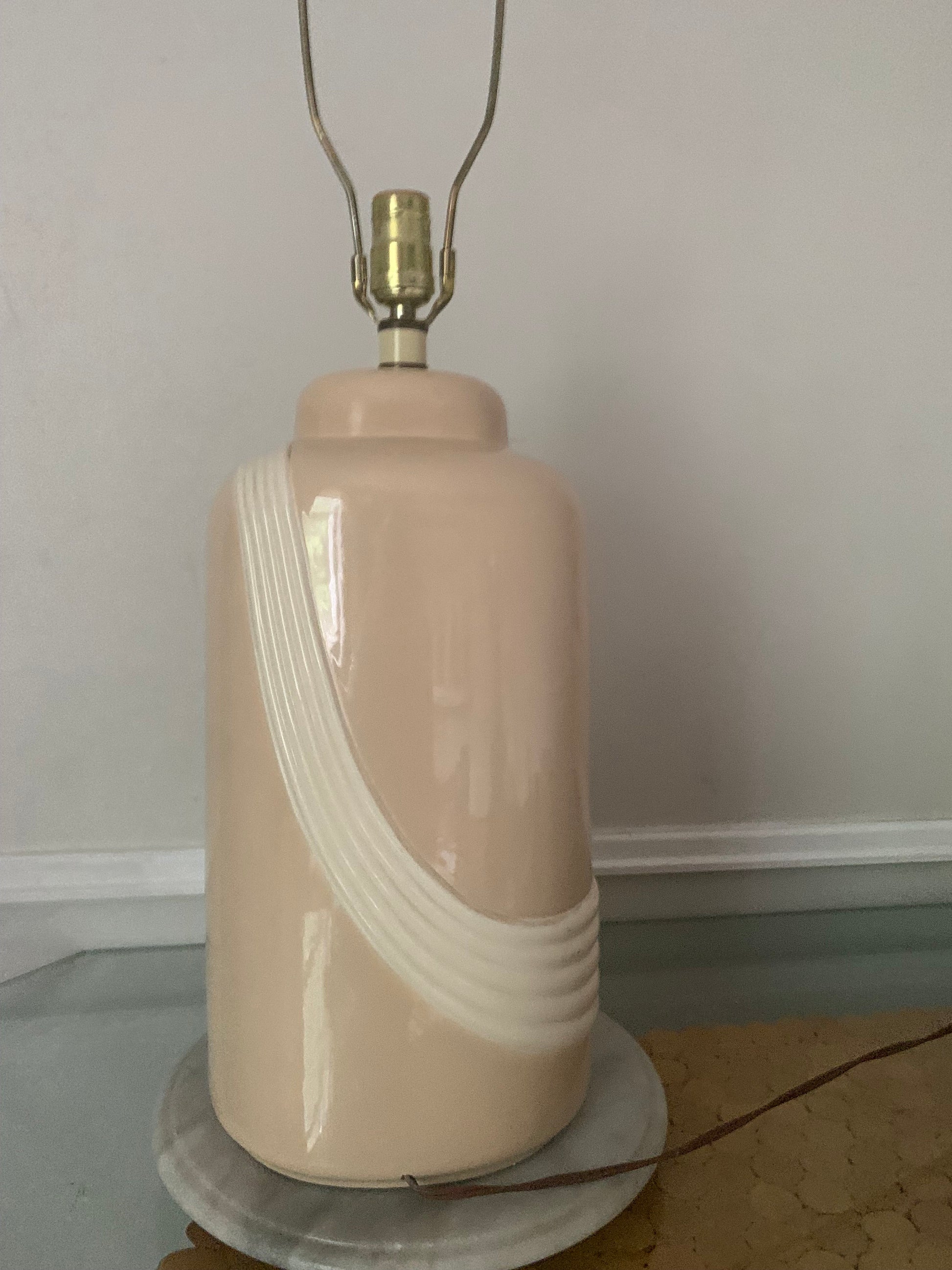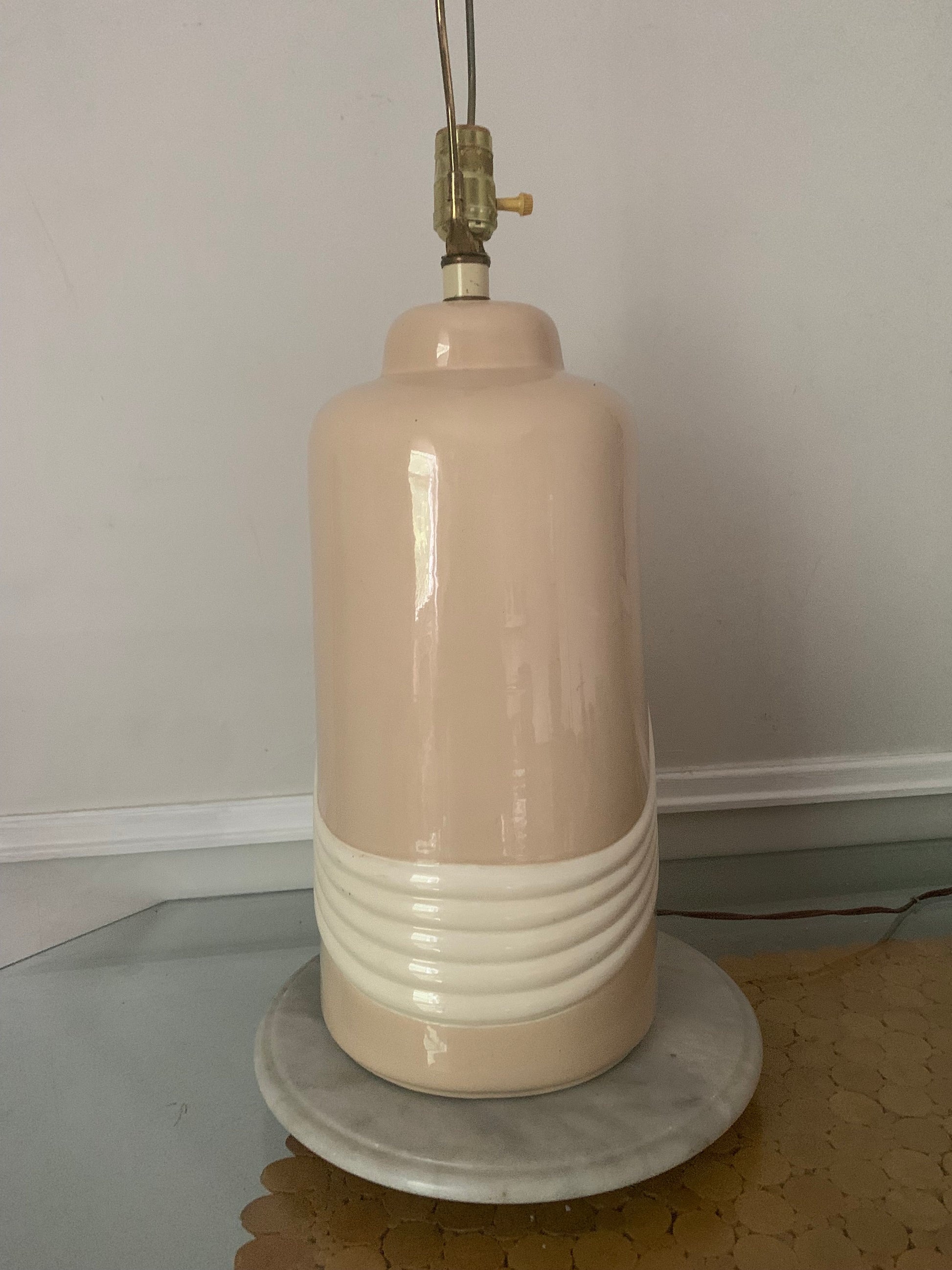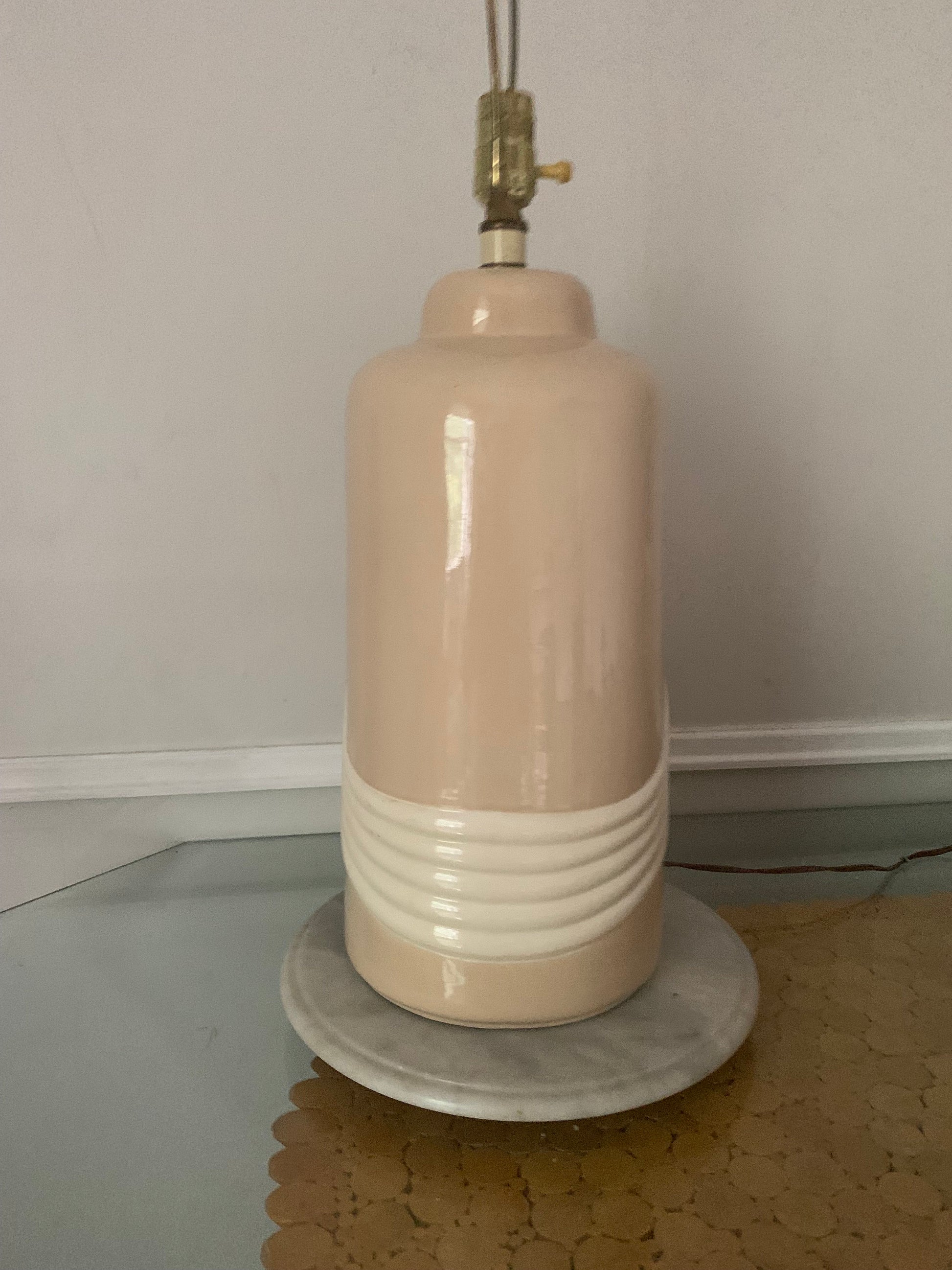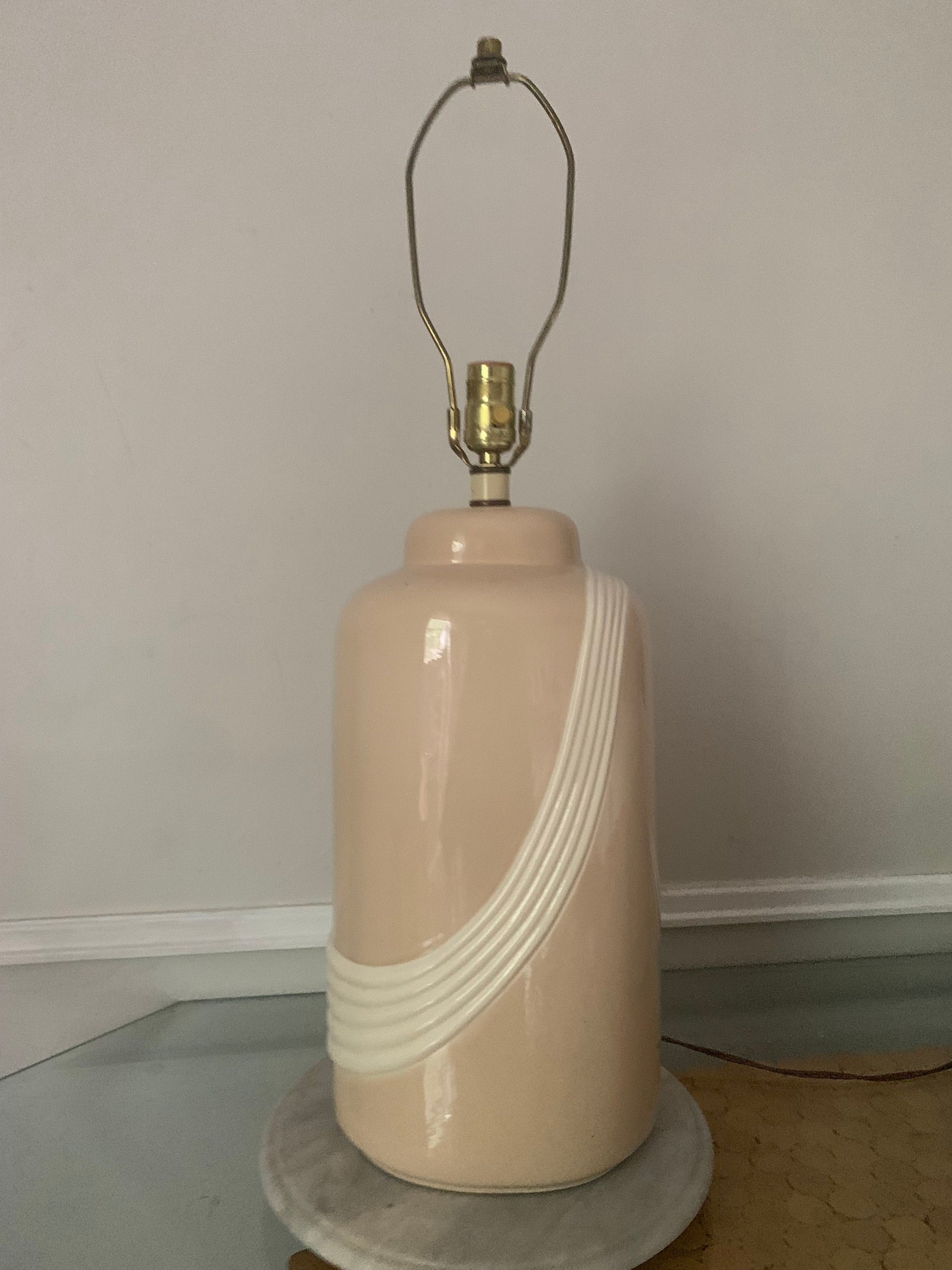 Retro Large Light Tan Ceramic Table Lamp with Cream Piping No Shade