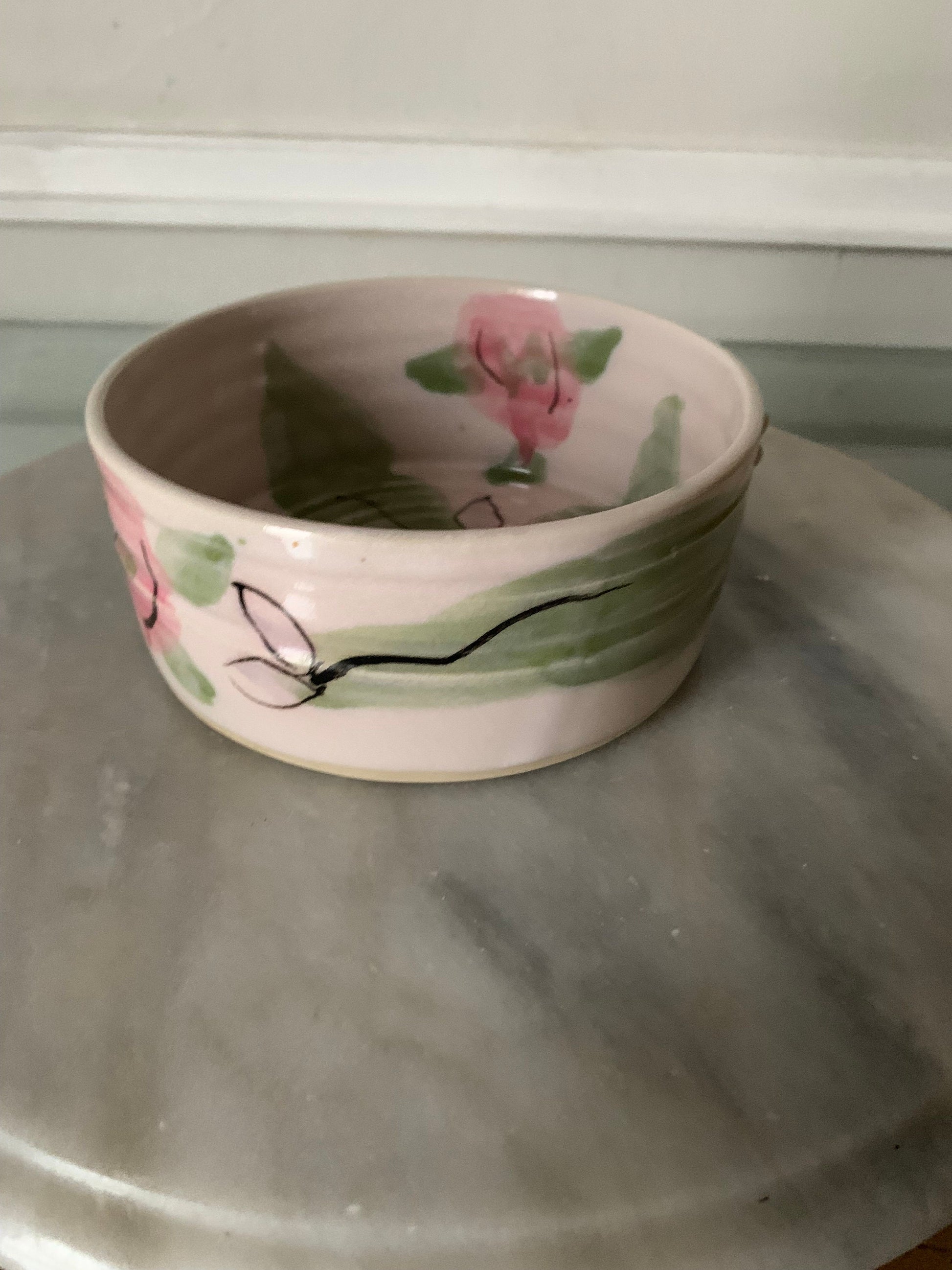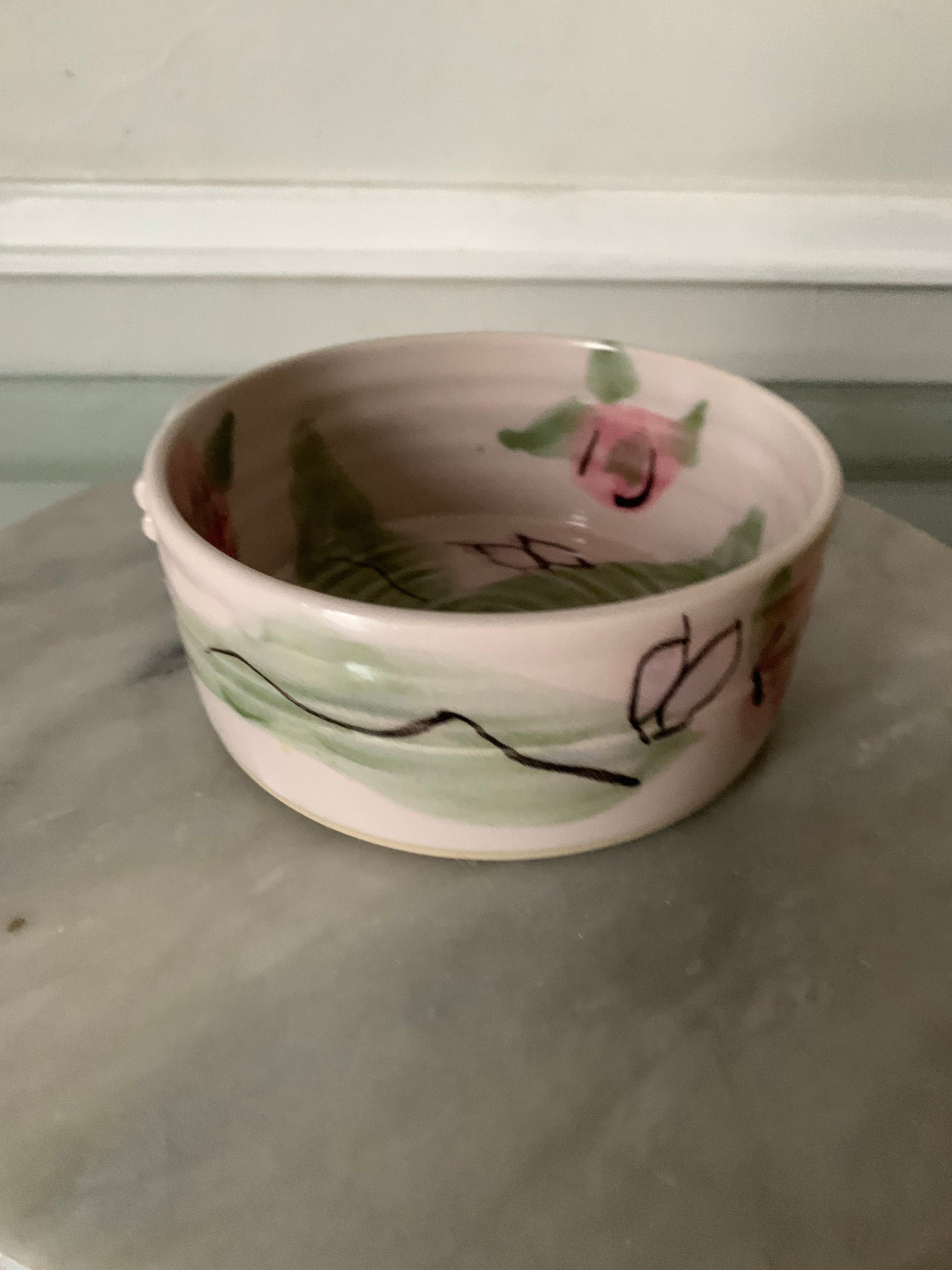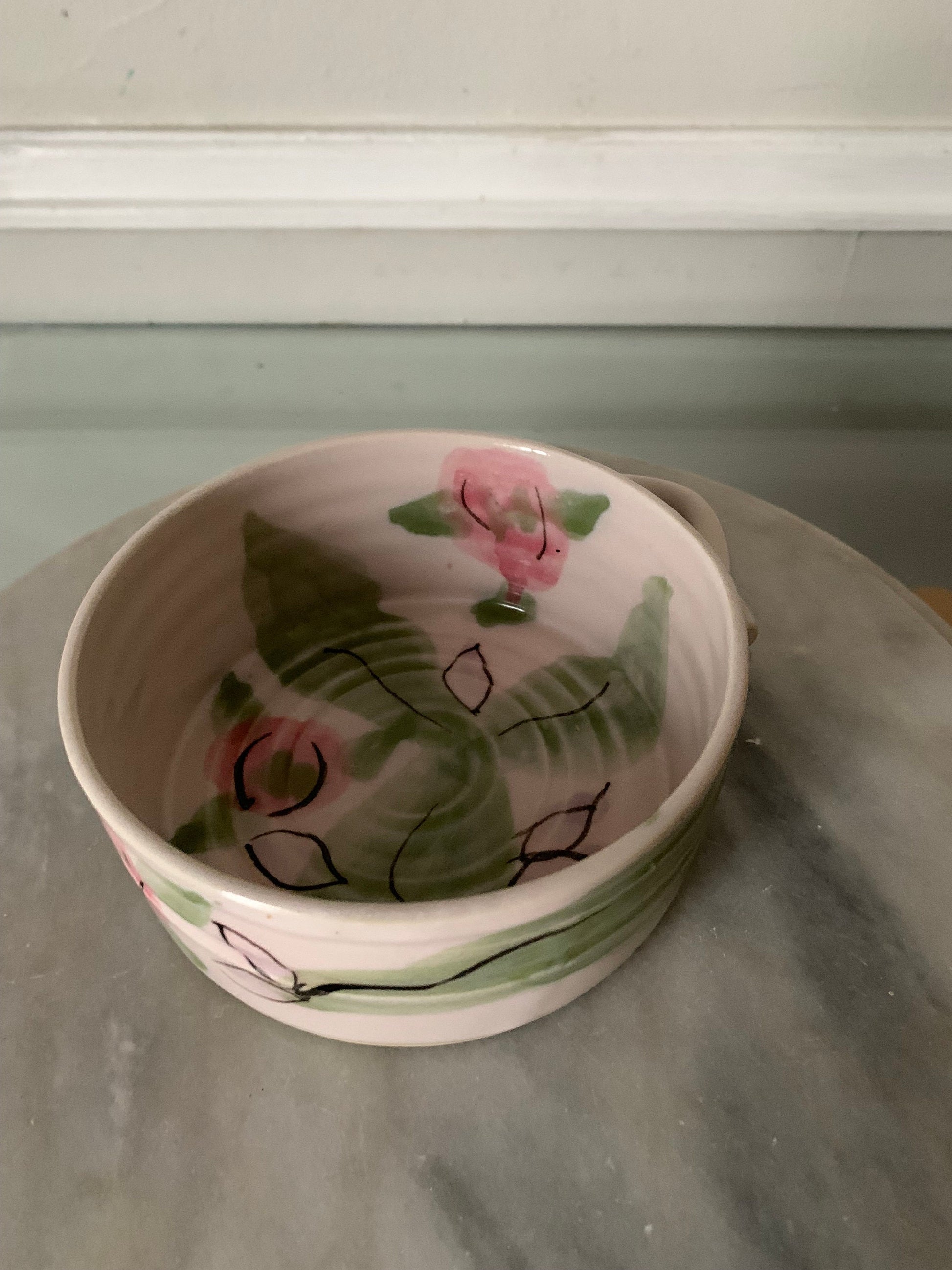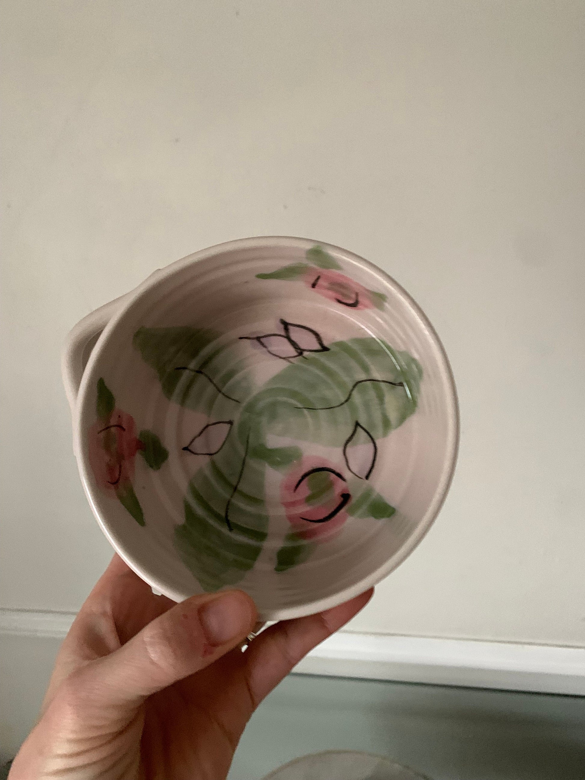 I love delicate little pottery pieces and this one is pretty darn cute. I love the pink and green combo. Little holder for a wooden spoon or knife.
