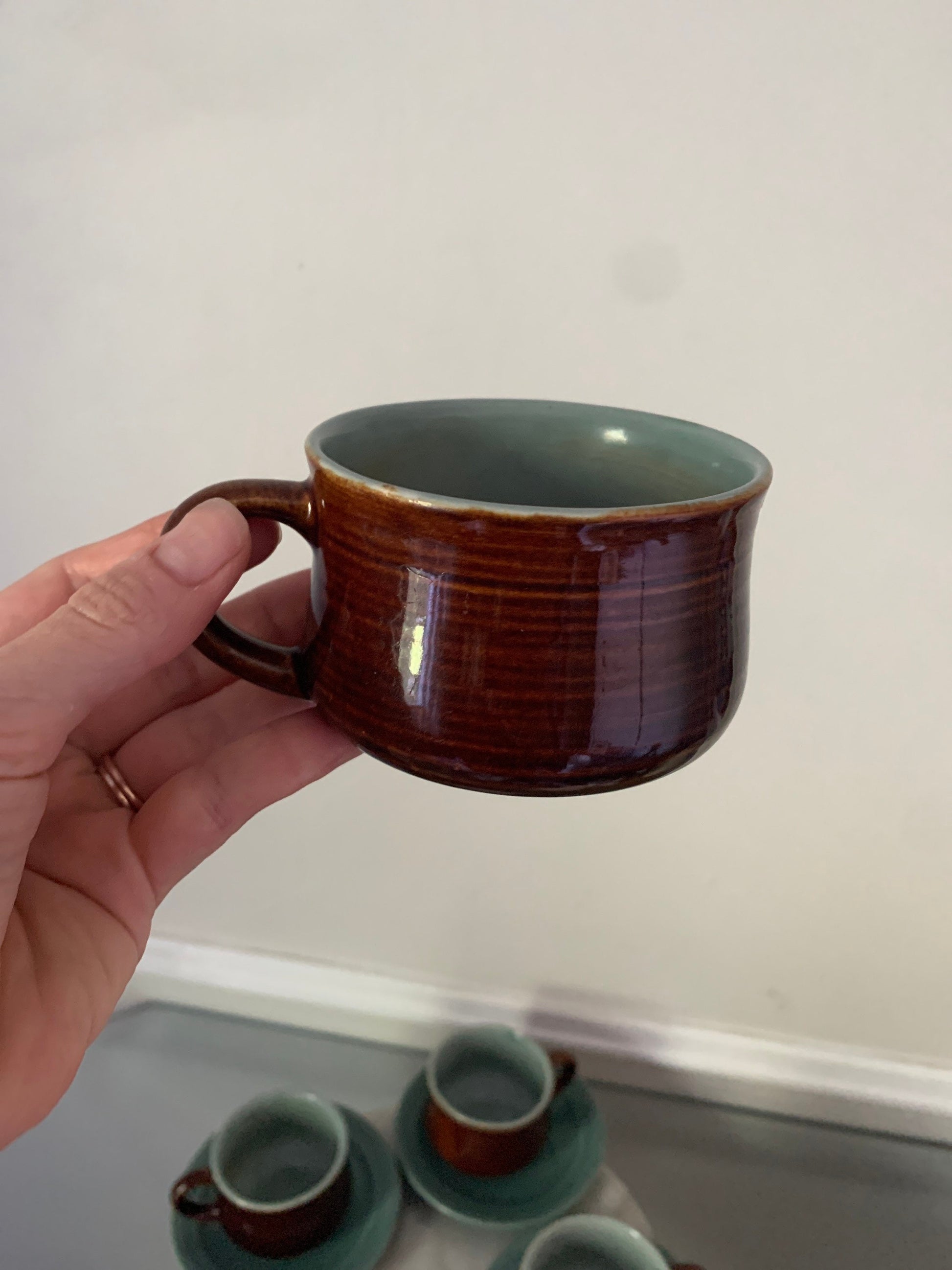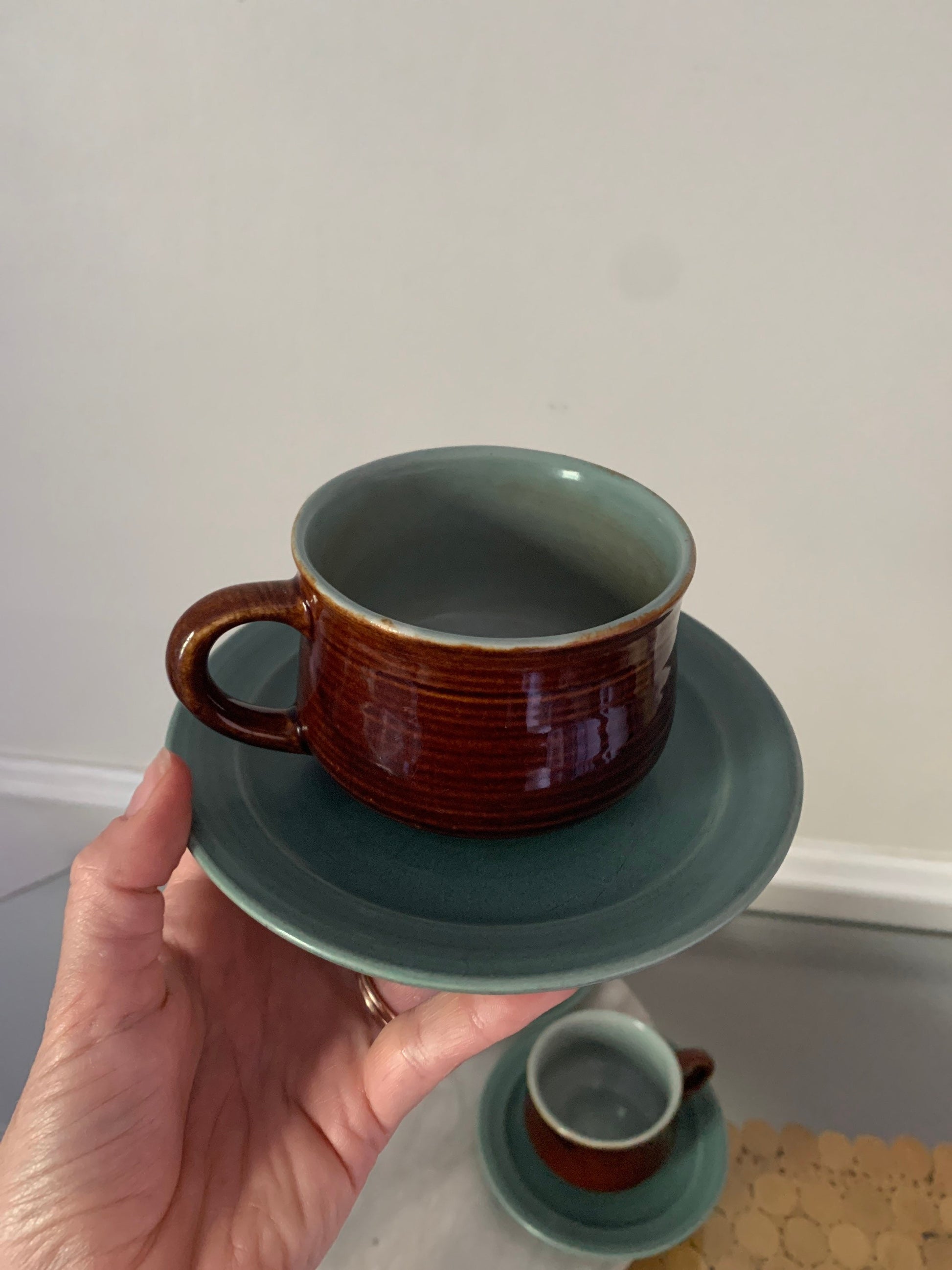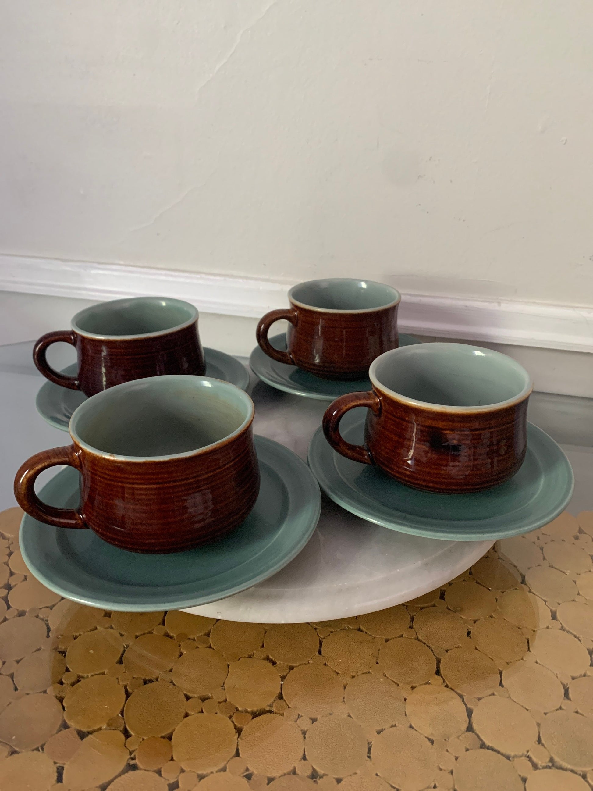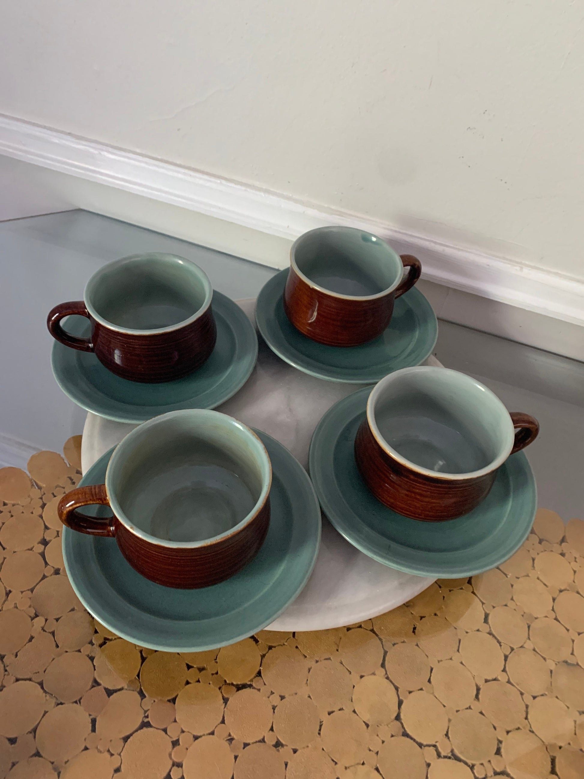 Retro Set of 4 Brown & Robins Egg Blue Cup and Saucer Set
