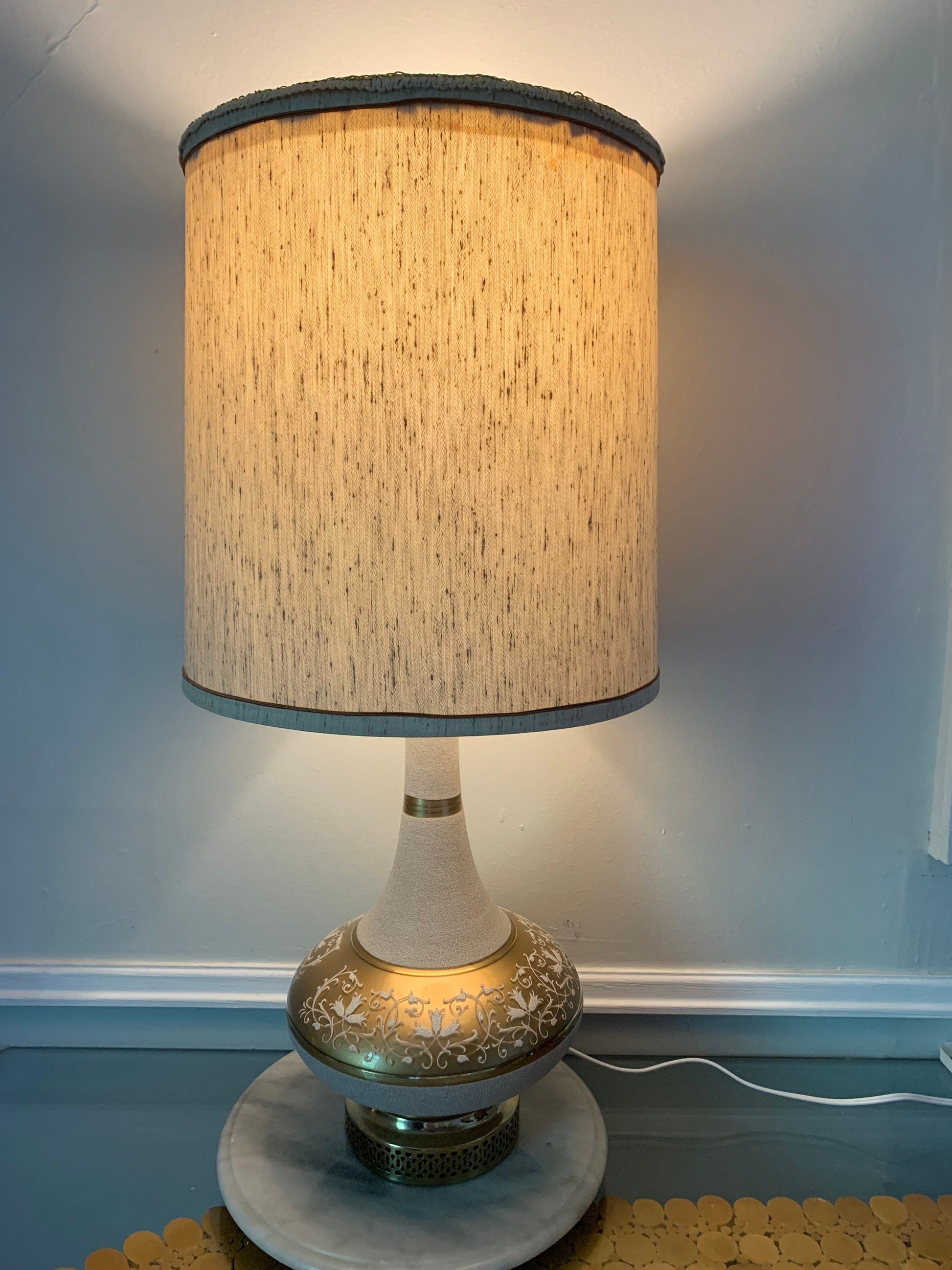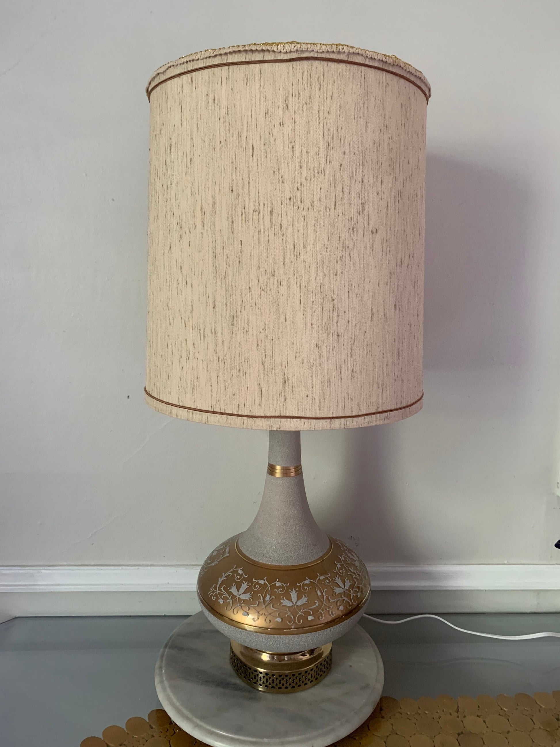 In beautiful condition the only sign of wear being small cracks on the top, plastic gold piece Please note, the shade photographed is not included.