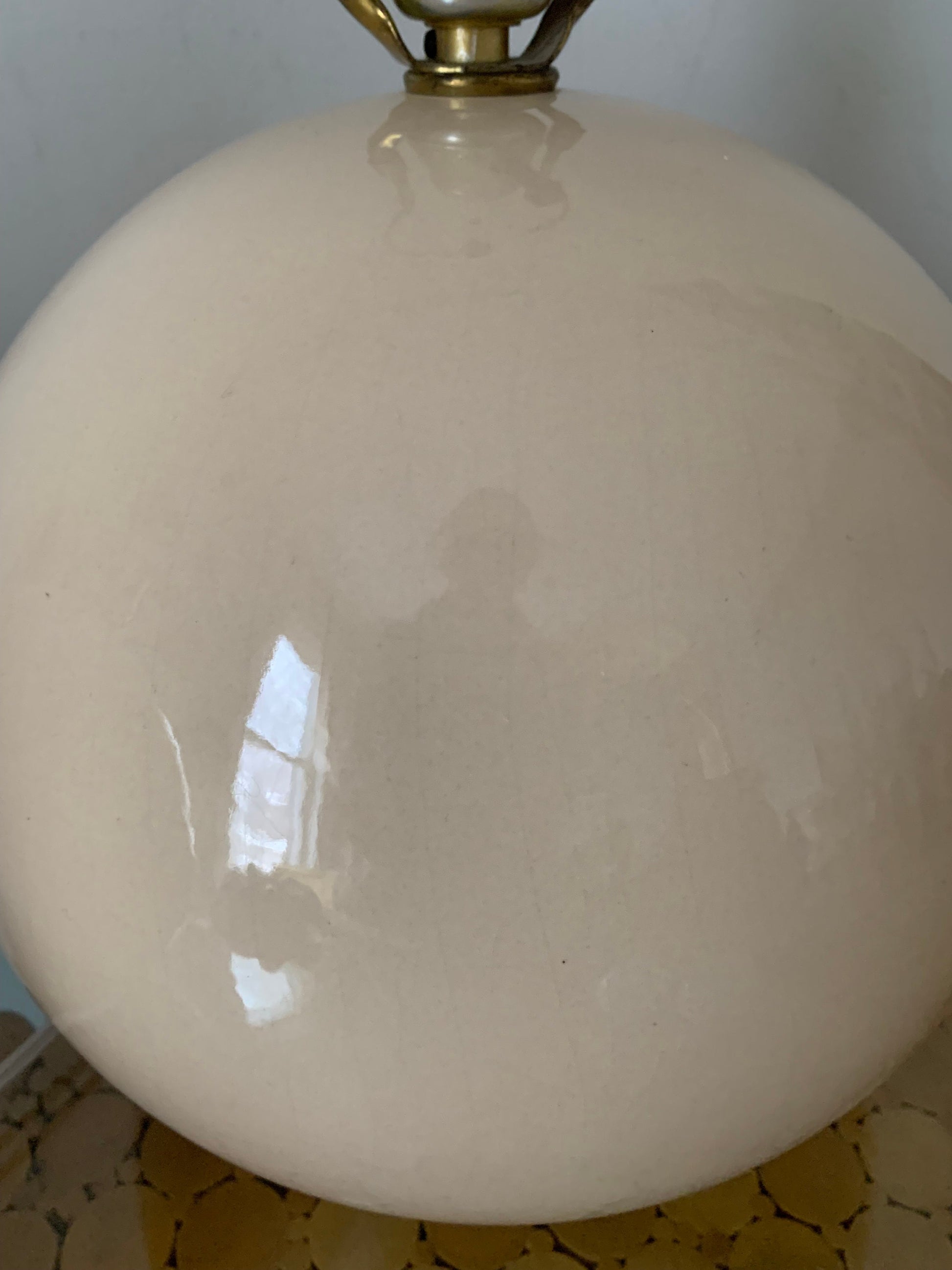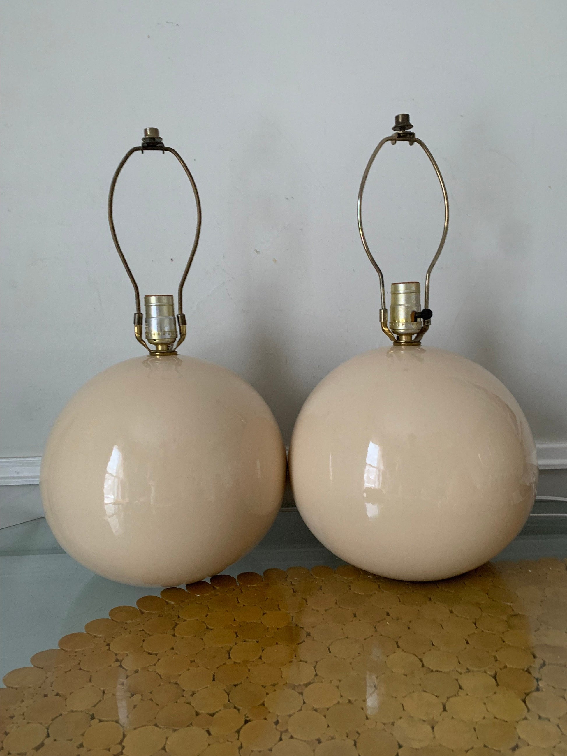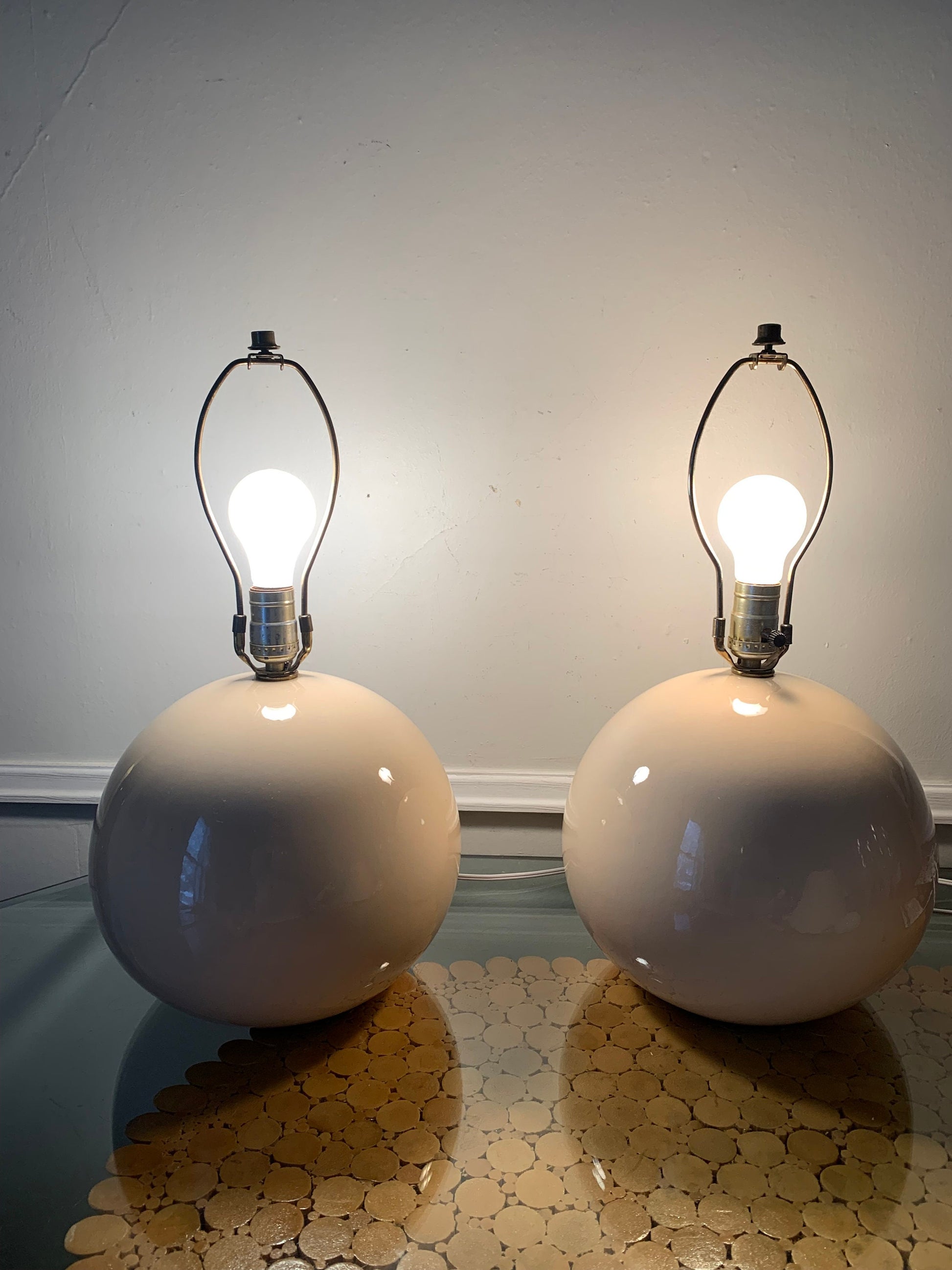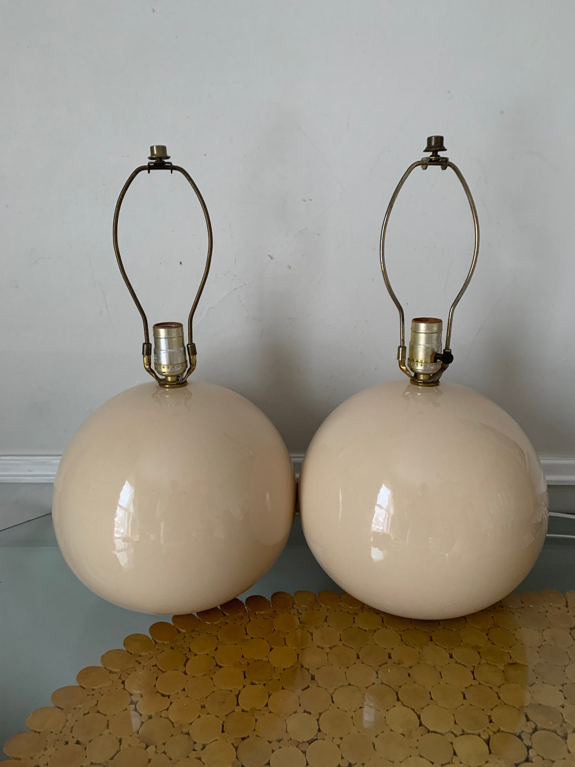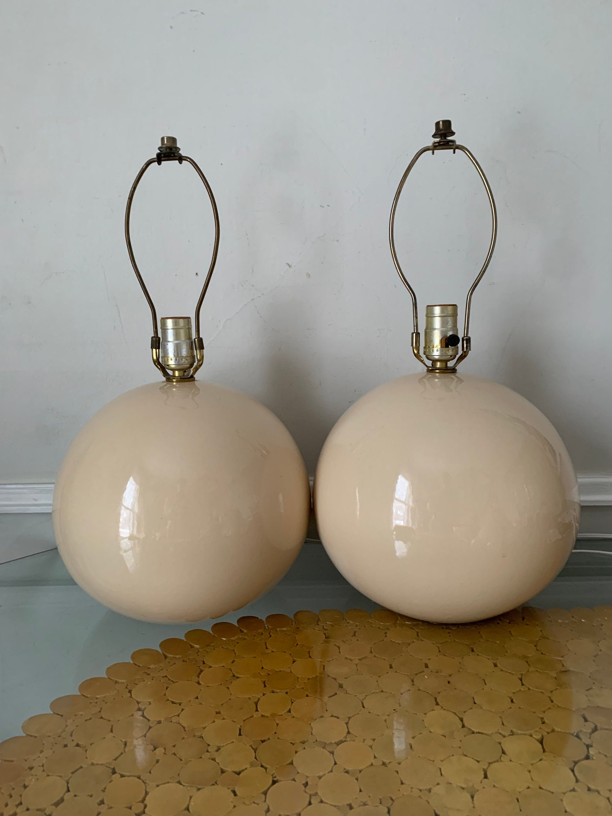 Vintage Pair of Large Cream Ceramic Gum Ball Lamps No Shades