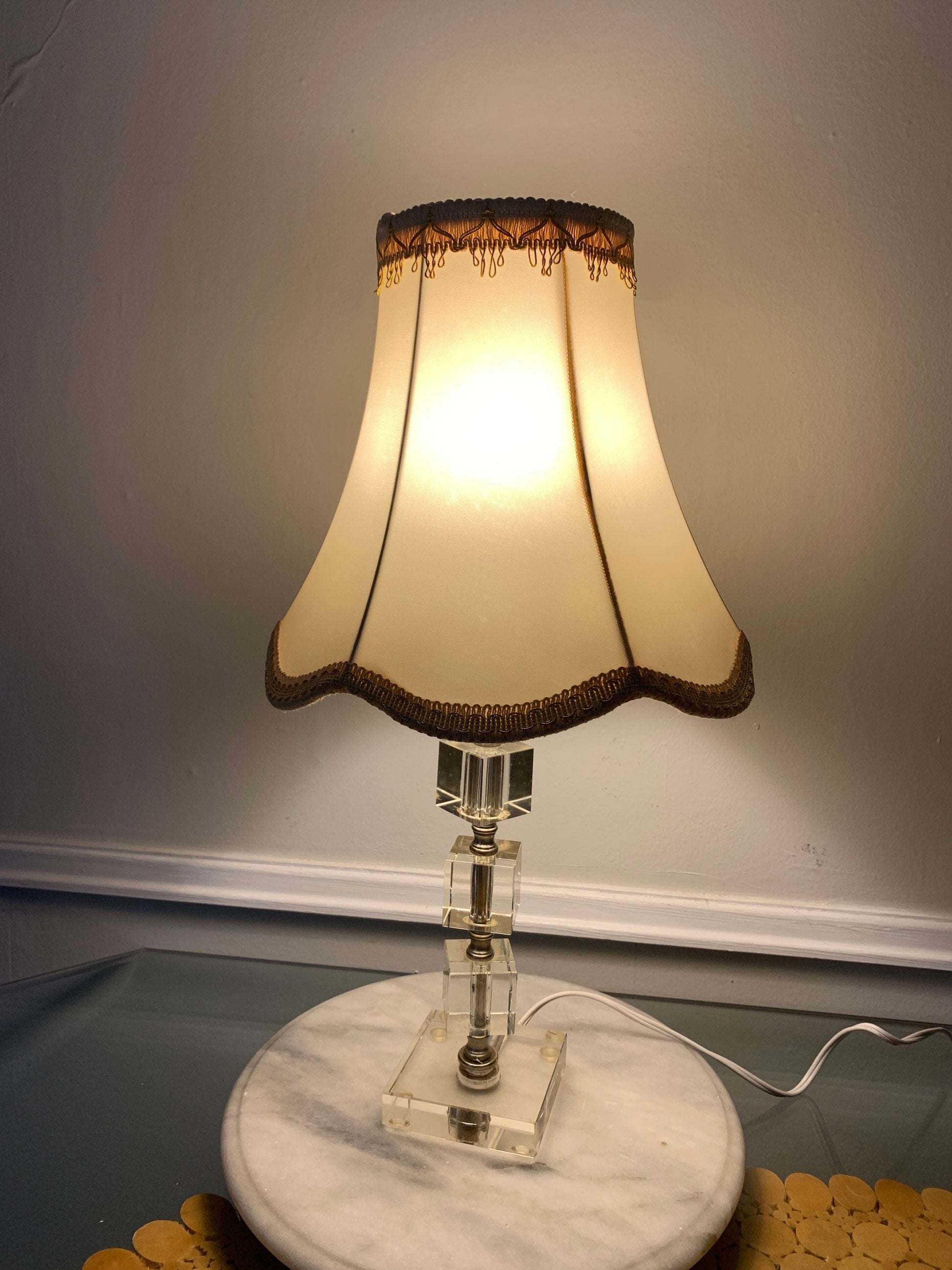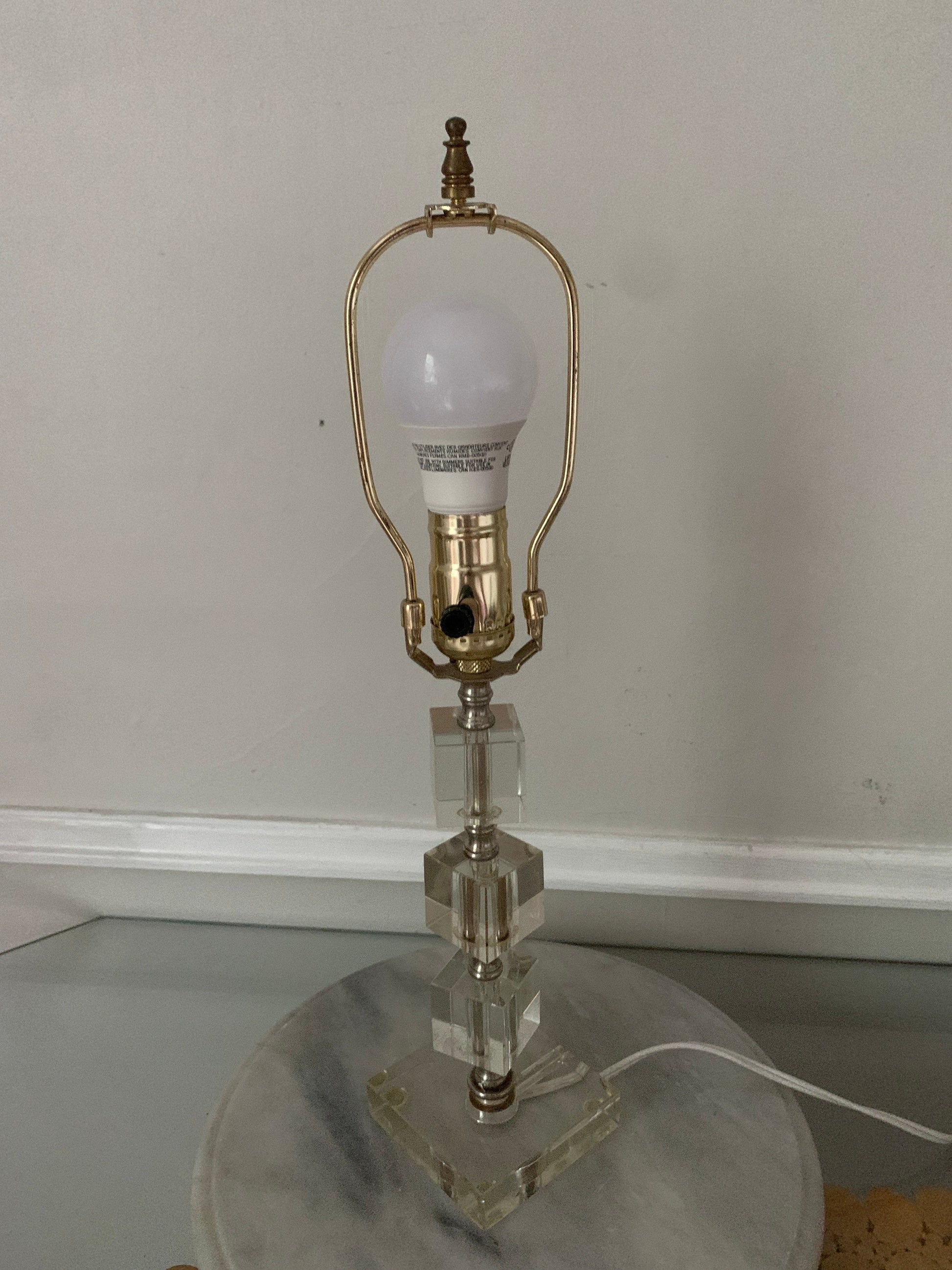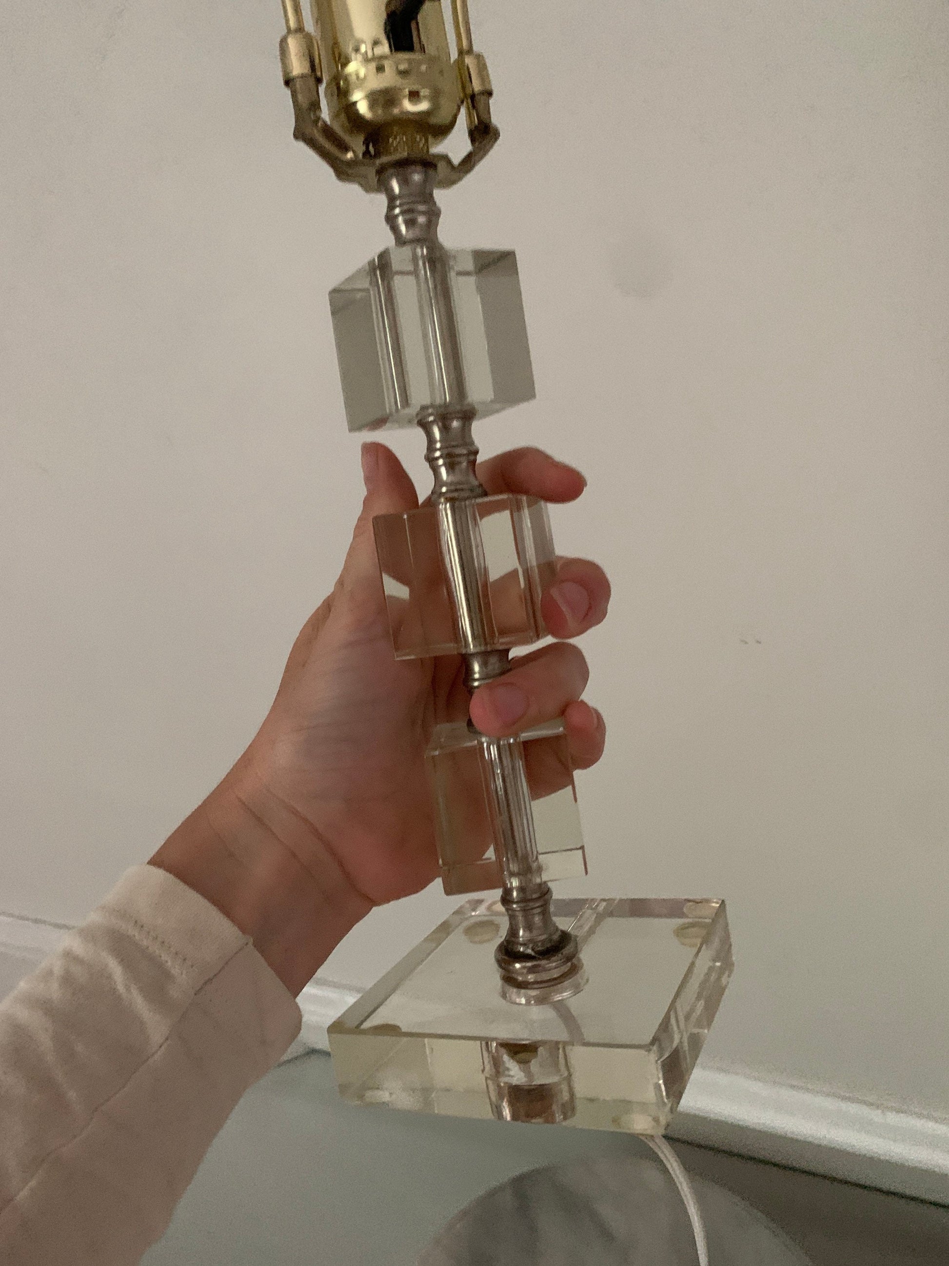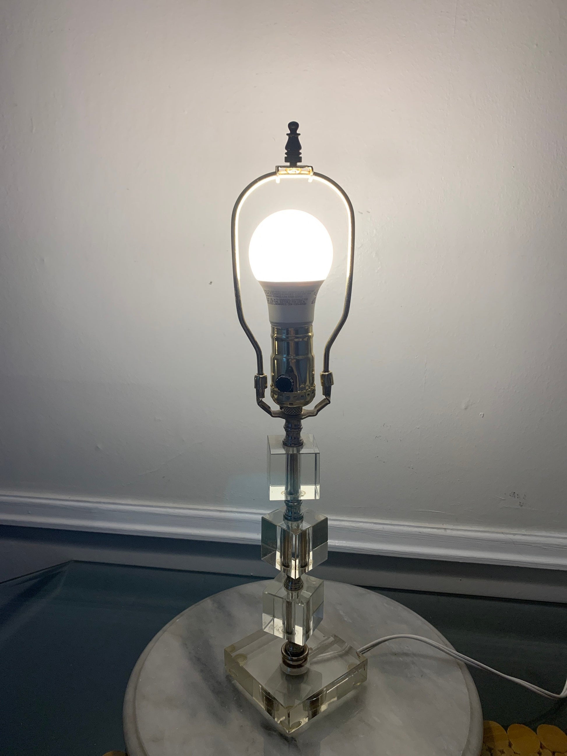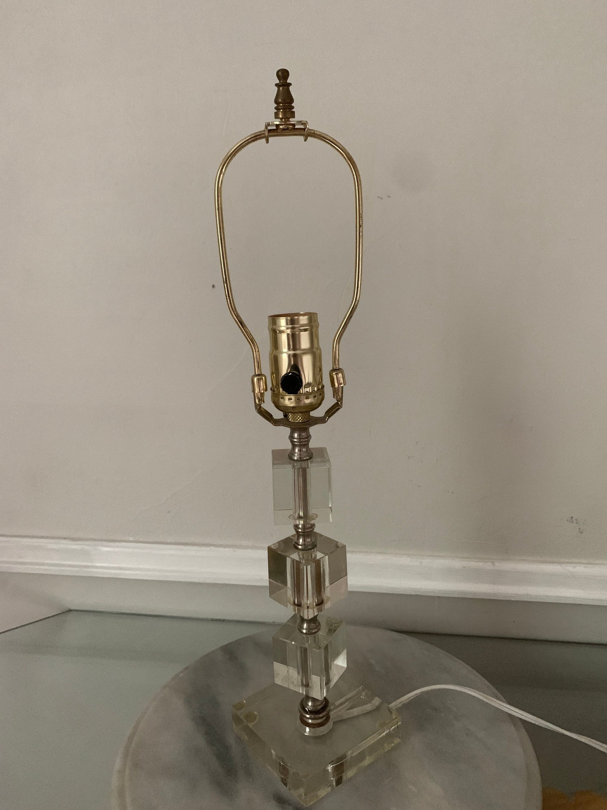 Vintage Small Clear Glass Cube Accent Table Lamp No Shade