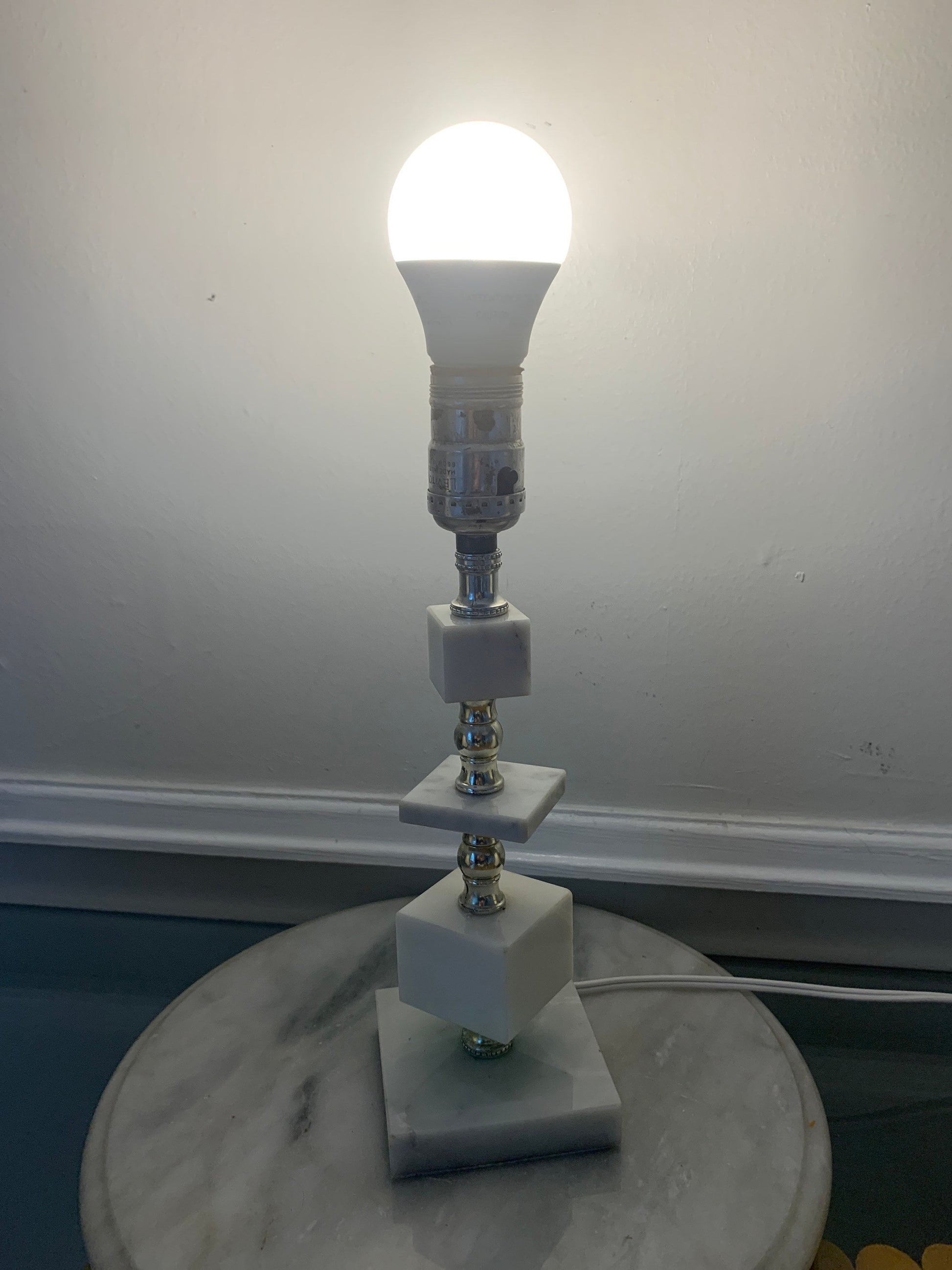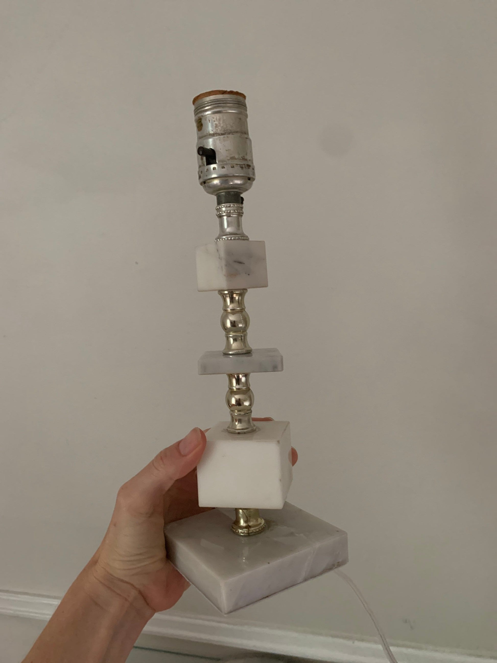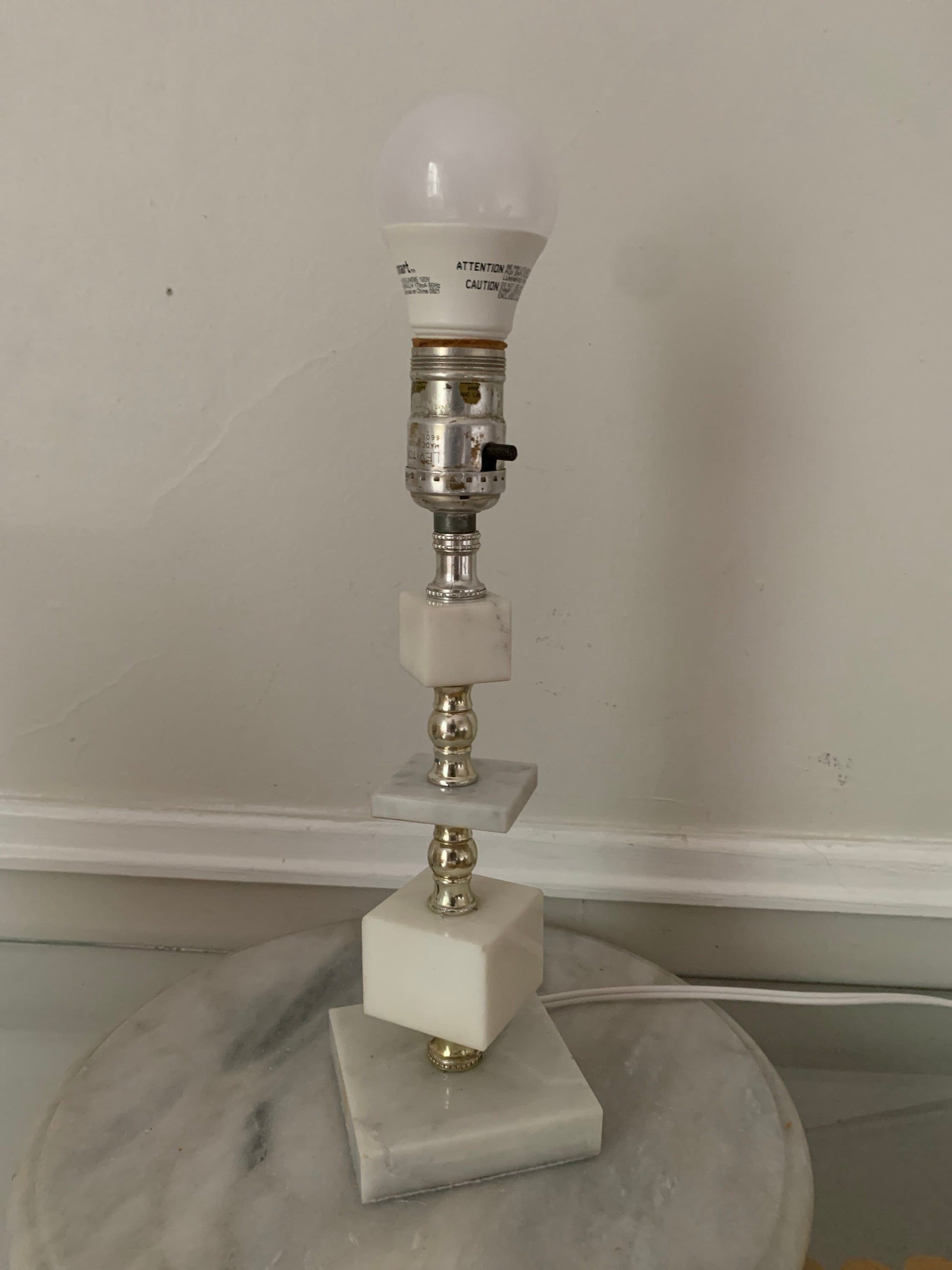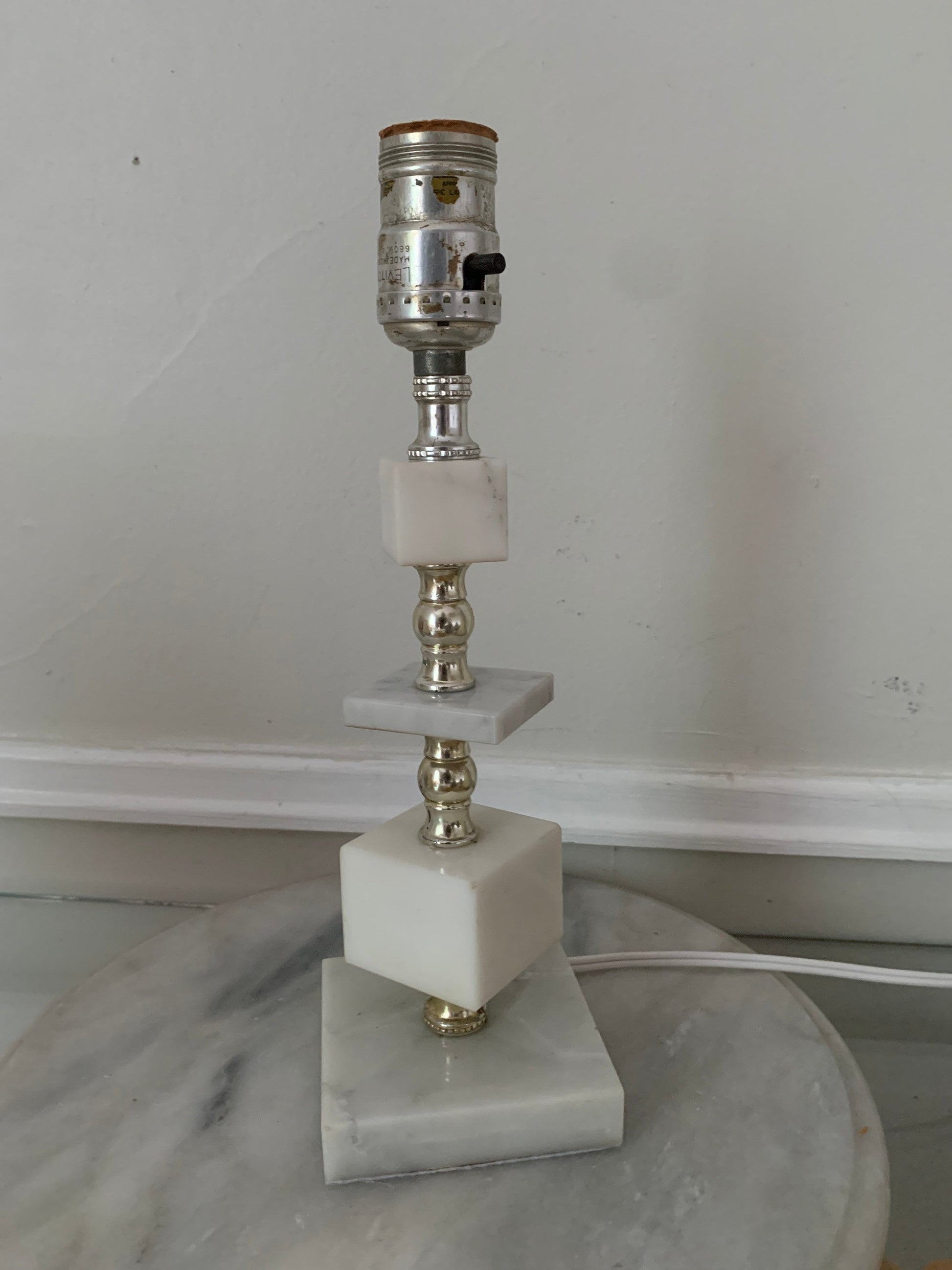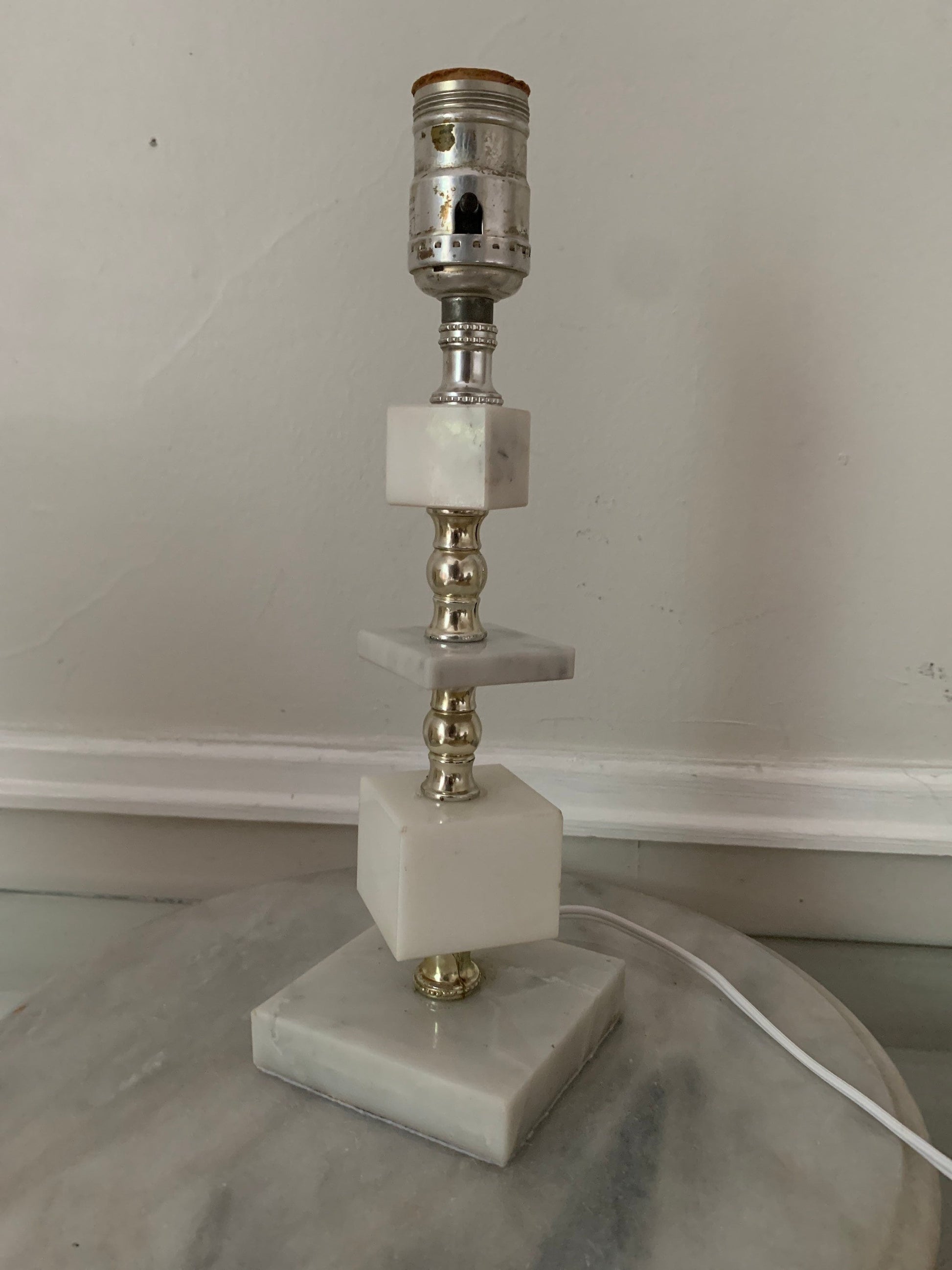 Vintage Small Marble Cube Accent Table Lamp No Shade