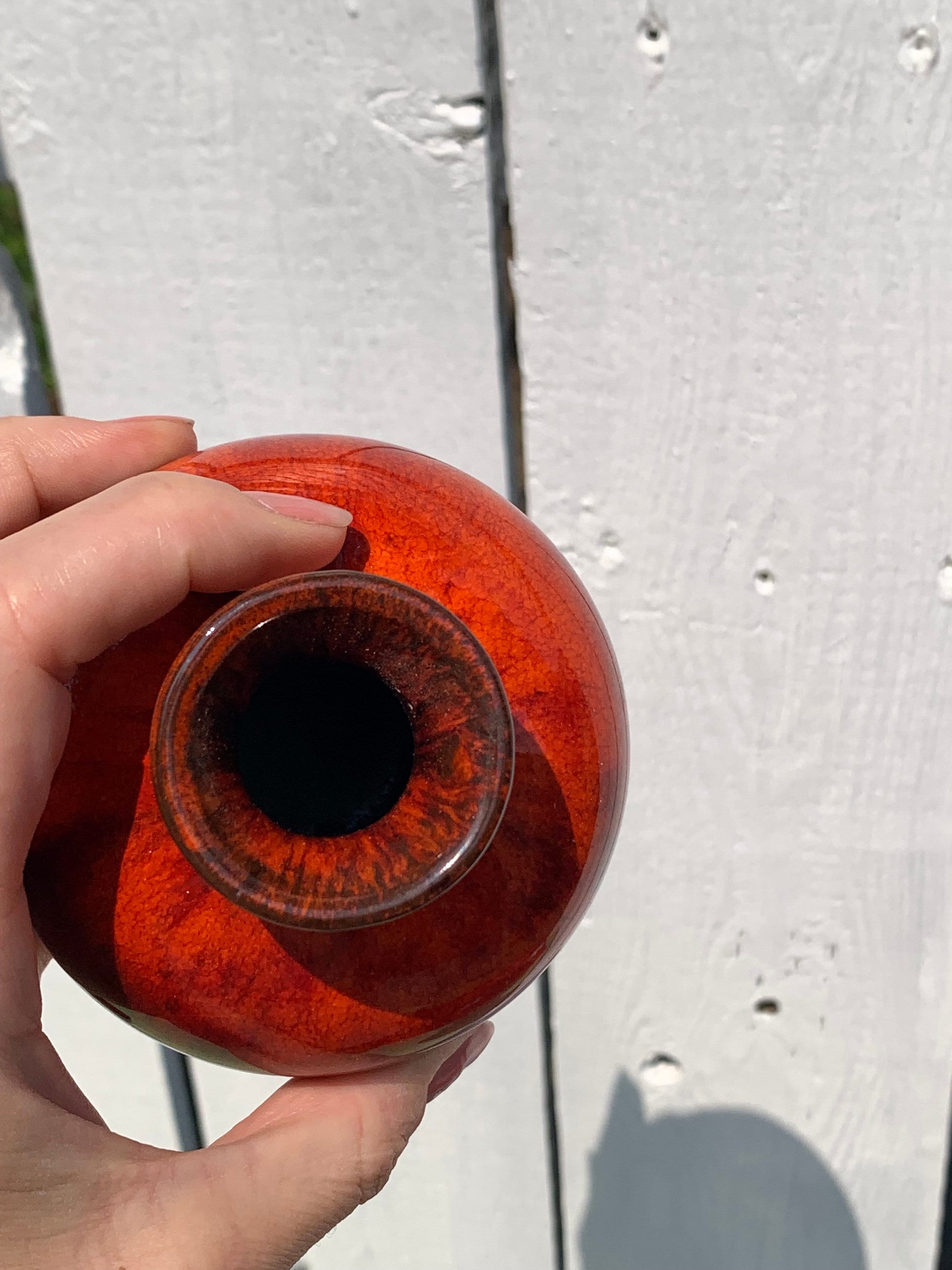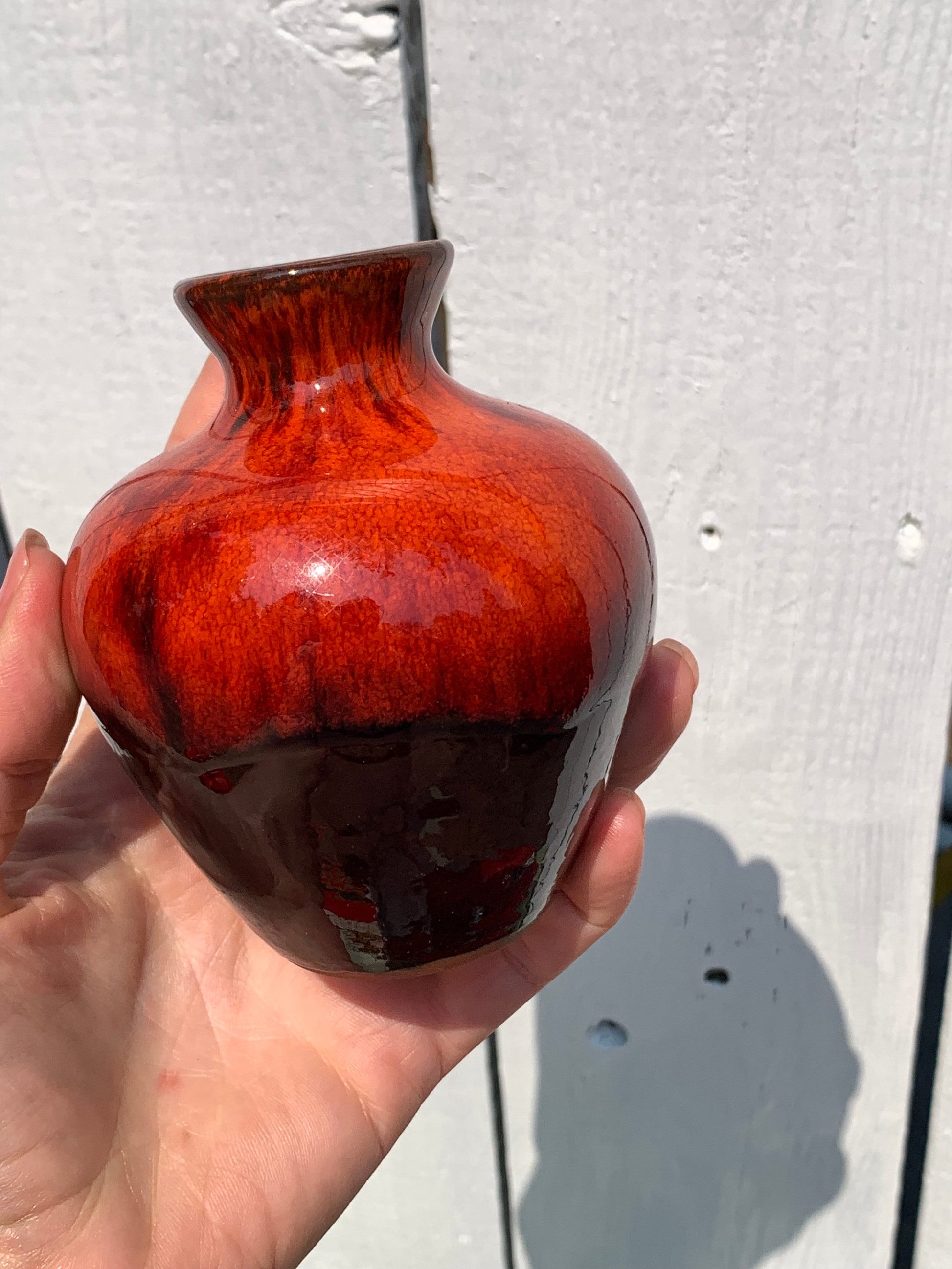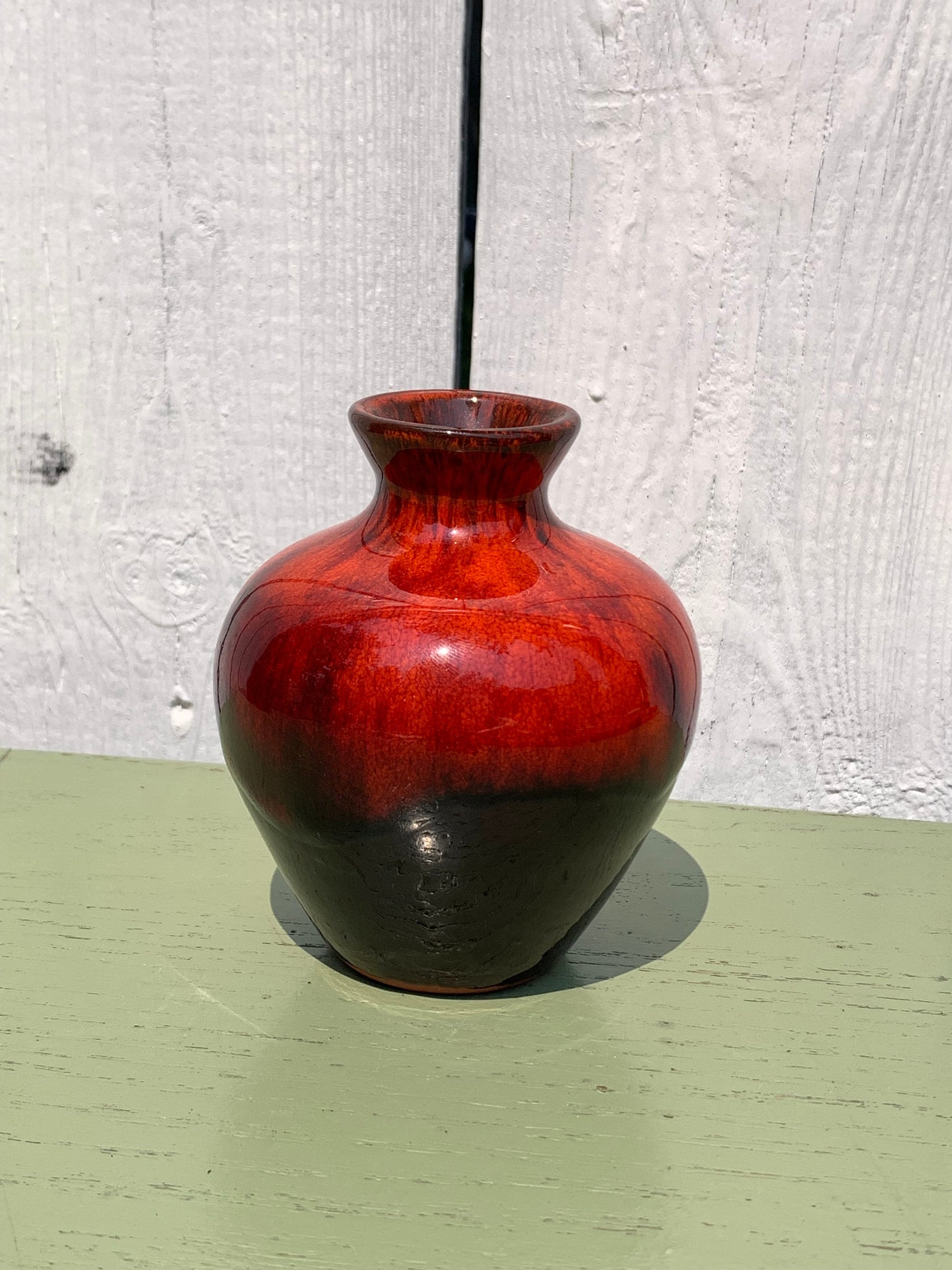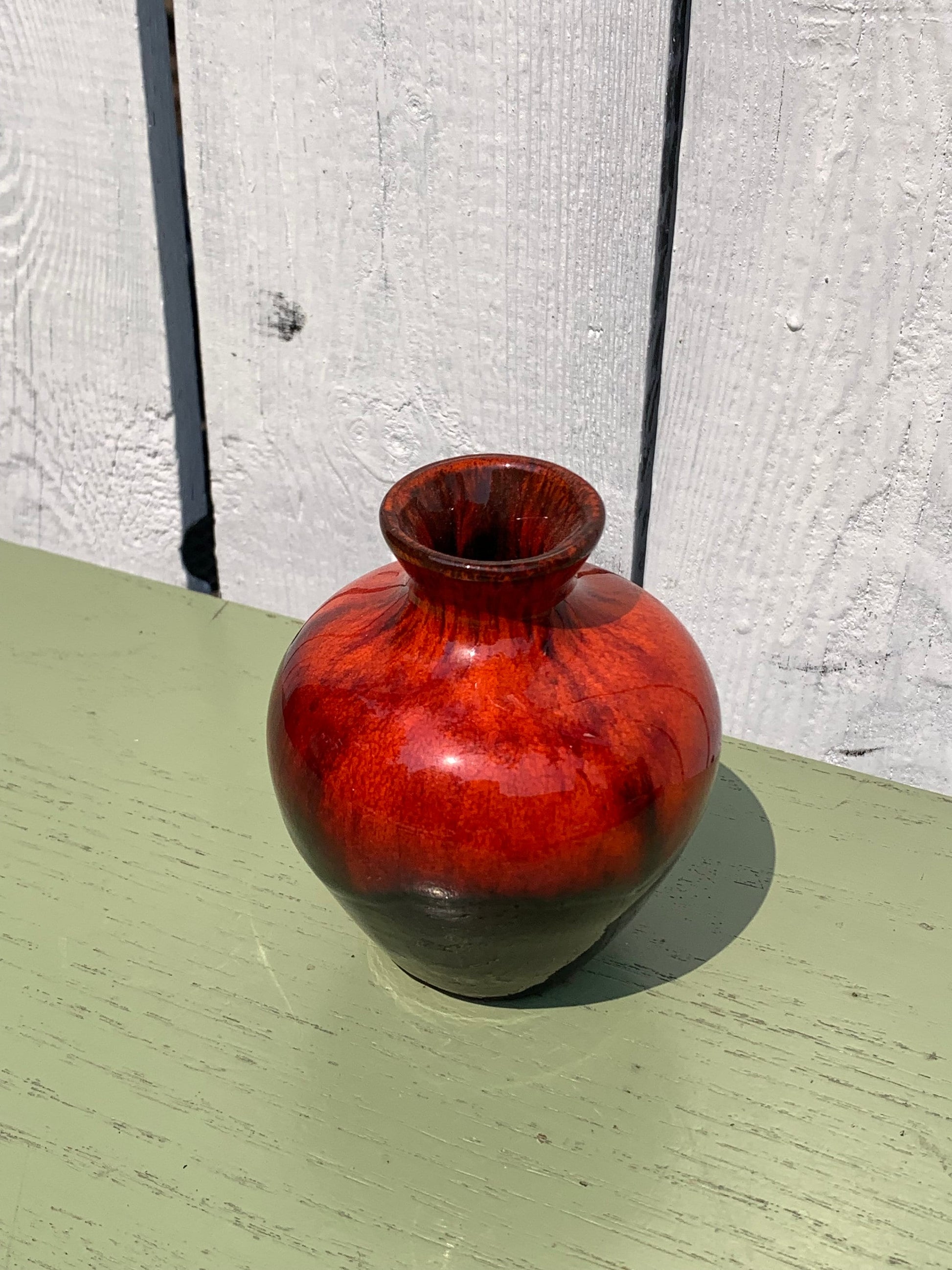 Vintage Small MCM Round Red Drip Glaze Pottery Vase