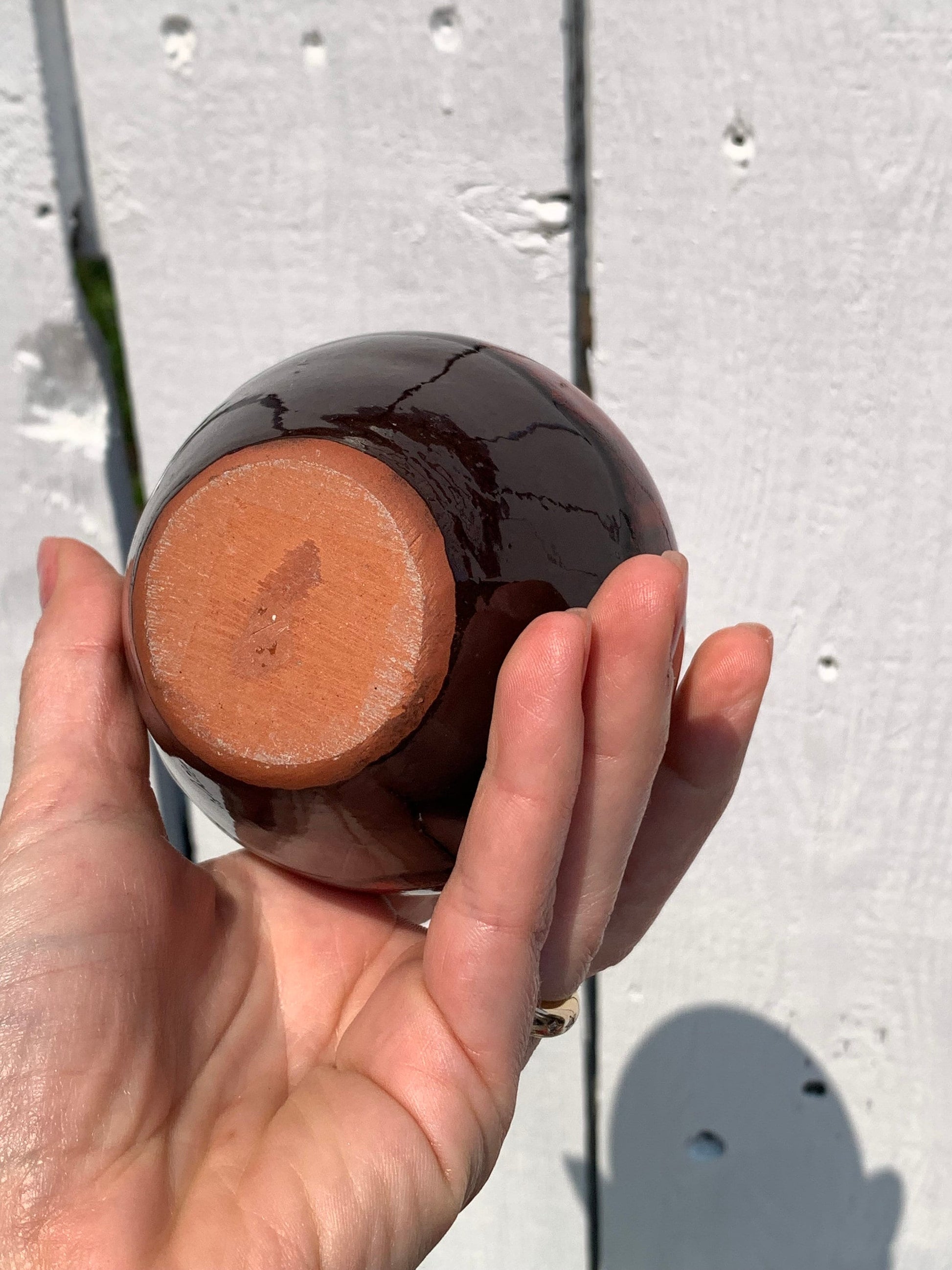 So round and cute, with that teeny top and distinct drip glaze.