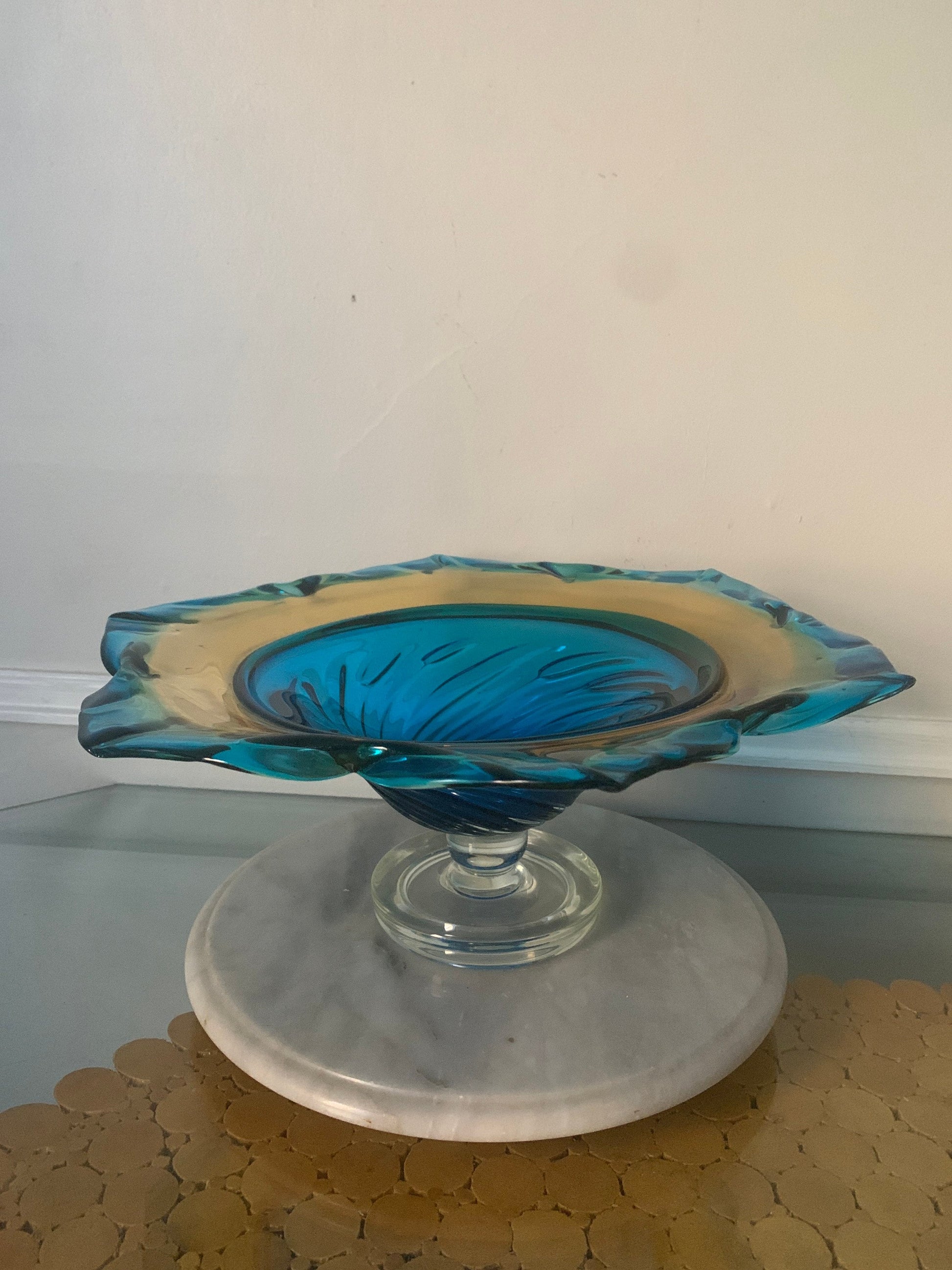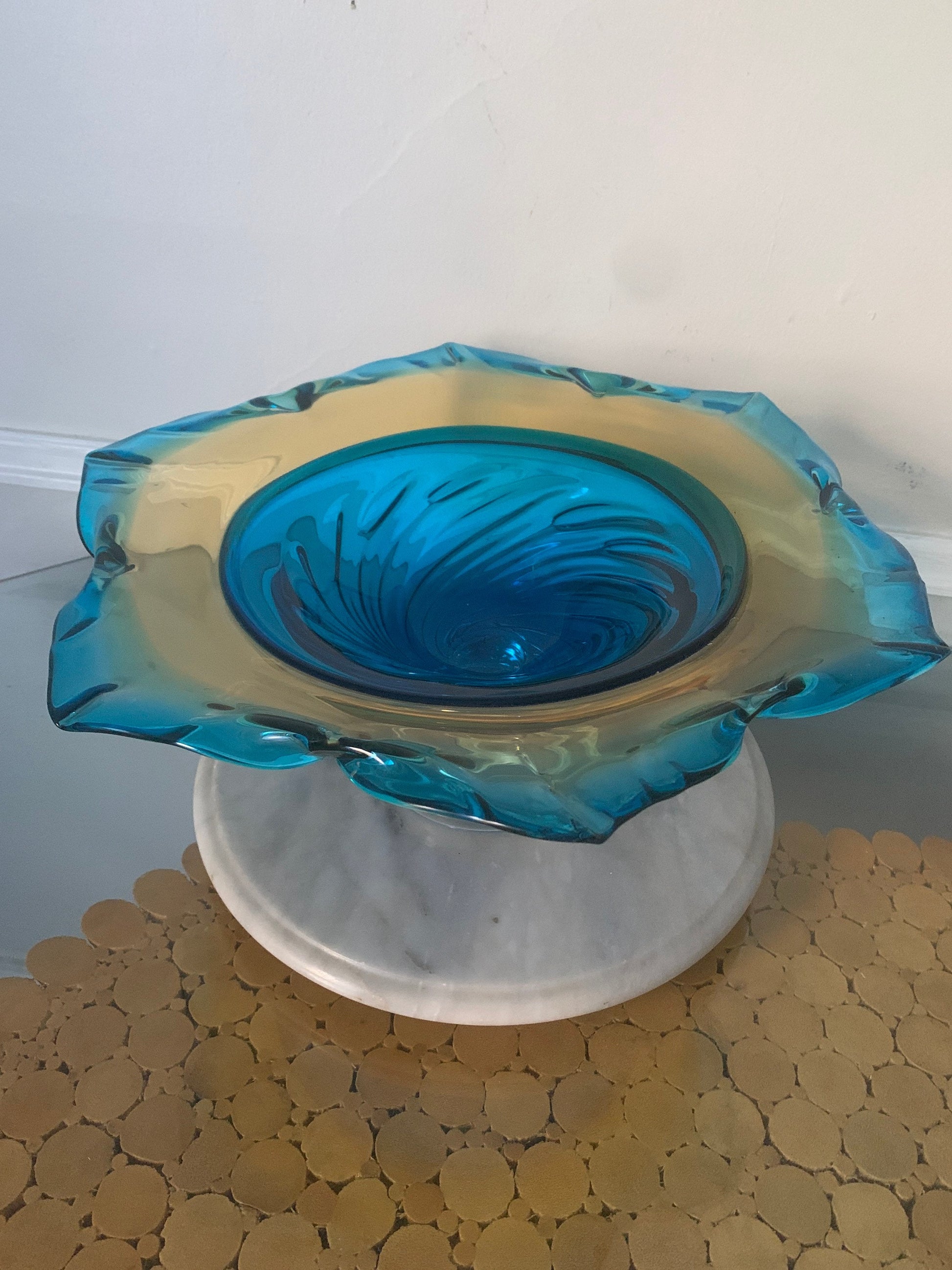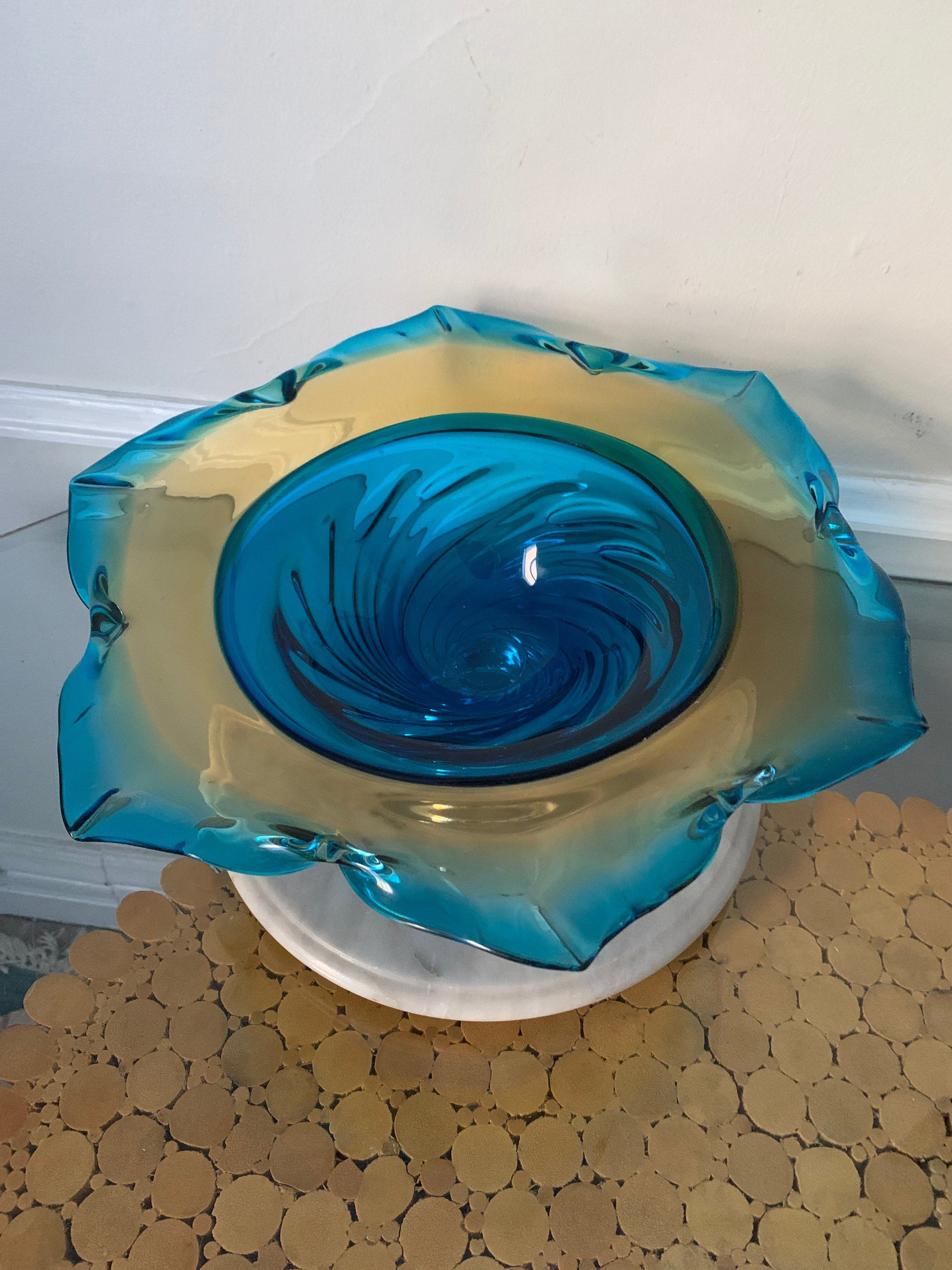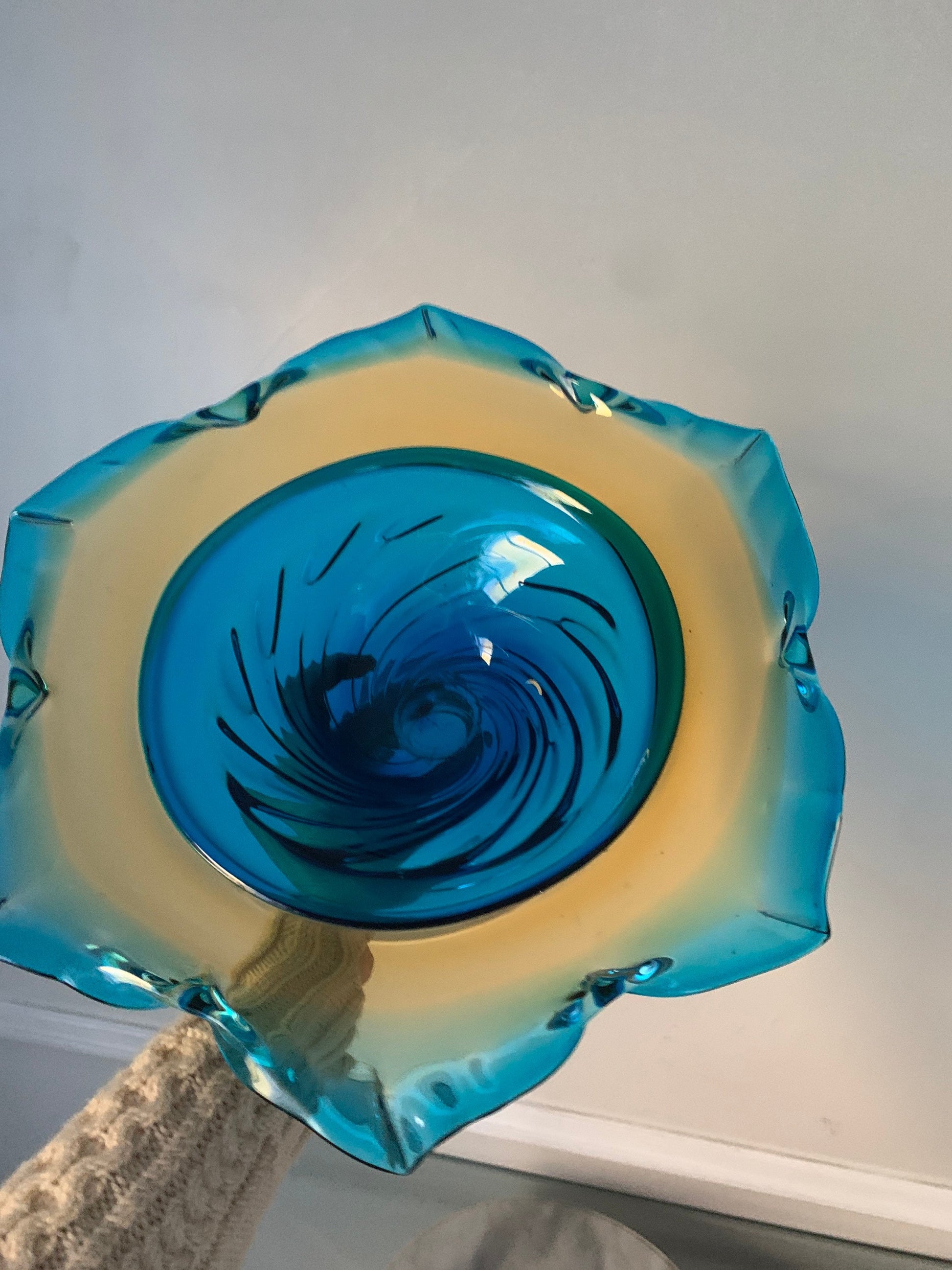 Measures 8" in height x 15-1/2" in diameter at the top (8" across the opening) and 5" at the base.